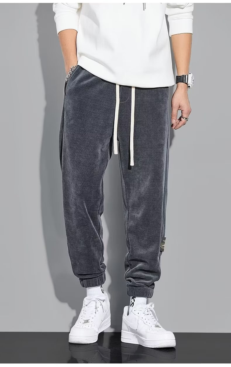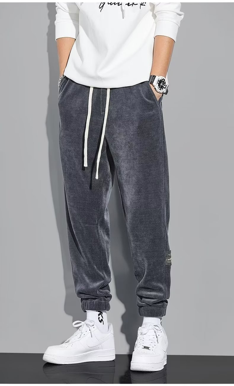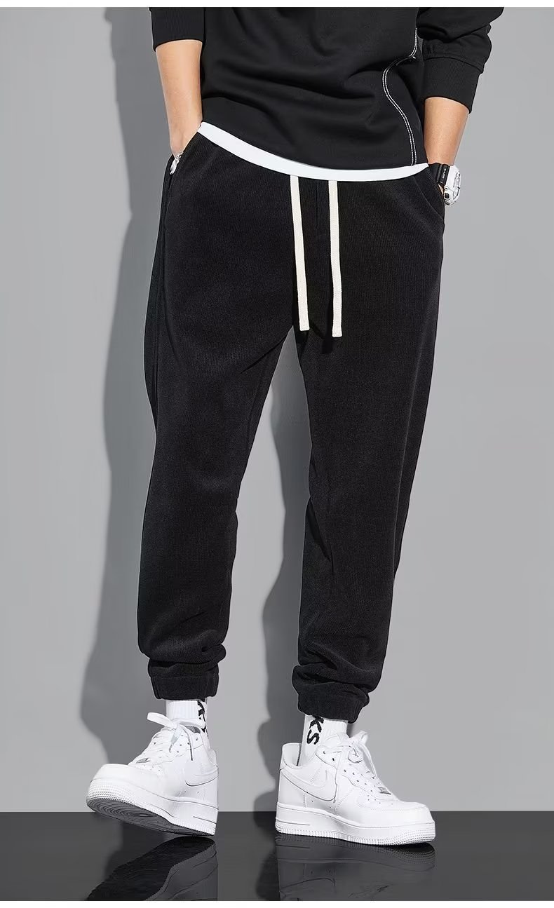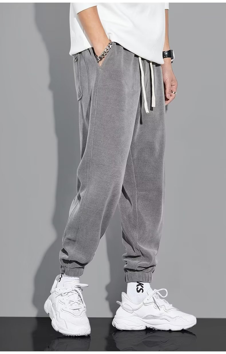 가을 겨울 자동차 수리 작업 남성용 바지 내마모성 및 먼지 방지 작업복 - 코듀로이 레그 타이 루즈 캐주얼 바지 코듀로이 스웨트팬츠