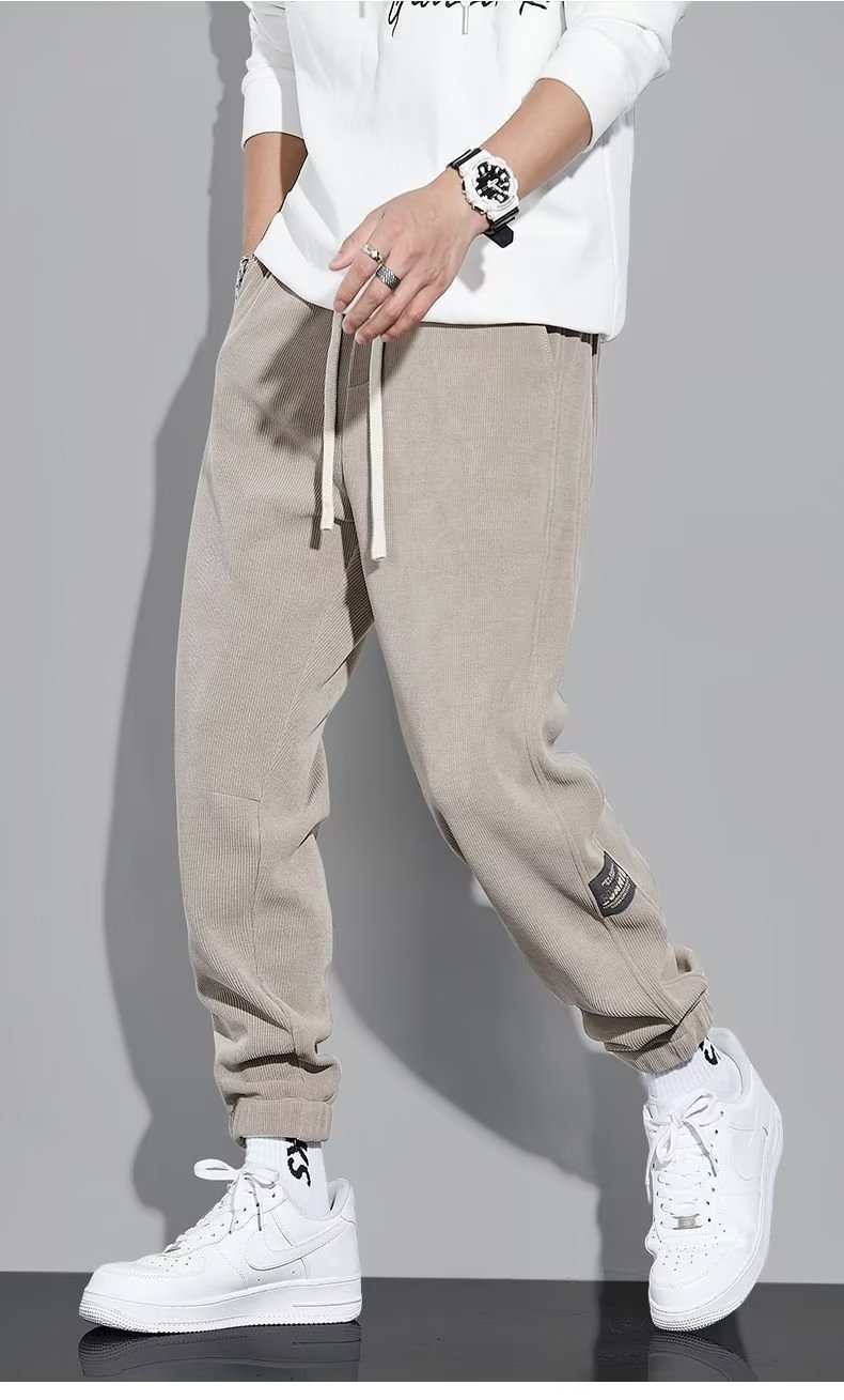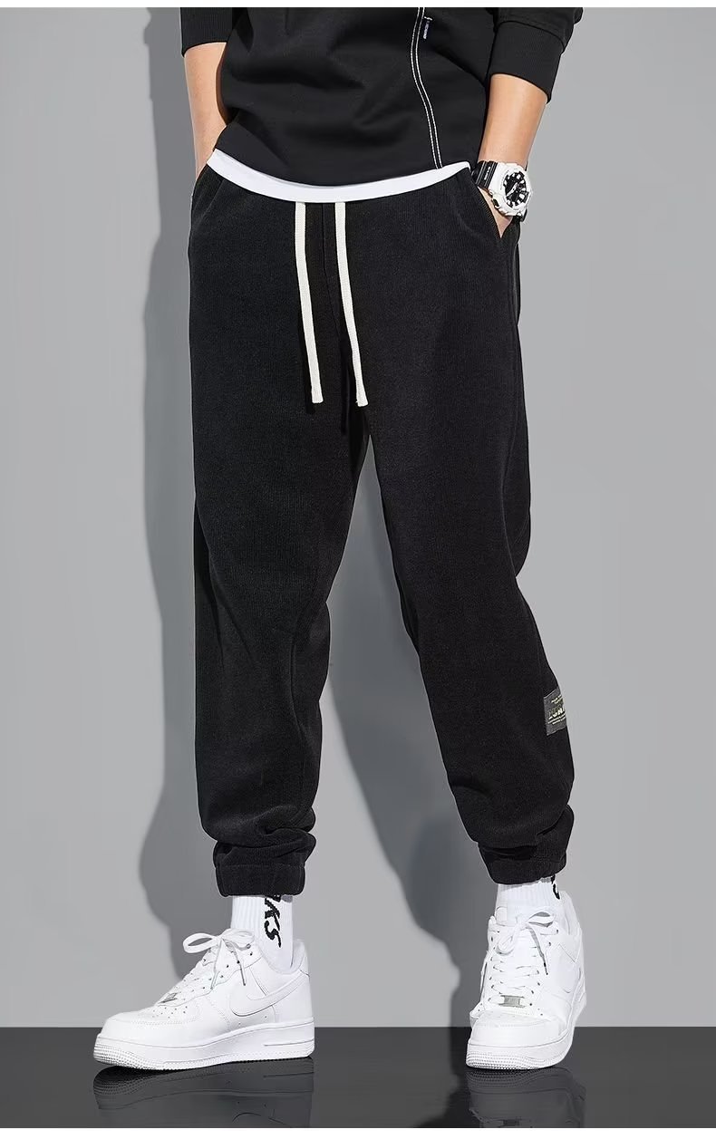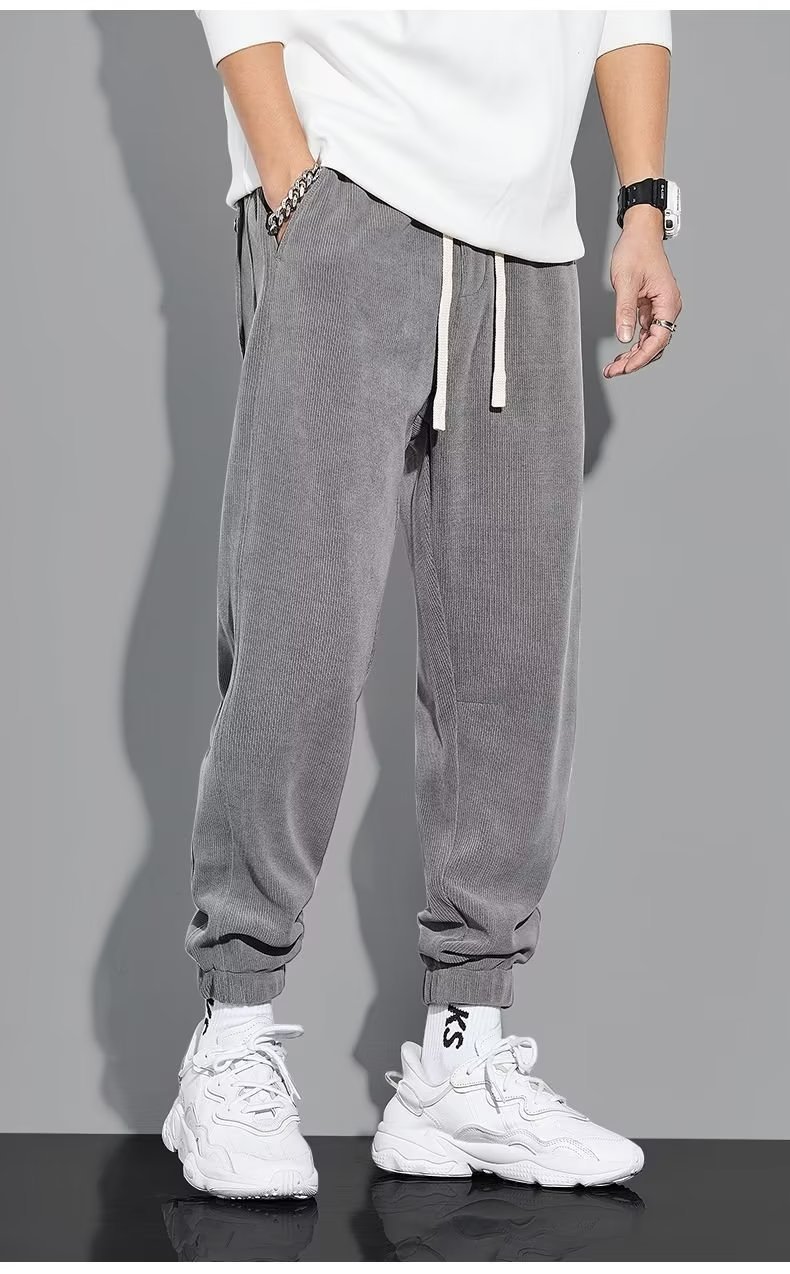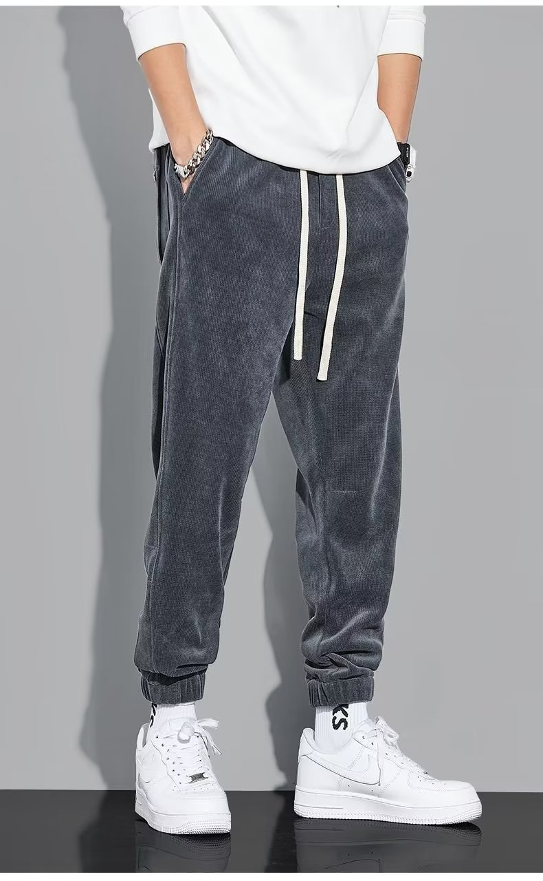 가을 겨울 자동차 수리 작업 남성용 바지 내마모성 및 먼지 방지 작업복 - 코듀로이 레그 타이 루즈 캐주얼 바지 코듀로이 스웨트팬츠