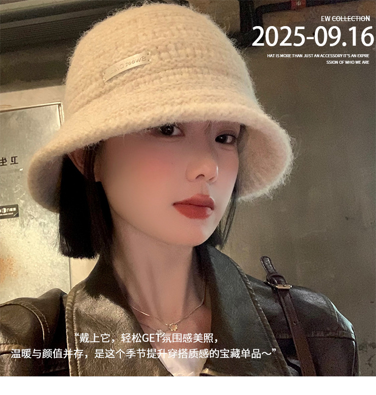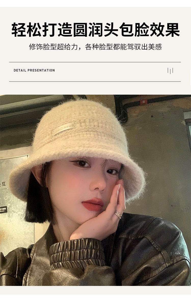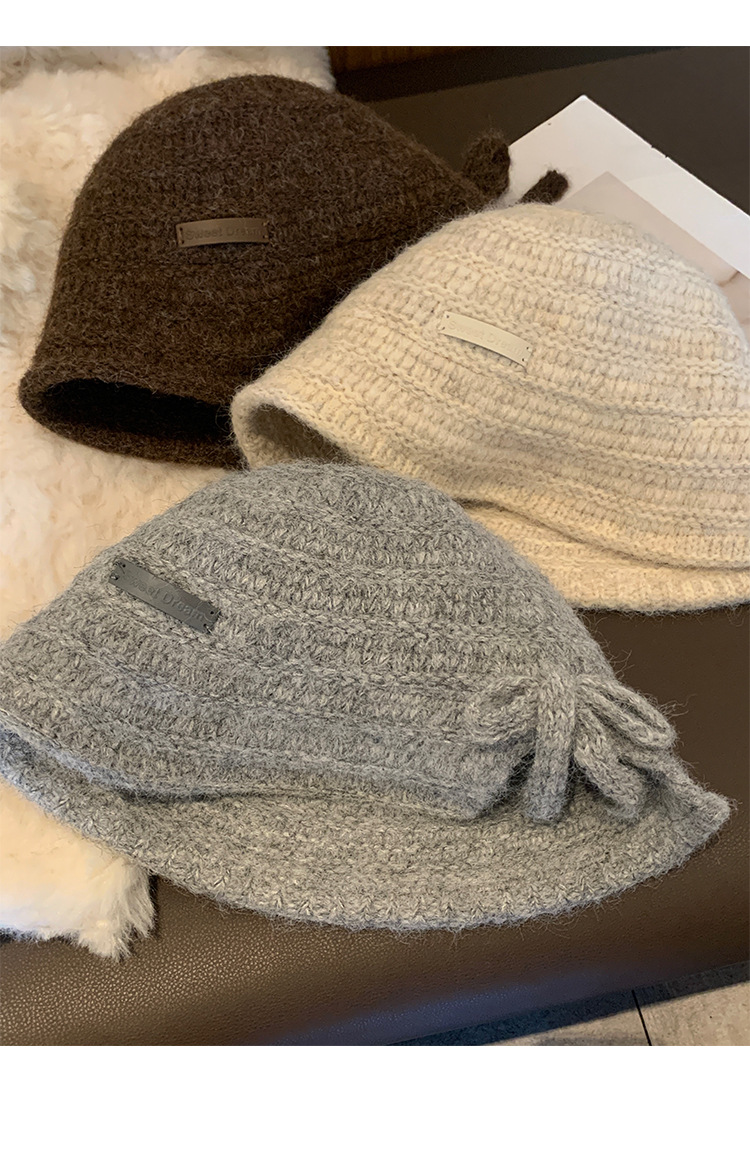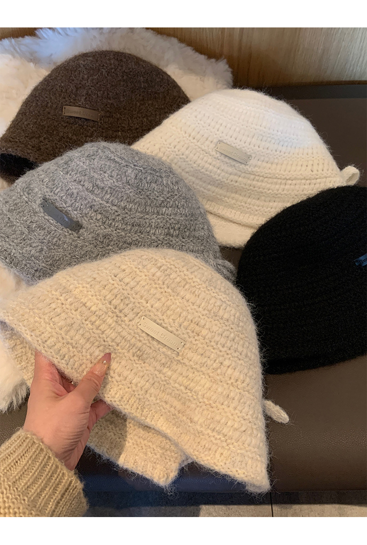 가을 겨울 여성용 복고풍 심플 니트 어부 모자, 작은 모직 모자, 큰 머리 둘레를 따뜻하게 유지하는 흰색 양동이 모자