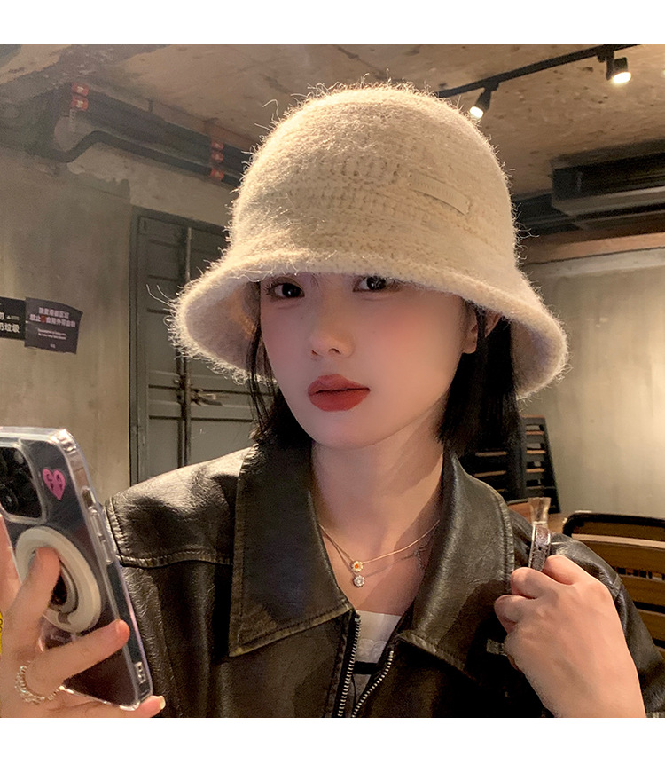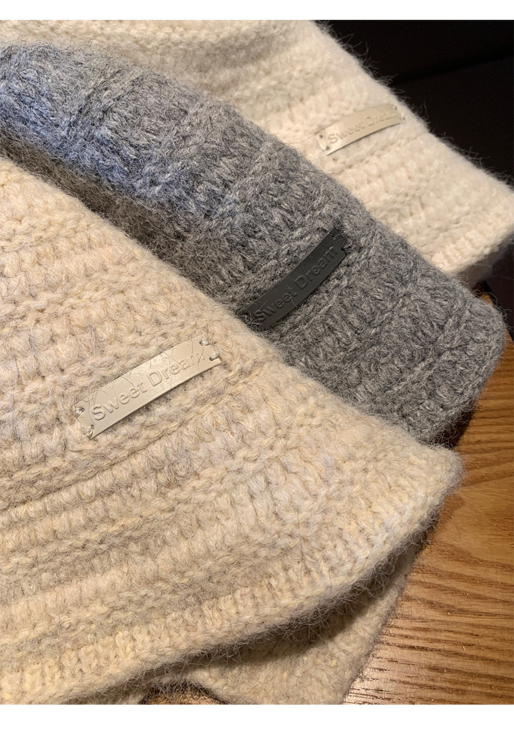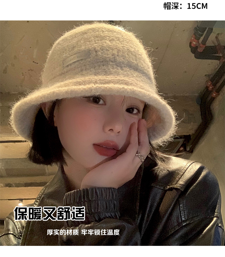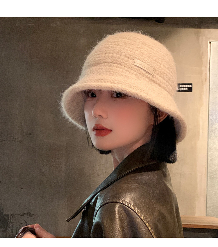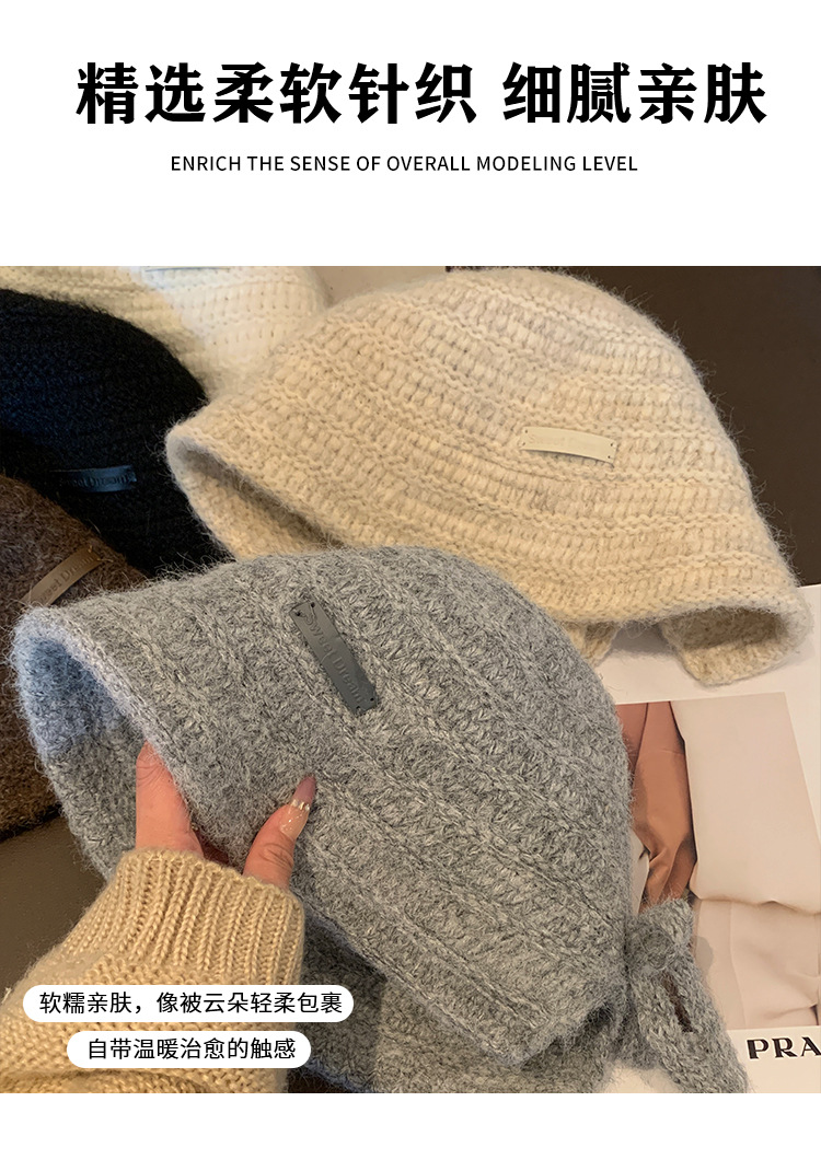 가을 겨울 여성용 복고풍 심플 니트 어부 모자, 작은 모직 모자, 큰 머리 둘레를 따뜻하게 유지하는 흰색 양동이 모자
