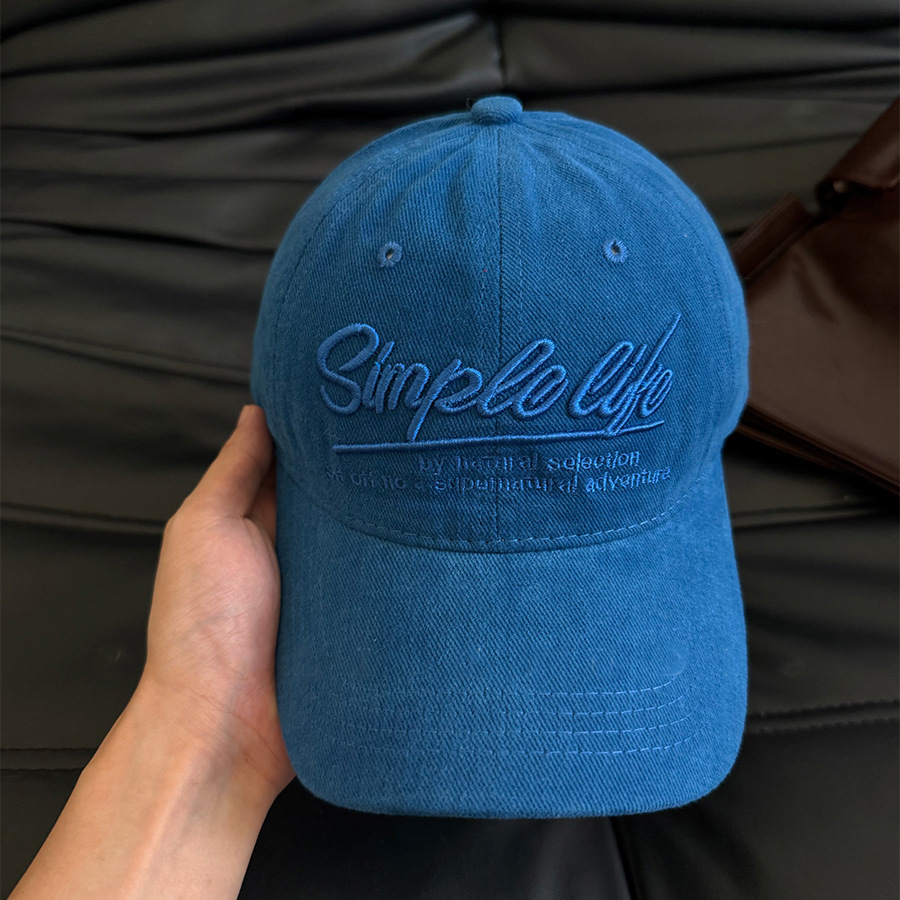 여성용 레트로 레터 자수 블루 야구 모자, 챙이 넓고 머리 둘레가 큰 모자, 한국식 차양 모자, 얼굴이 보이는 작은 피크 캡