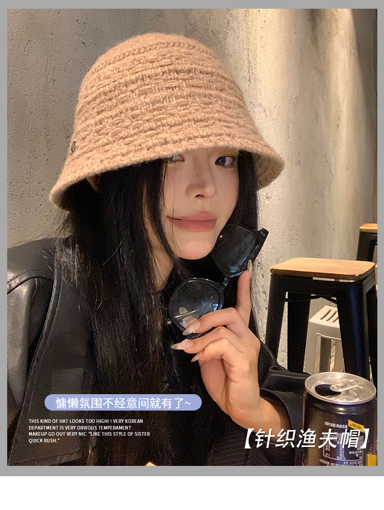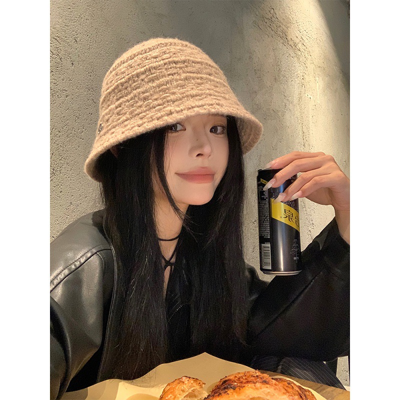 가을 겨울 여성용 니트 버킷 모자 한국식 다용도 버킷 모자 일본 복고풍 큰 머리 둘레 얼굴이 보이는 작은 모직 모자