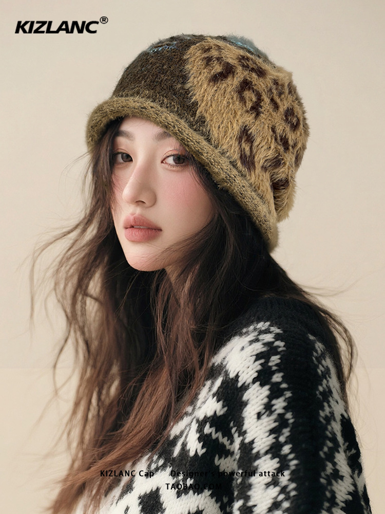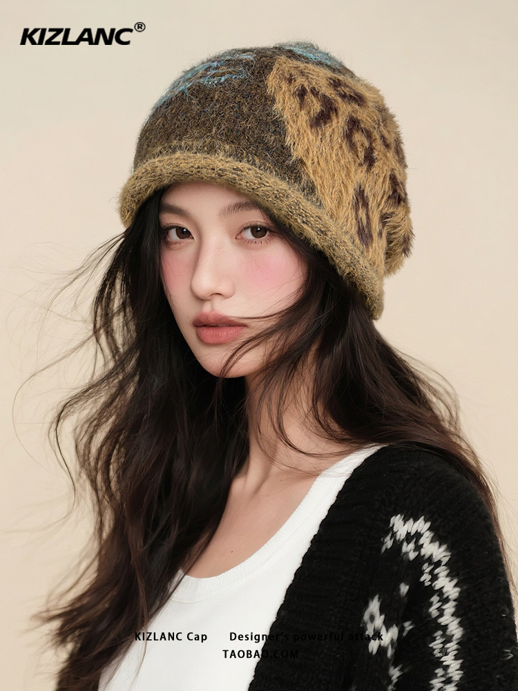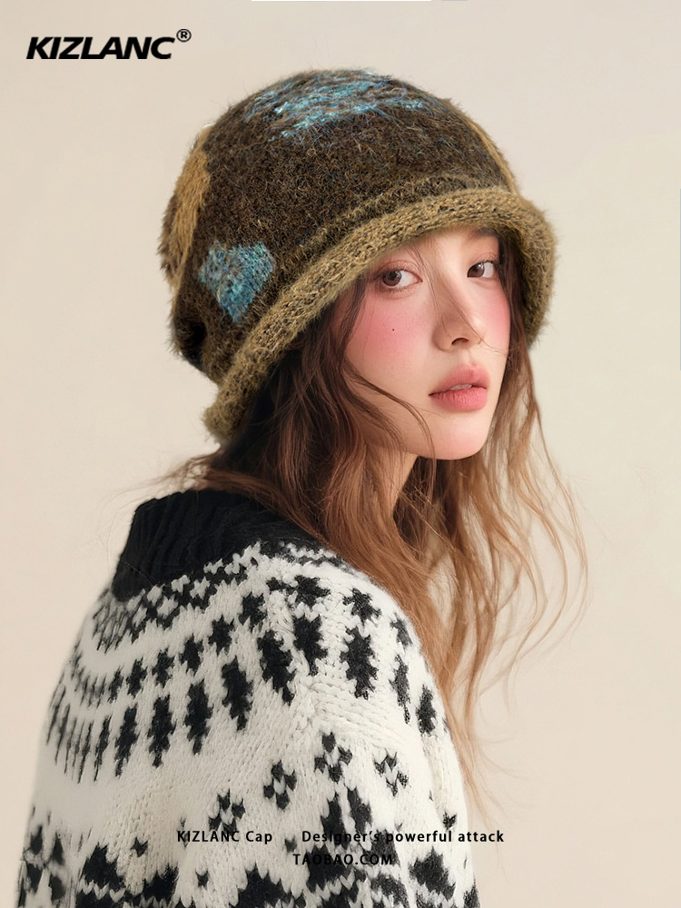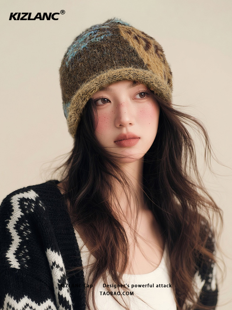가을 겨울 여성용 틈새 디자인 오리지널 멀티 컬러 울 니트 모자, 얼굴이 보이는 작은 따뜻한 모직 모자