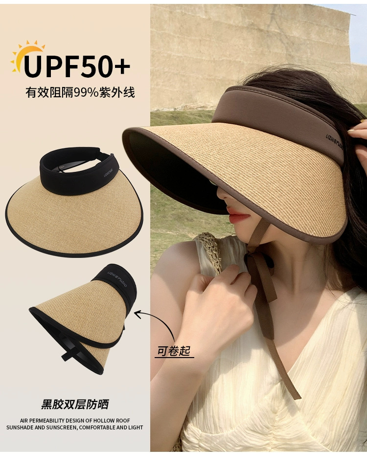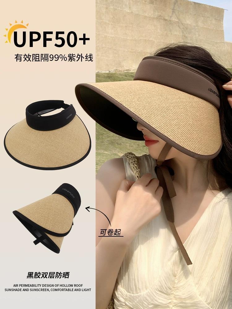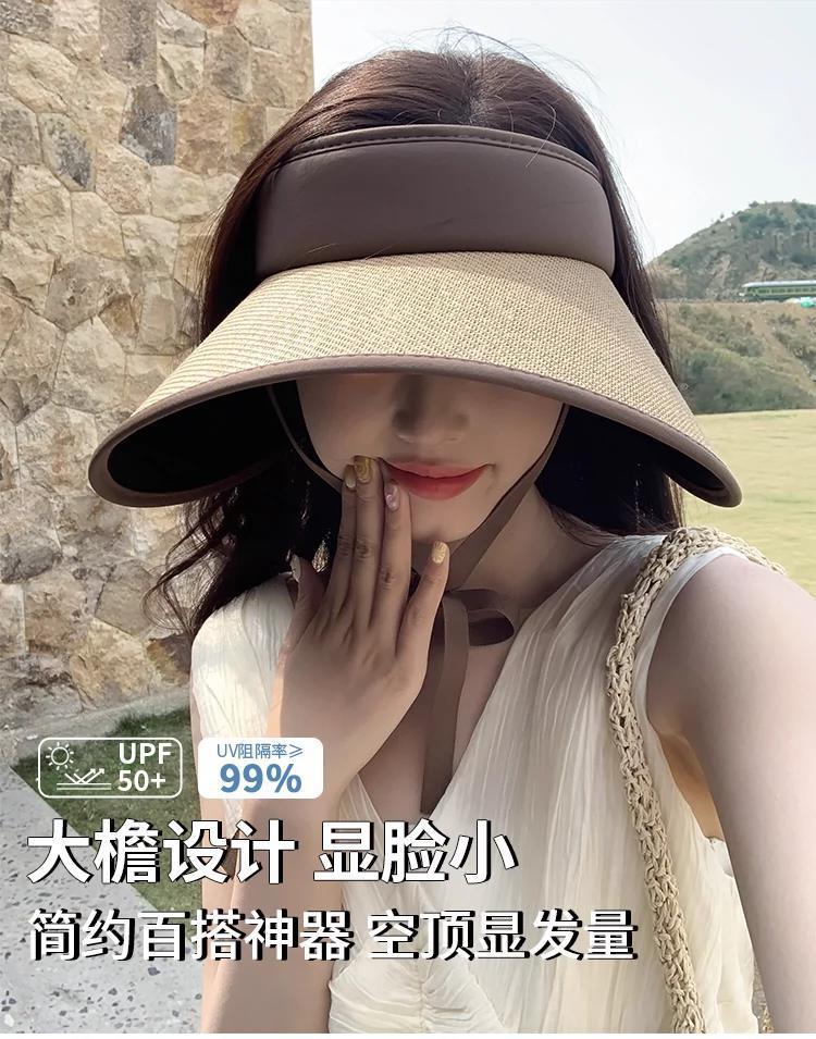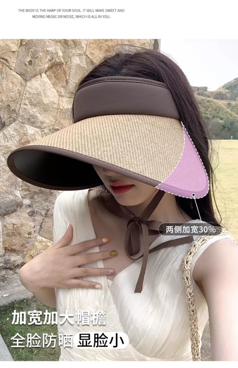 태양 모자 UPF50 + 큰 챙 여름 사이클링 안티 UV 빈 탑 태양 모자 여성용 uv 태양 모자 얼굴을 덮습니다.