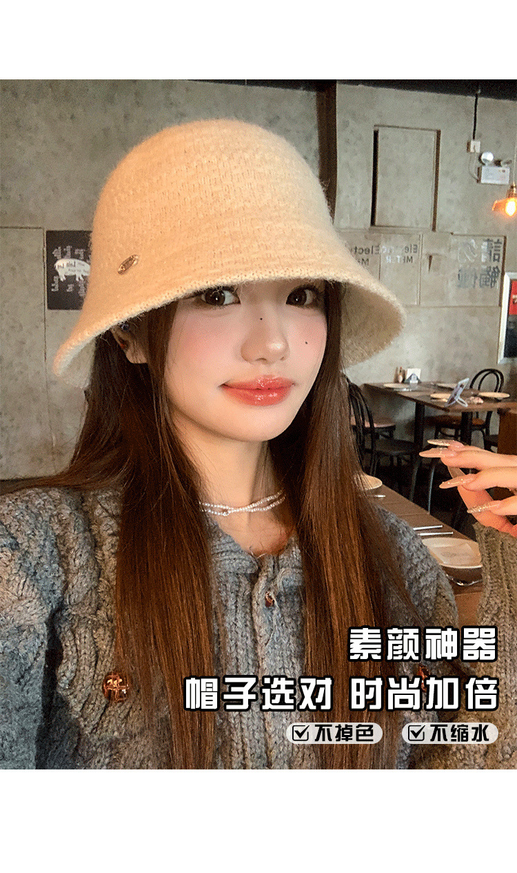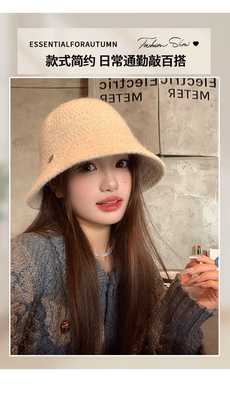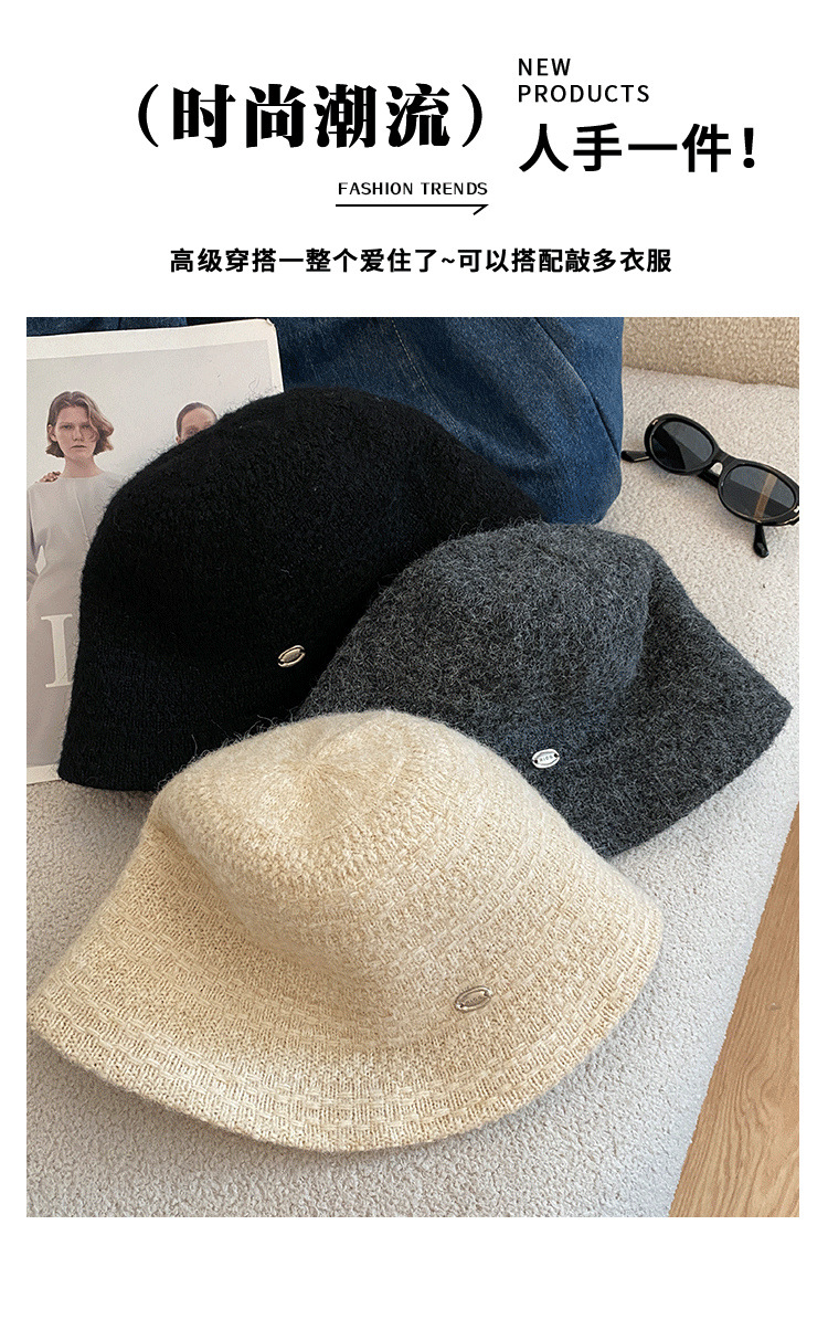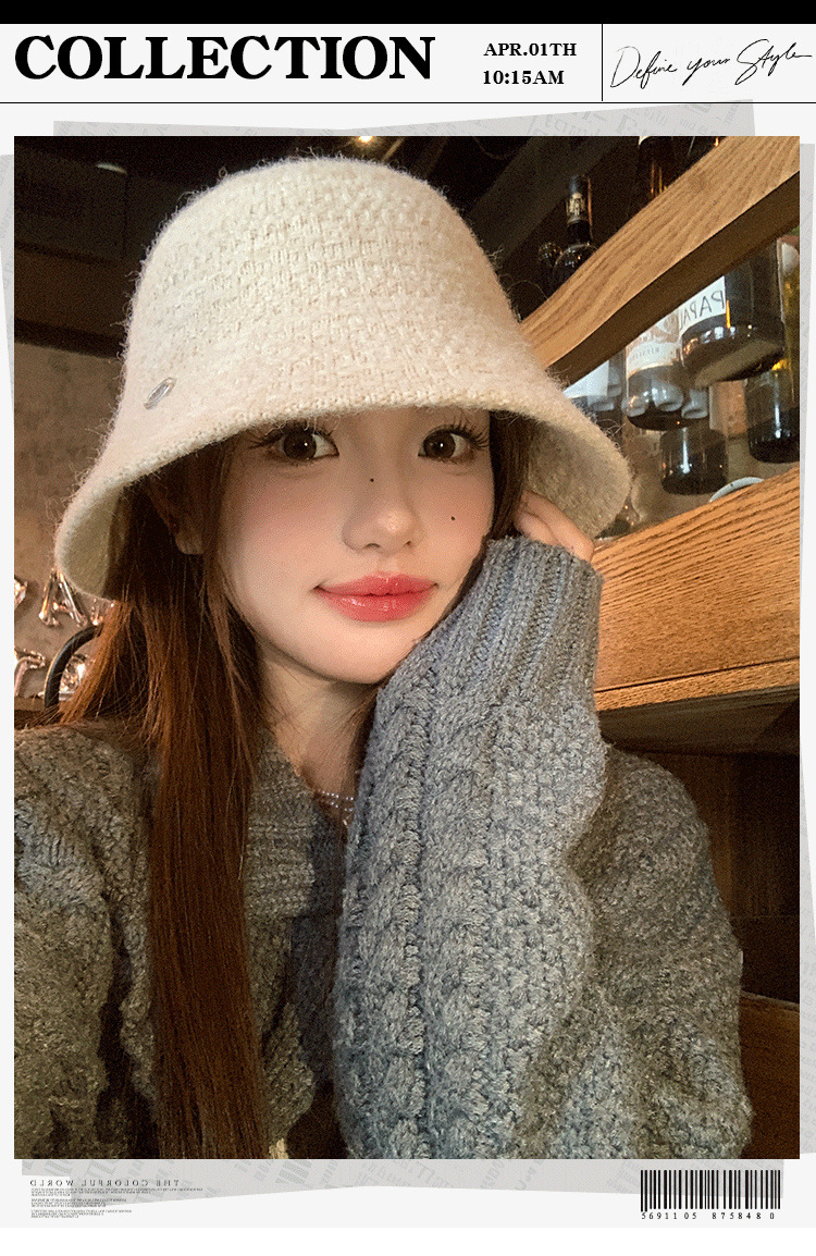 여성을 위한 프렌치 스타일의 우아한 니트 어부 모자, 레트로 다용도 분지 모자, 큰 머리 둘레, 얼굴이 보이는 작은 양동이 모자, 트렌디함