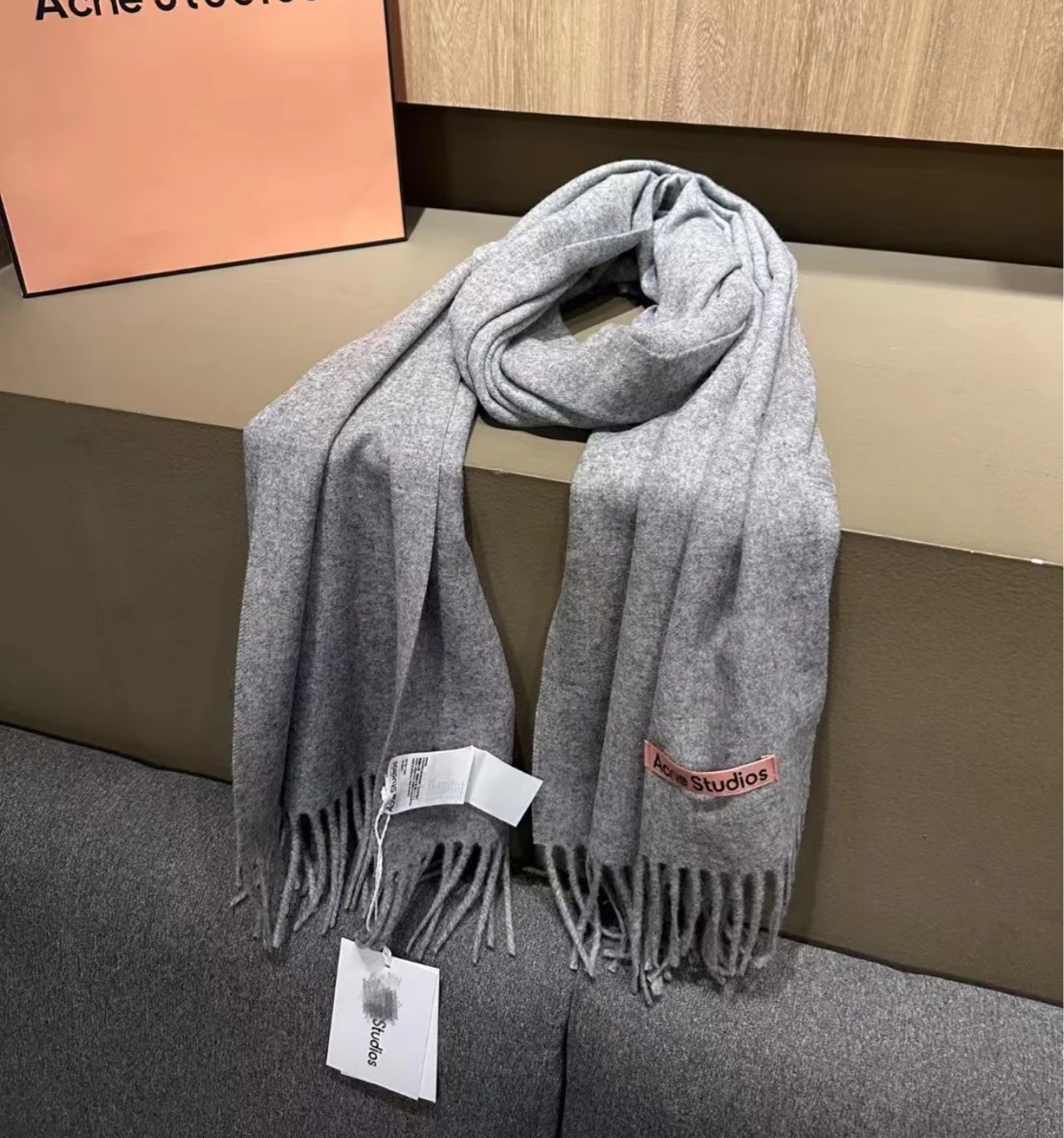 AC 핫 스타일 유럽과 미국의 새로운 클래식 좁은 버전 핑크 라벨 45*200cm 솔리드 컬러 태슬 울 캐시미어 스카프 및 스카프 배송