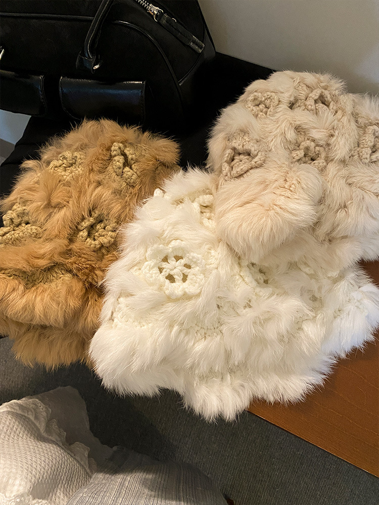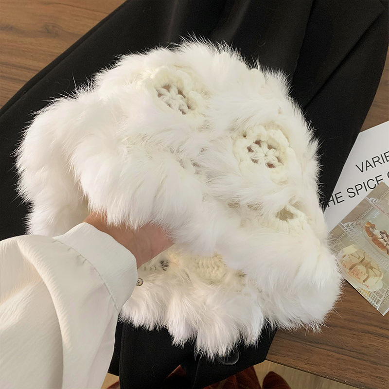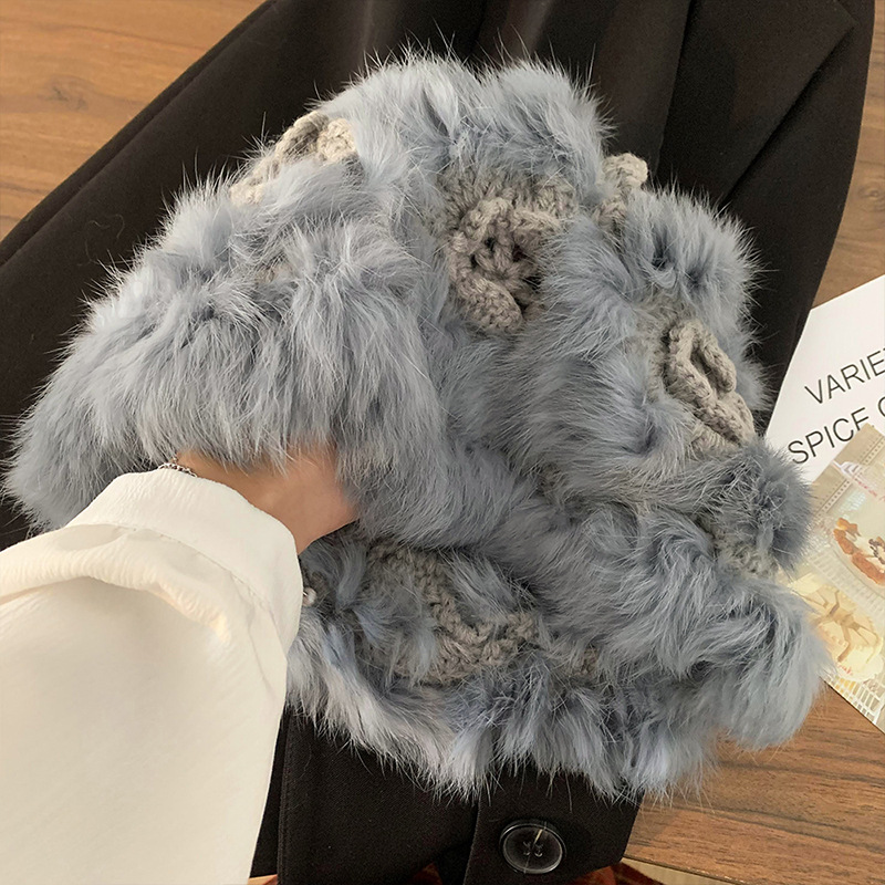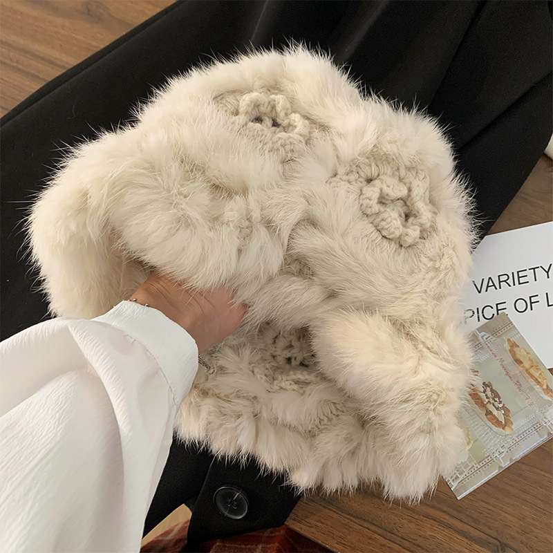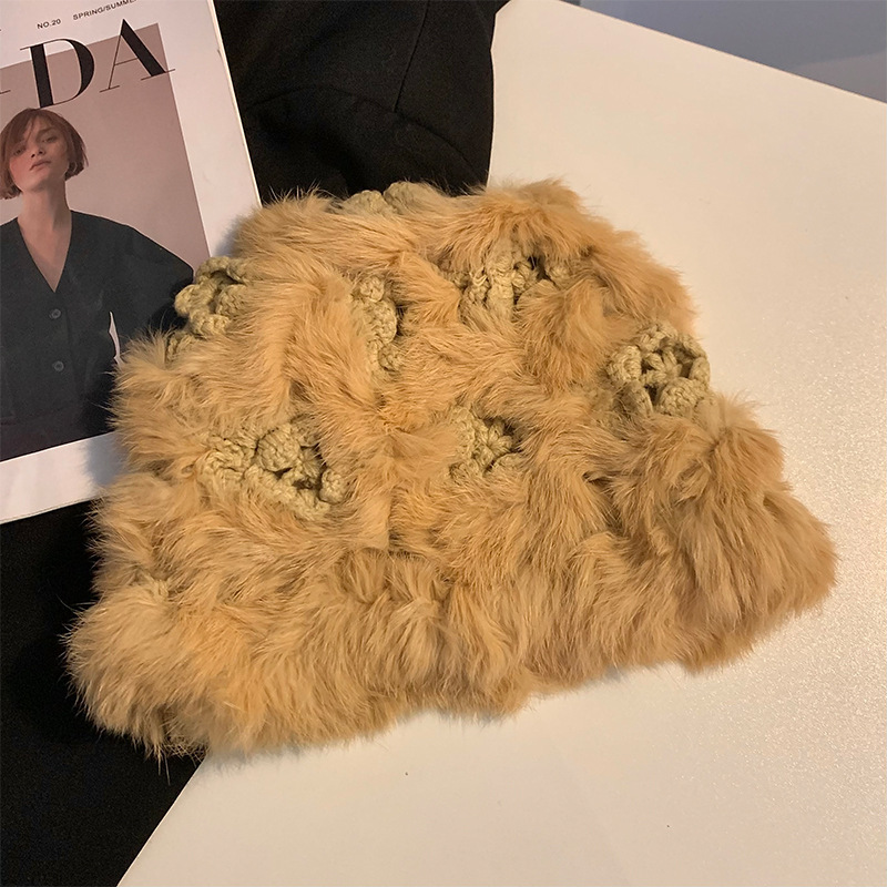 여성을위한 귀여운 핑크 토끼 모피 플러시 모자 2025 가을, 겨울 두꺼운 따뜻한 니트 모자 얼굴을 보여주는 작은 모피 모자