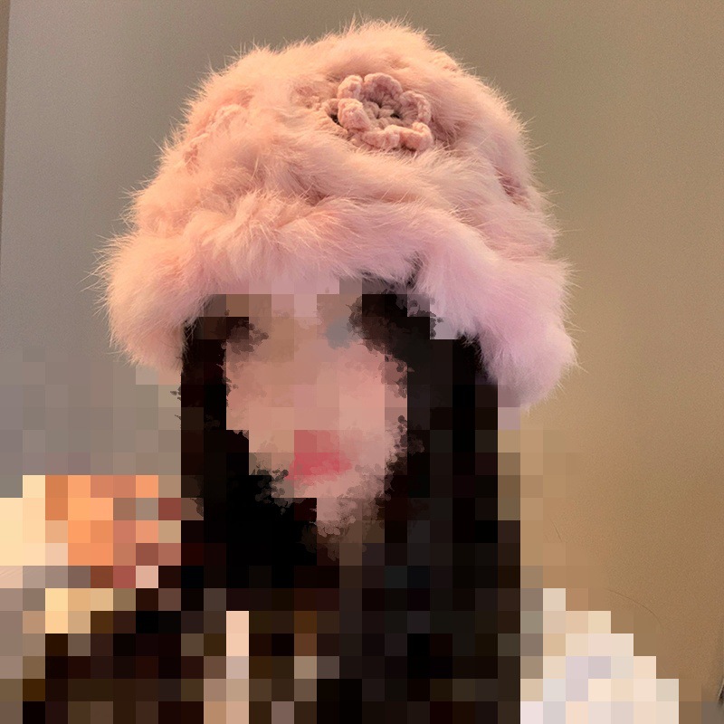 | 处理工艺 | 机绣 | 名称 | 可爱粉色兔毛毛绒帽子女2025年秋冬季加厚保暖针织帽 |