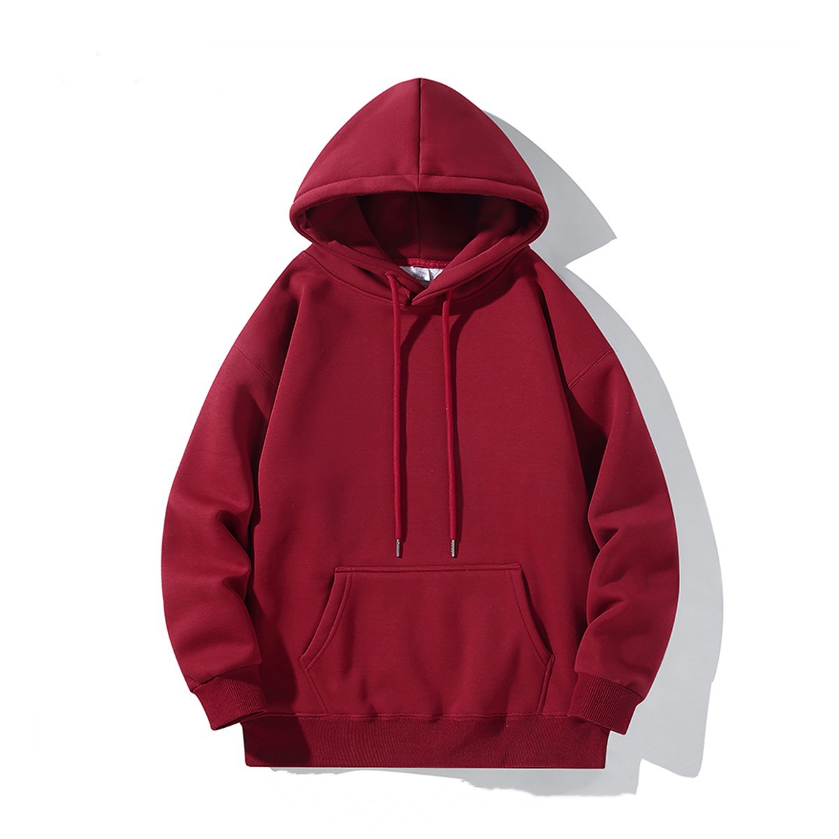 가을 겨울 남성용 미국식 심플한 복고풍 버건디 스웨트 셔츠 플러스 벨벳 두꺼운 느슨한 단색 기본 재킷 크로스보더