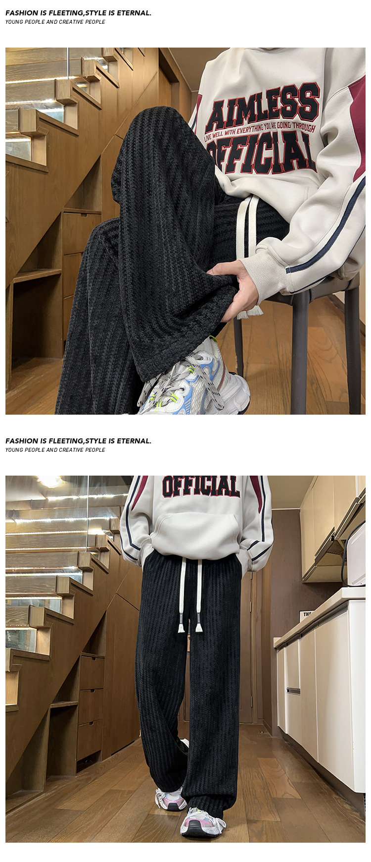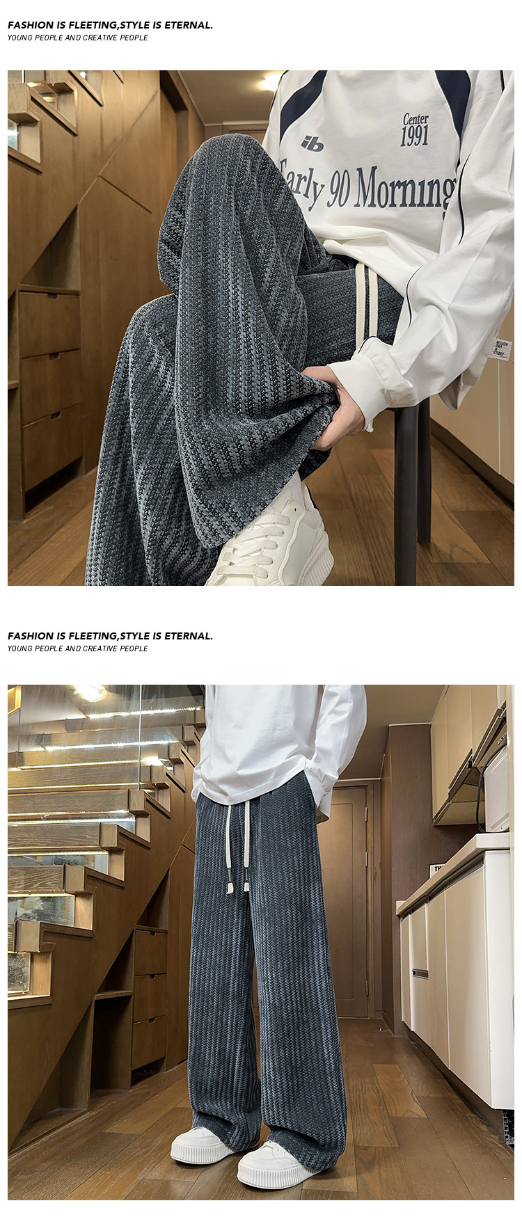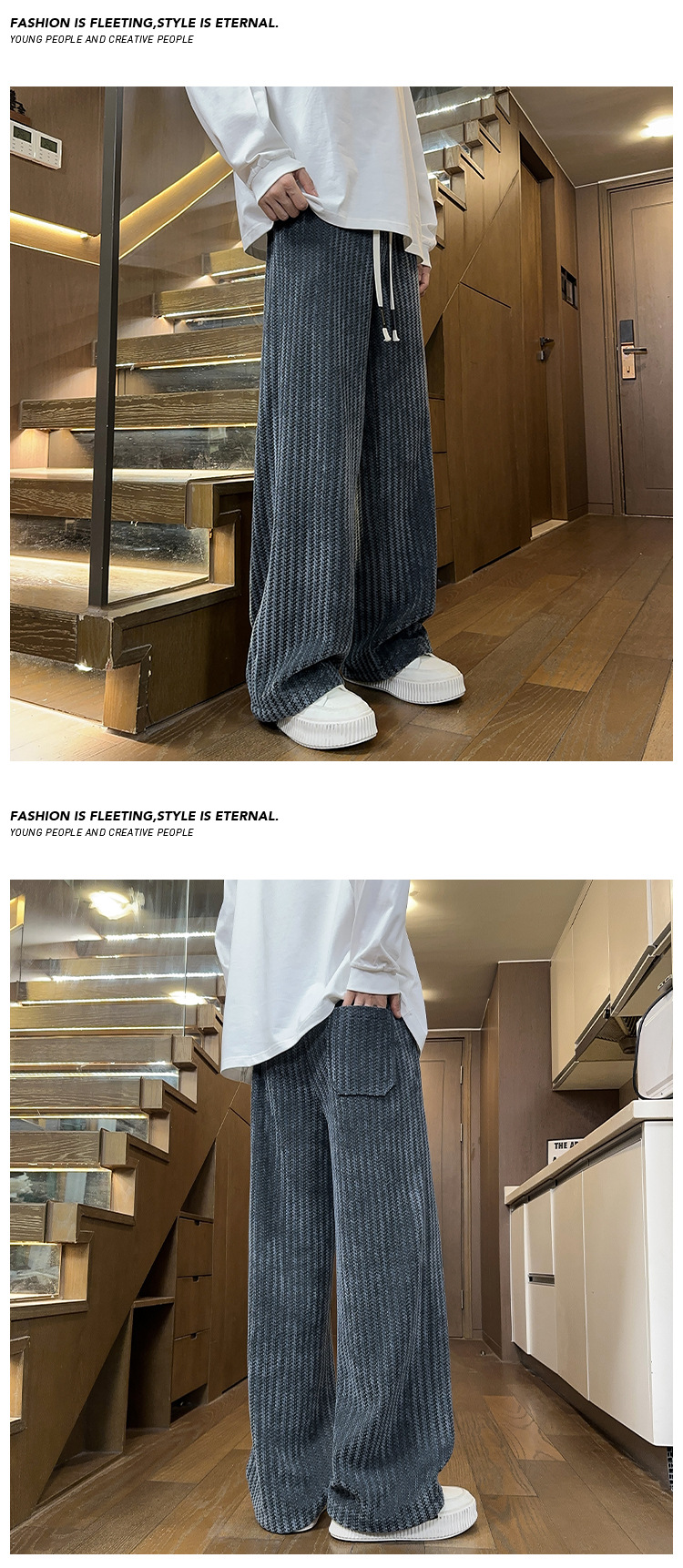 텍스처 자카드 바지 남성 가을, 겨울 트렌디 브랜드 멋진 스트레이트 루즈 바지 남성용 헤비급 와이드 레그 캐주얼 바지