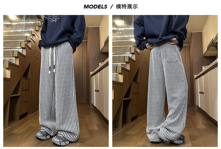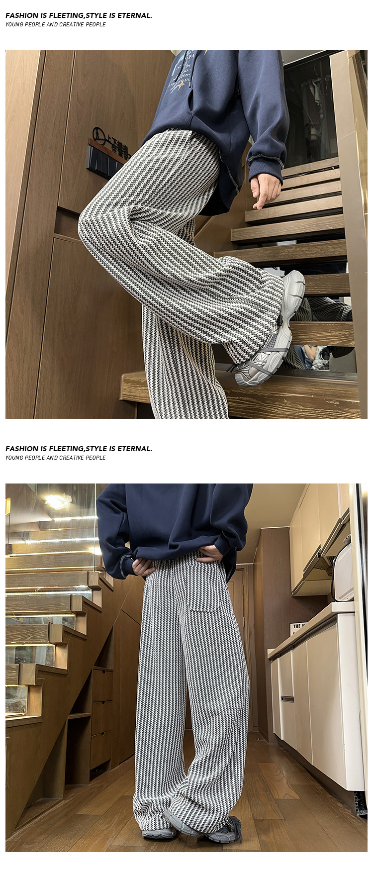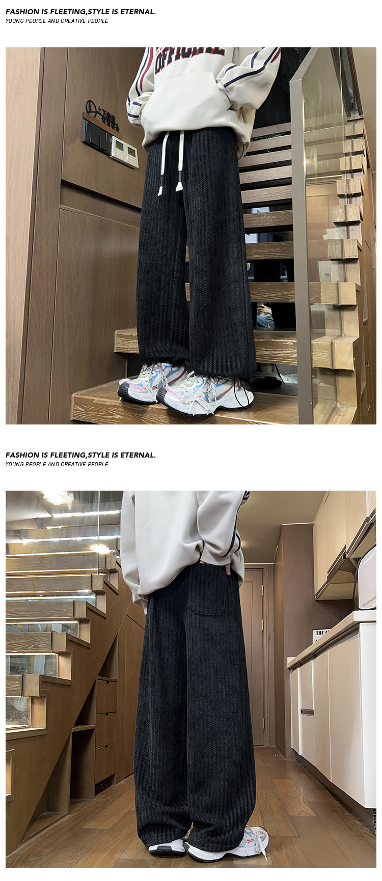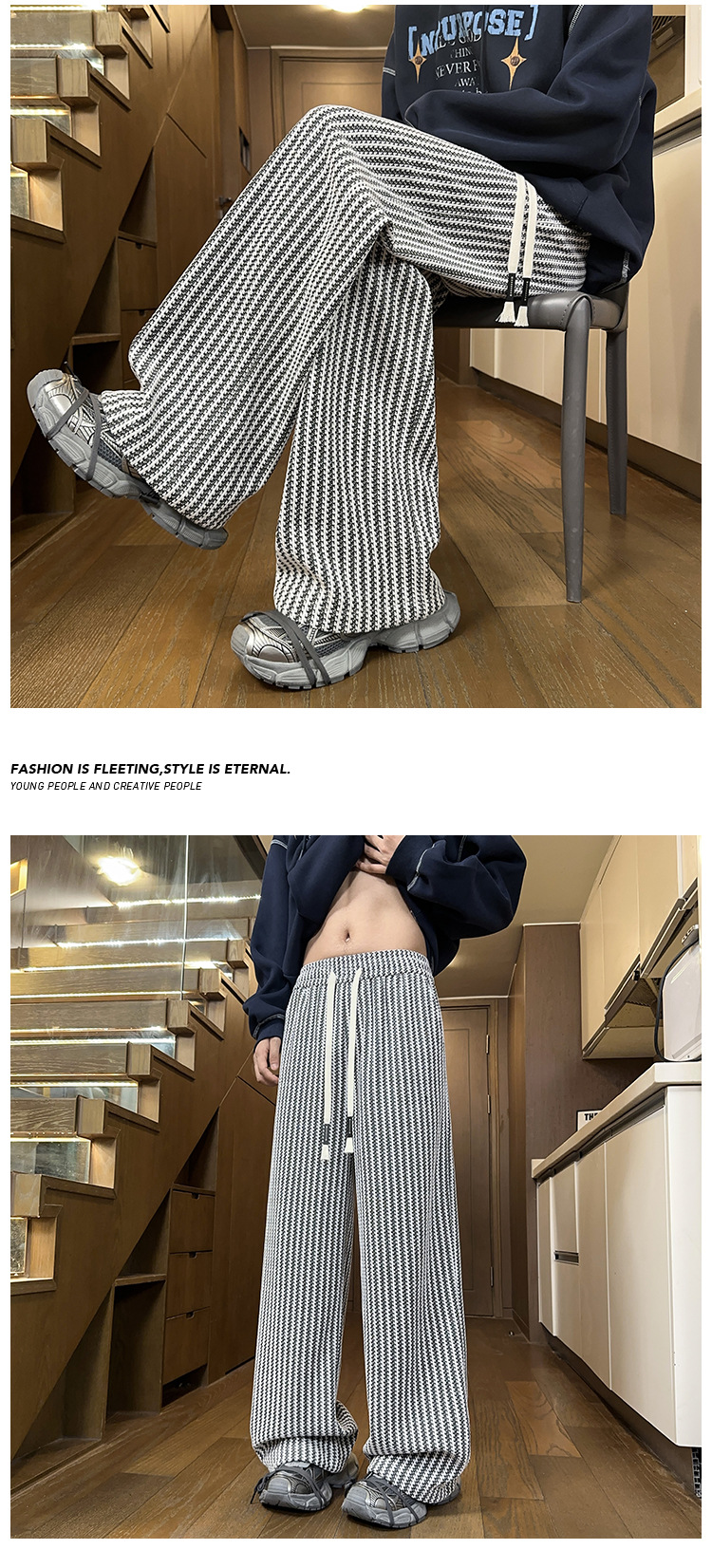 텍스처 자카드 바지 남성 가을, 겨울 트렌디 브랜드 멋진 스트레이트 루즈 바지 남성용 헤비급 와이드 레그 캐주얼 바지