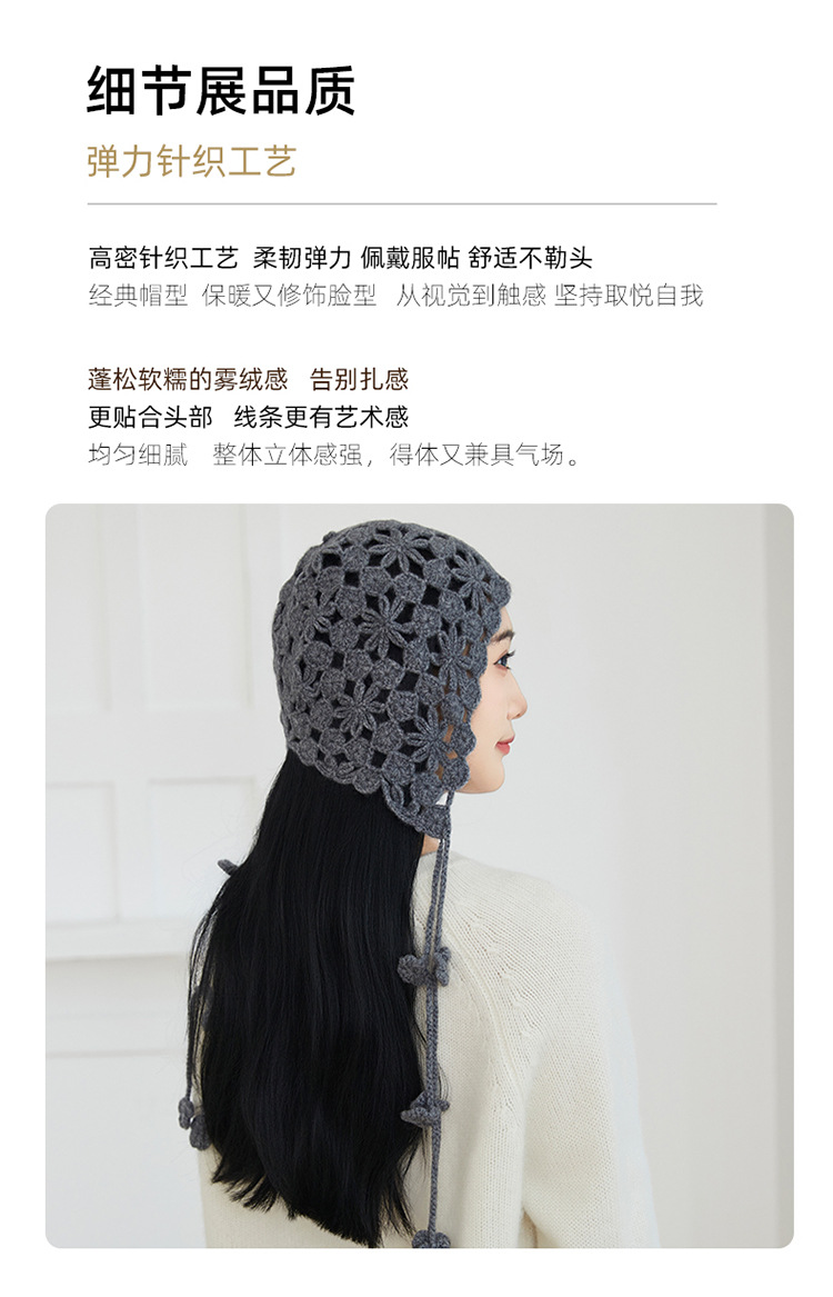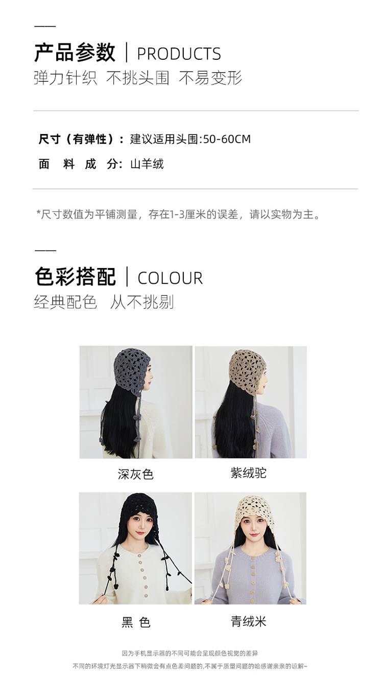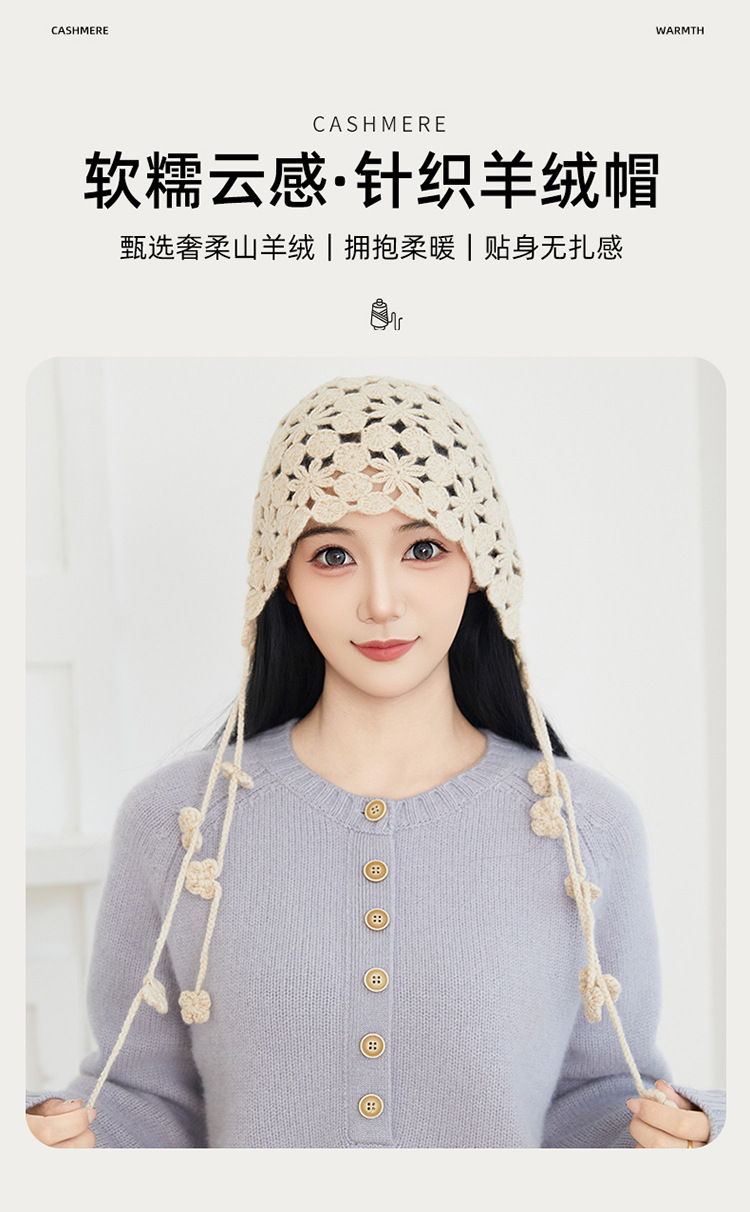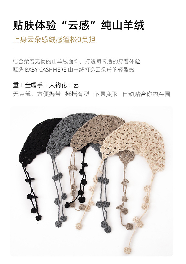 수공예 캐시미어 모자, 꽃무늬 프린지 모자, 에스닉 스타일 속이 비치는 니트 모자, 바오터우 모자, 공장 직판