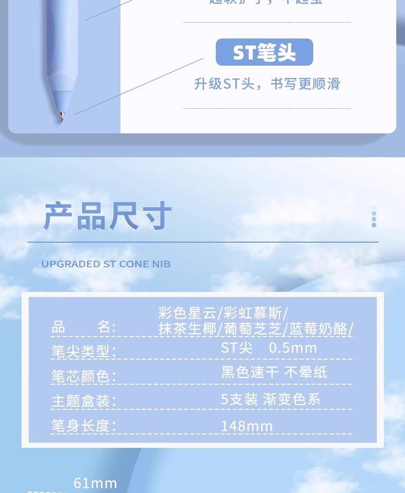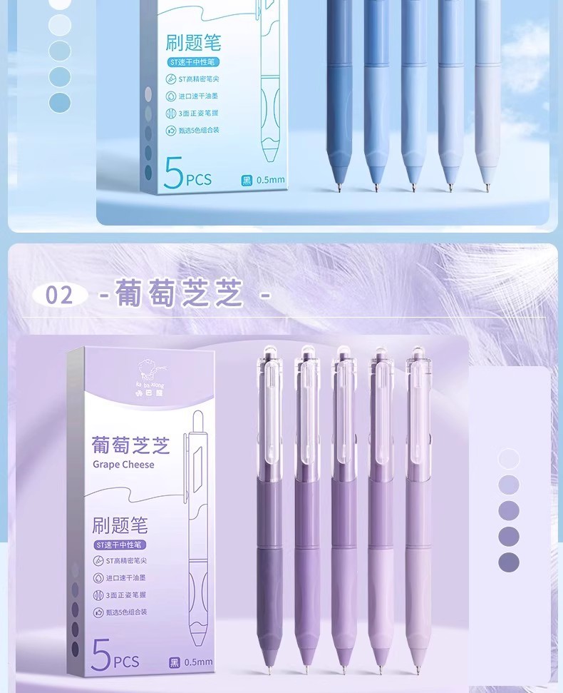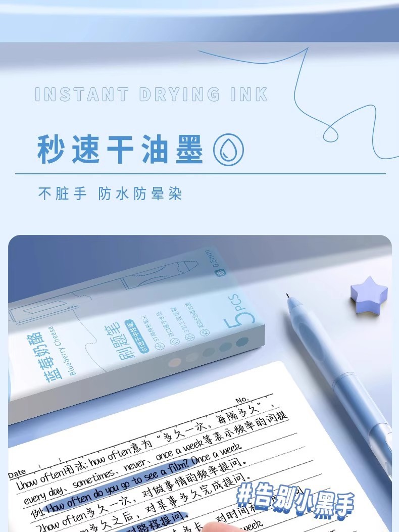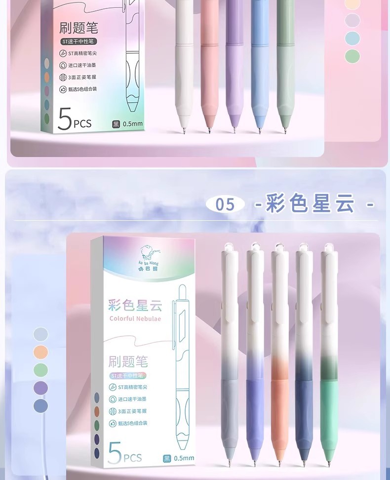| 是否可擦 | 否 | 笔芯颜色 | 按动刷题笔-随机1款-5支 |