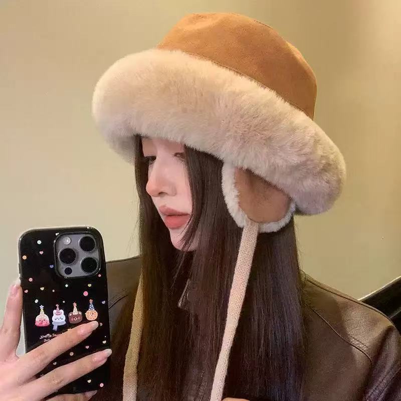 겨울 쇼핑을 위한 두꺼운 벨벳 귀 보호 방한 따뜻한 모자, 여성용 모피 레이펑 모자, 캐주얼 트렌디한 어부 모자