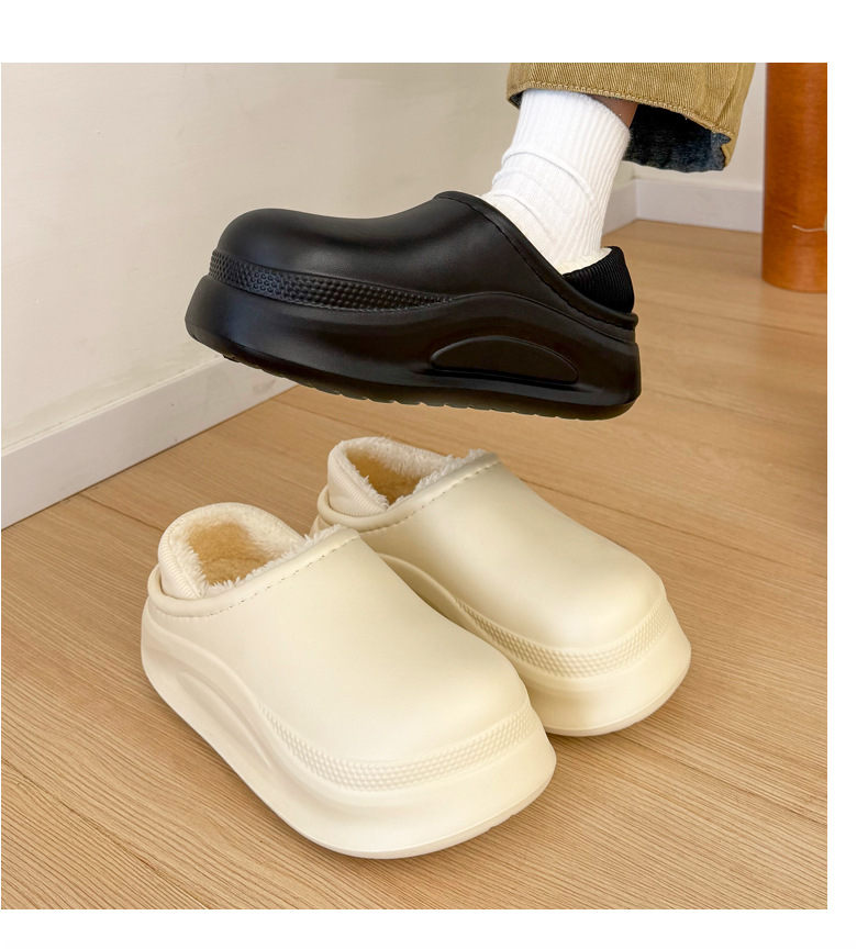 겨울 여성용 한국 스타일의 기능성 면 슬리퍼, 두껍고 벨벳, 방수 및 따뜻함, 가정용 미끄럼 방지 가방 및 여성용 면 신발