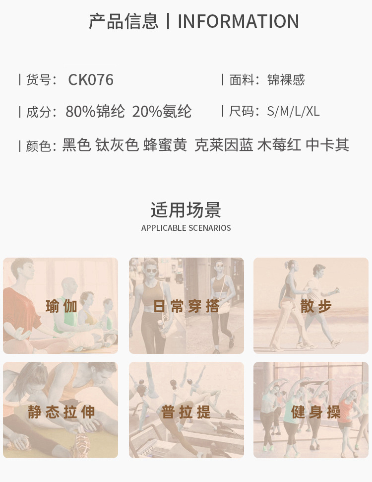 | 尺码 | S, M, L, XL | 材质 | 锦纶80氨纶20 |