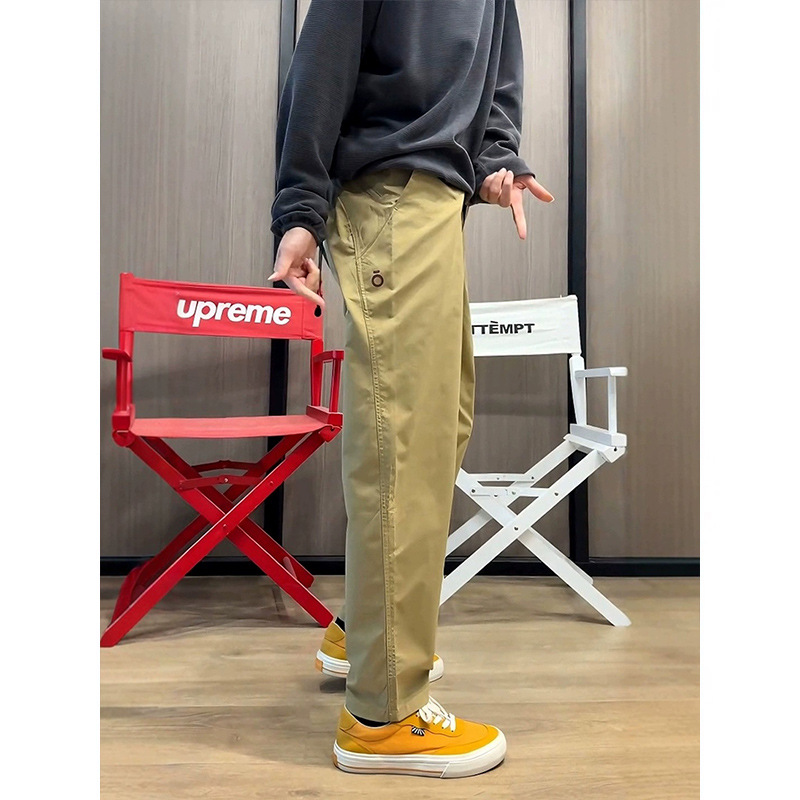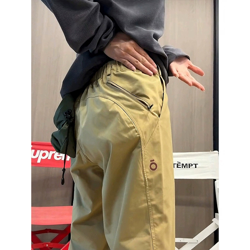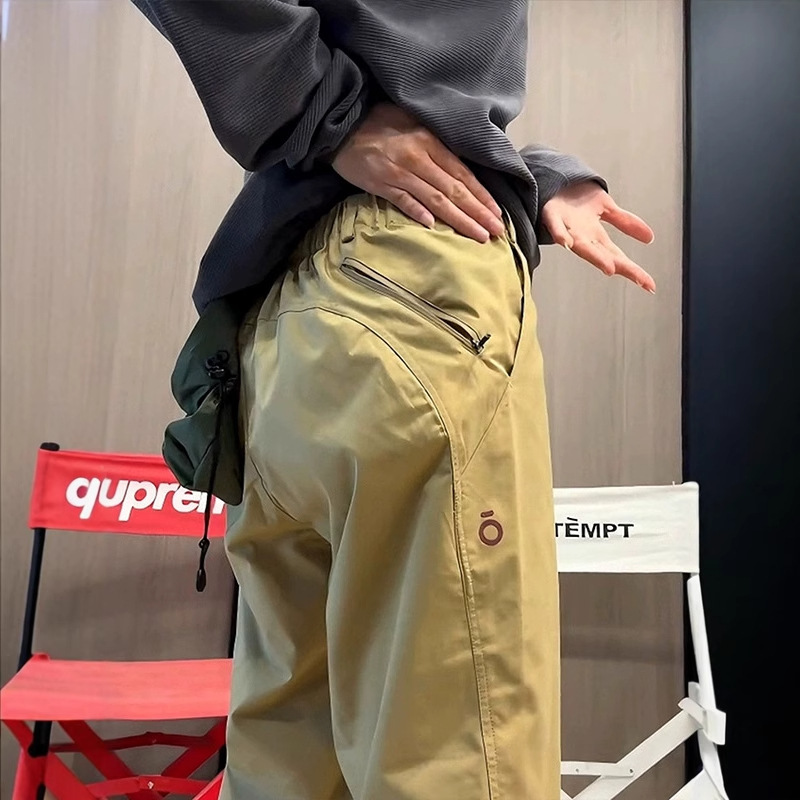 일본 복고풍 카키색 남성용 가을 삼방수 등산 바지 틈새 디자인 테이퍼드 바지