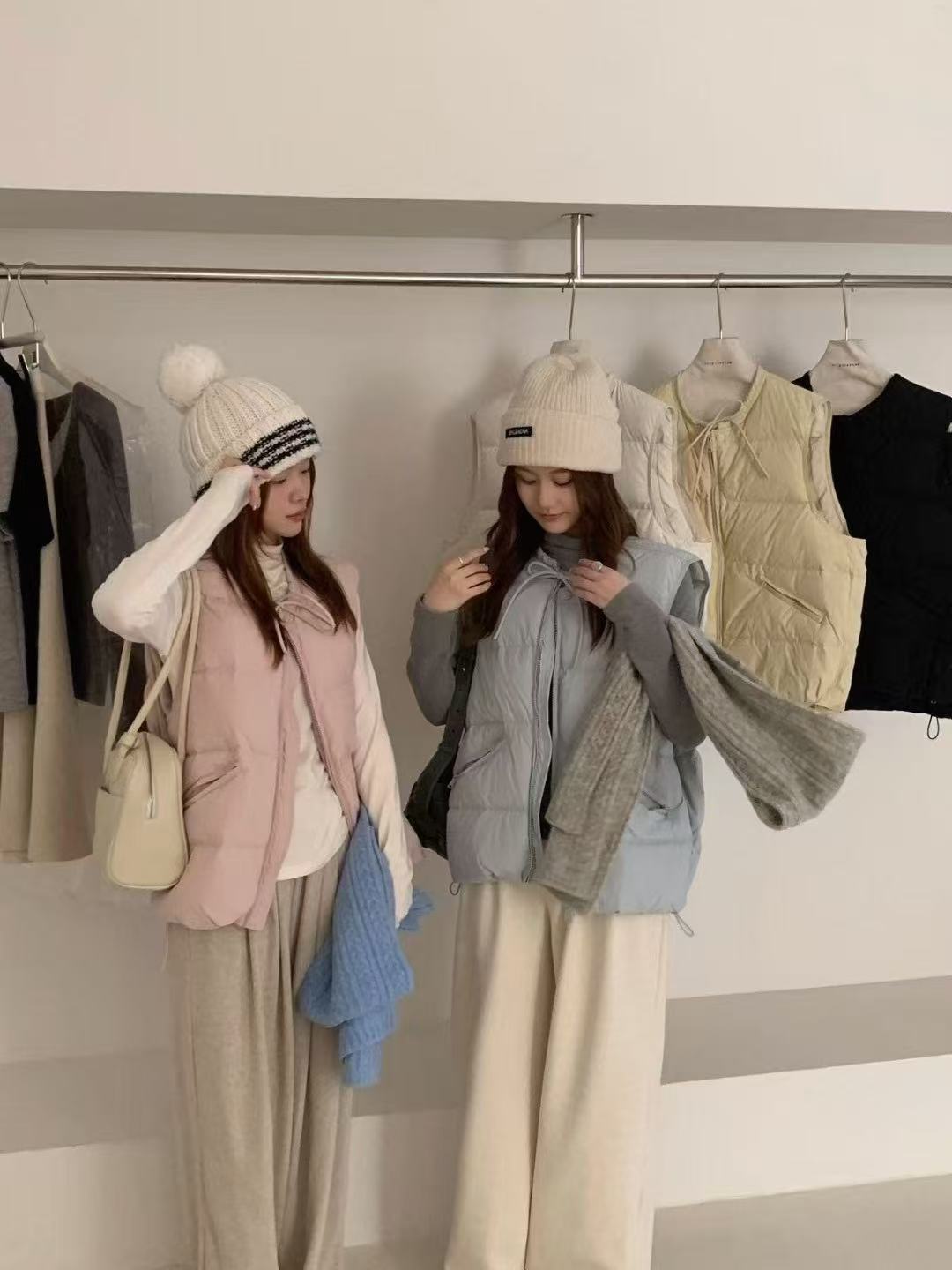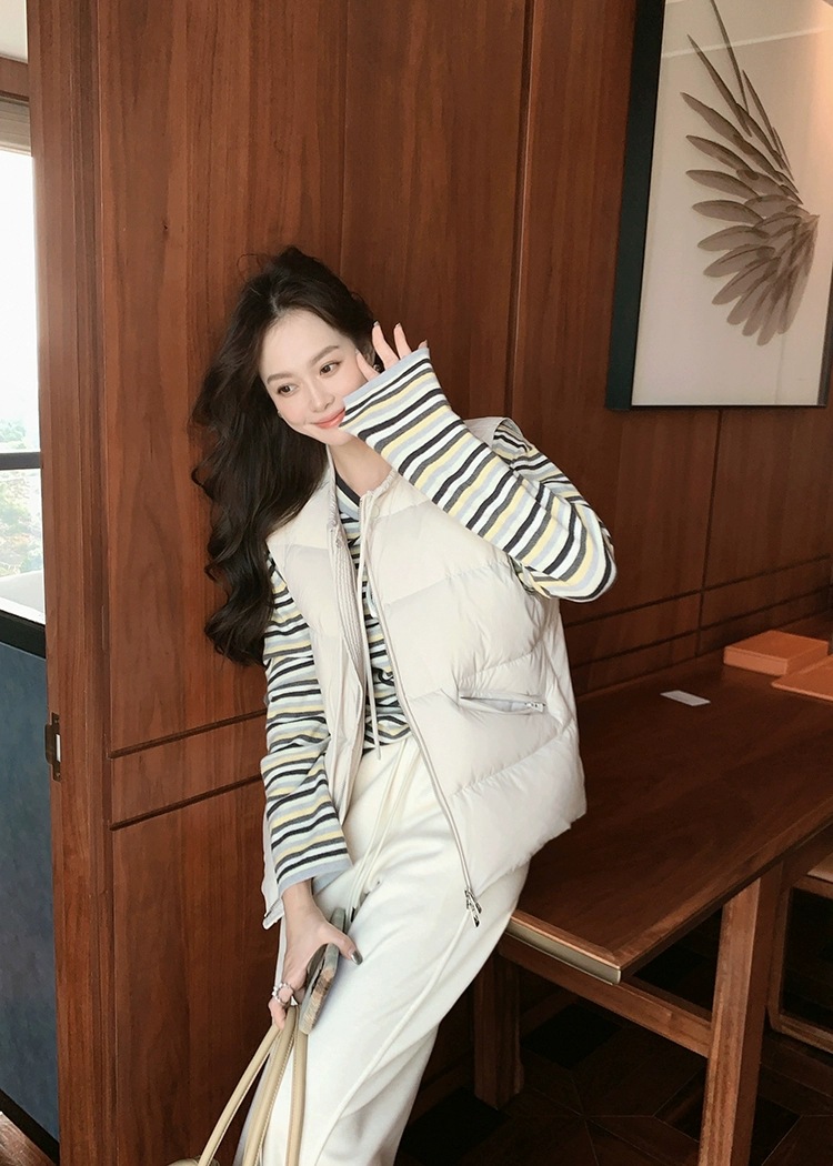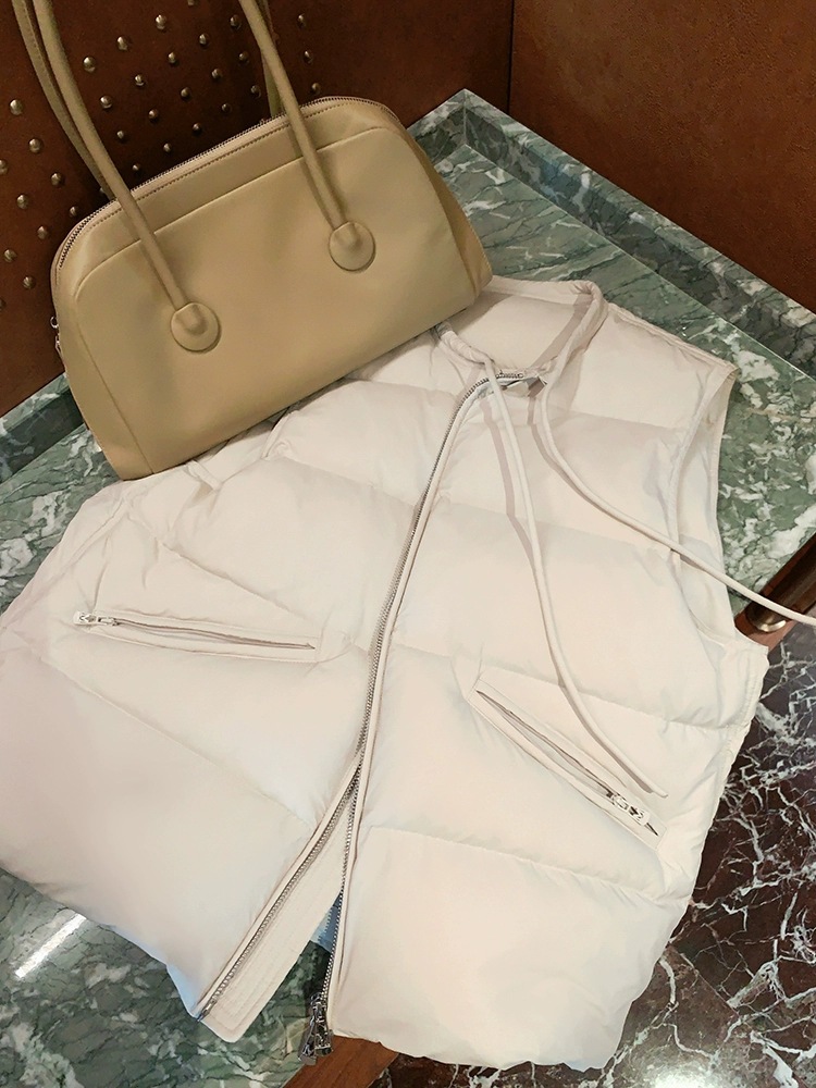 2025 새로운 가을, 겨울 패션 캐주얼 다운 조끼 라운드 넥 여성 디자인 화이트 오리 다운 조끼 조끼