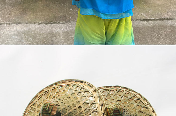 대나무 빨간 군대 골동품 모자 농부 야외 태양 보호 및 비 보호 밀짚 모자 성인 및 어린이 댄스 공연 소품 모자