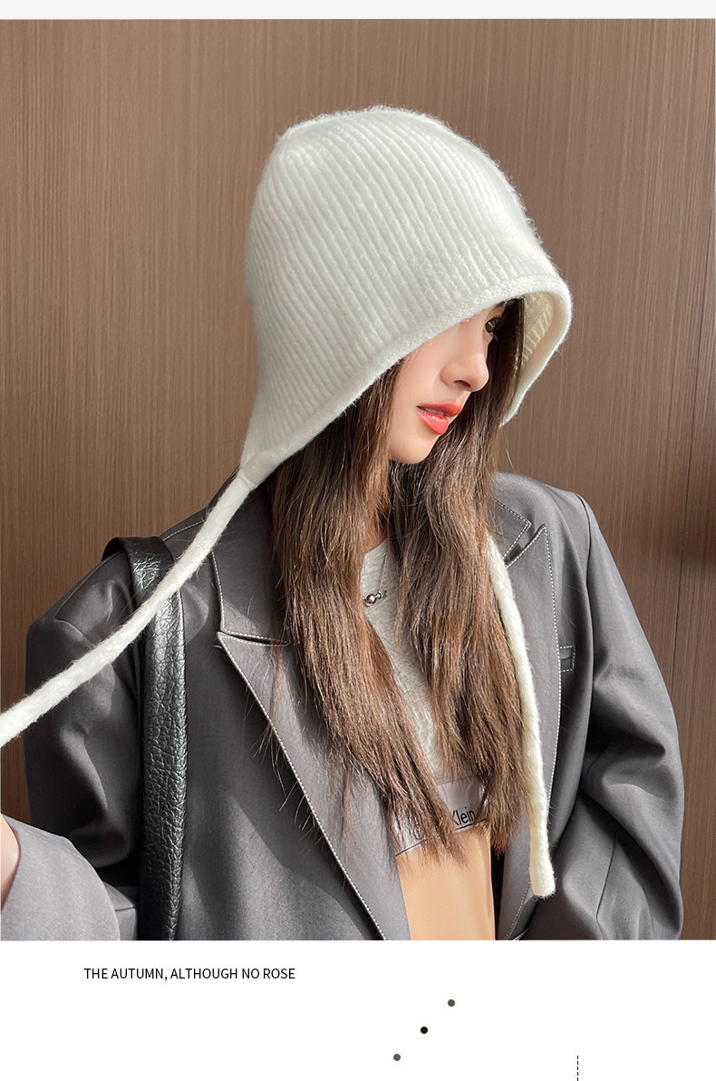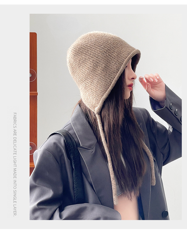 모직 모자, 여성용 가을 겨울 모자, 패셔너블하고 다재다능한 니트 단색 파일 모자, 따뜻한 귀 보호 모자, 큰 머리 둘레의 방한 모자, 한국