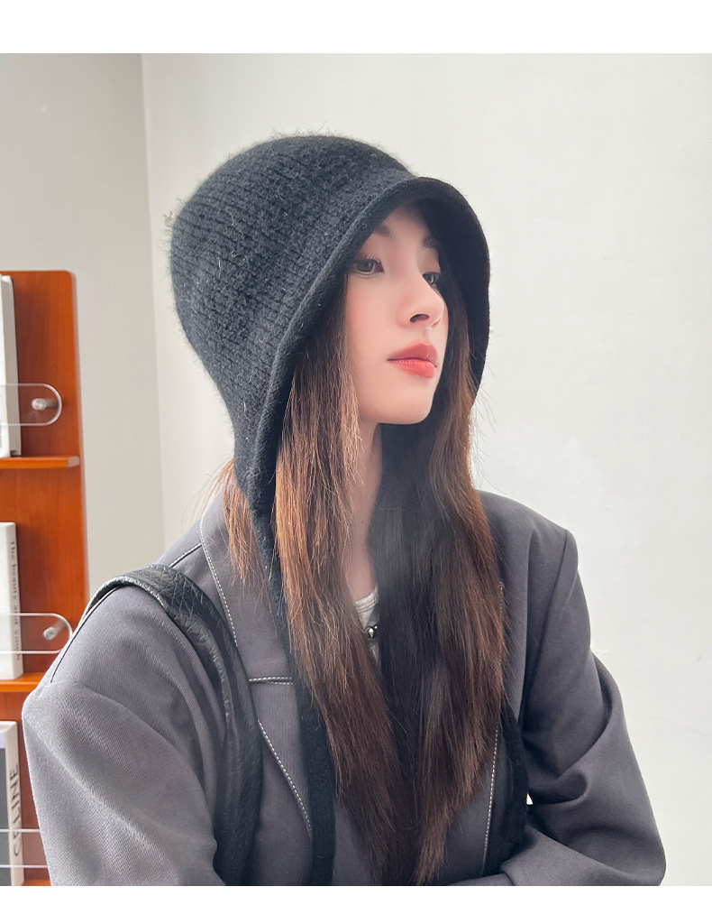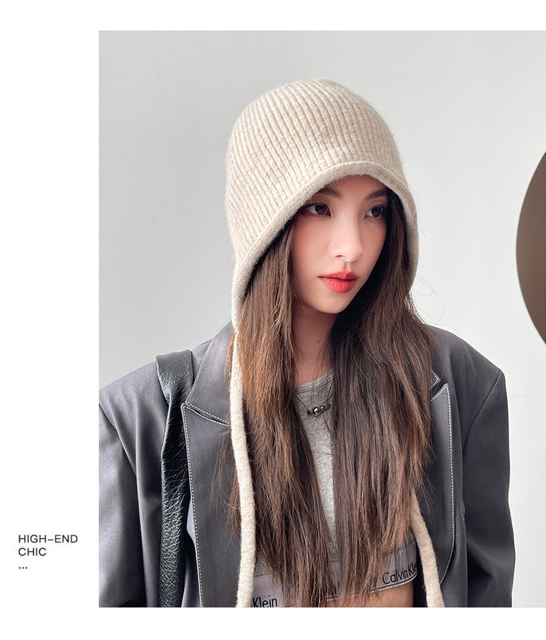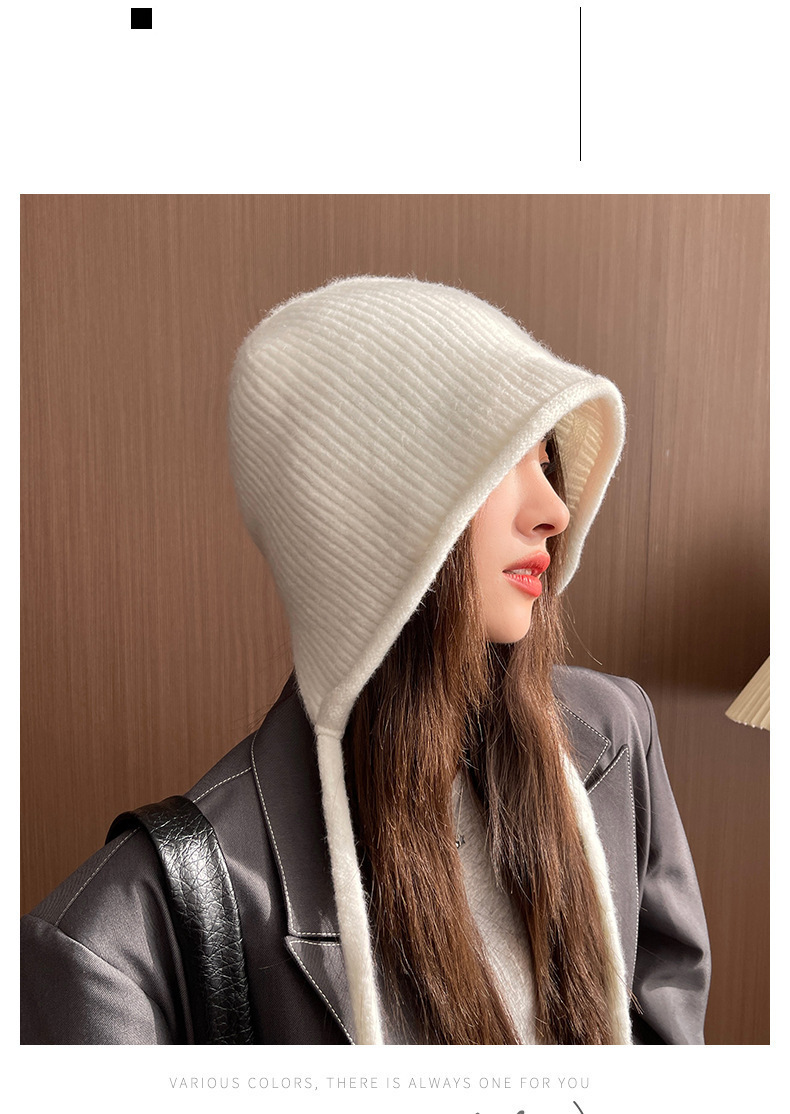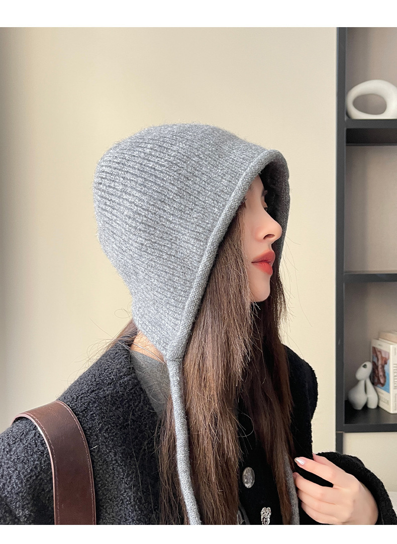 가을 겨울 단색 푸시업 모자, 따뜻한 귀 보호 모자, 여성 패션 다용도 니트 모직 모자, 큰 머리 둘레 방한 모자, 한국