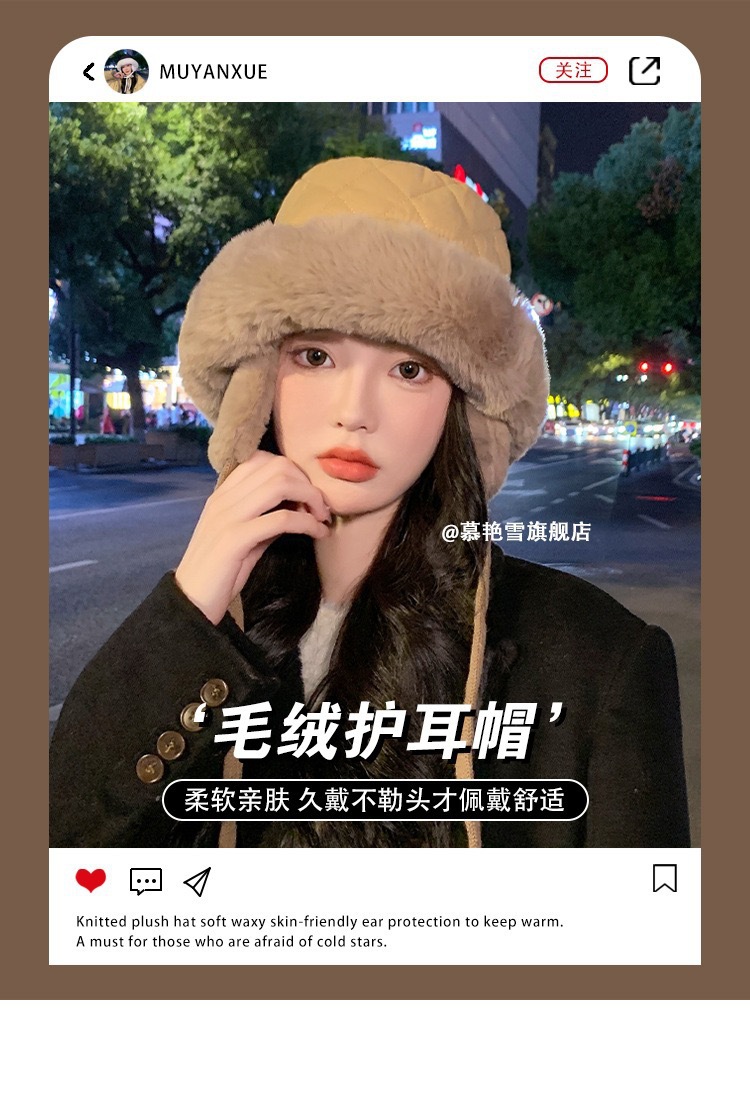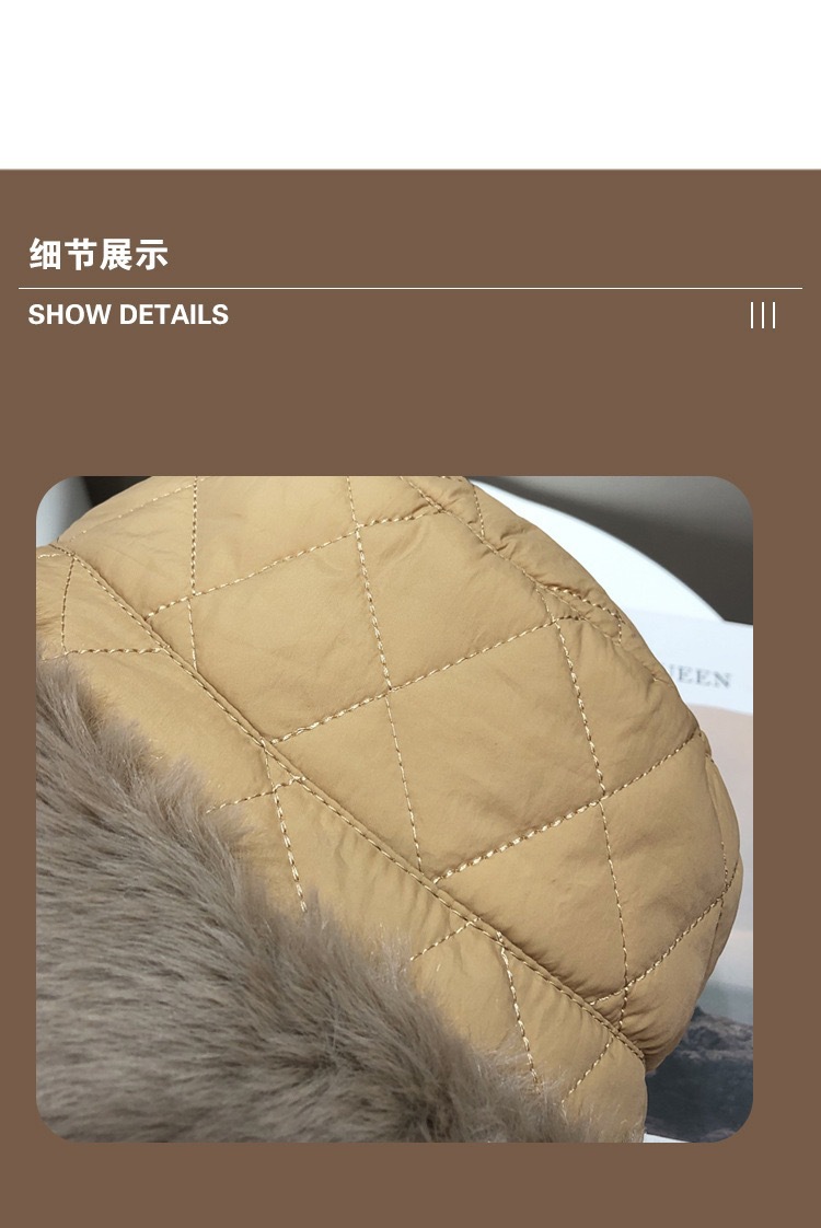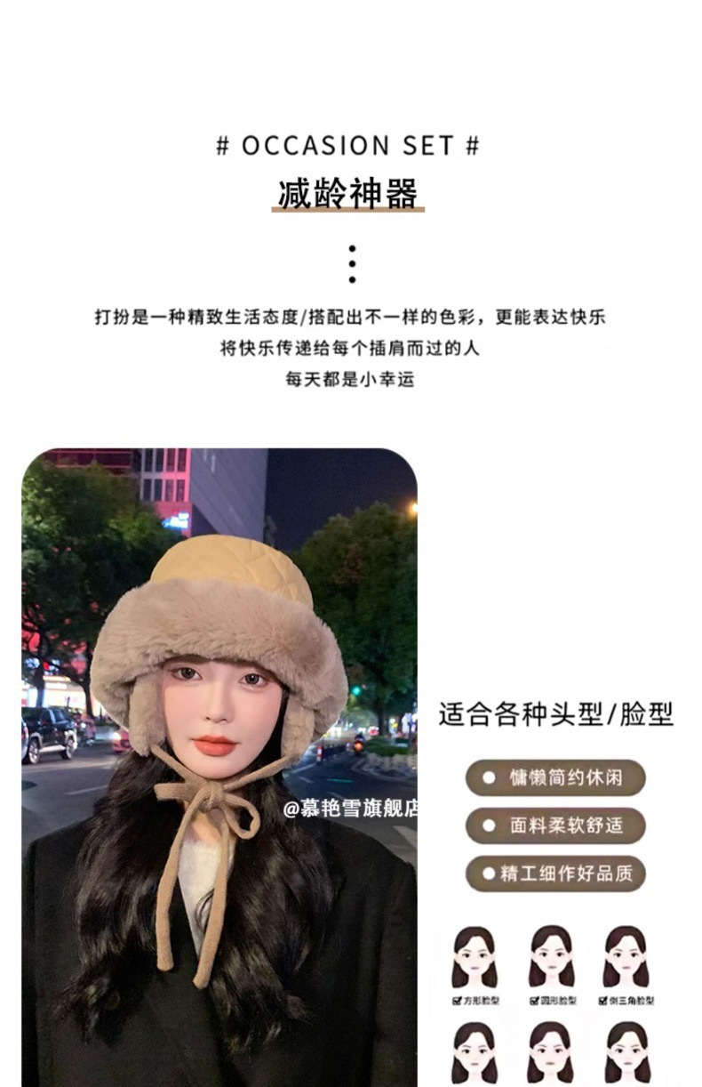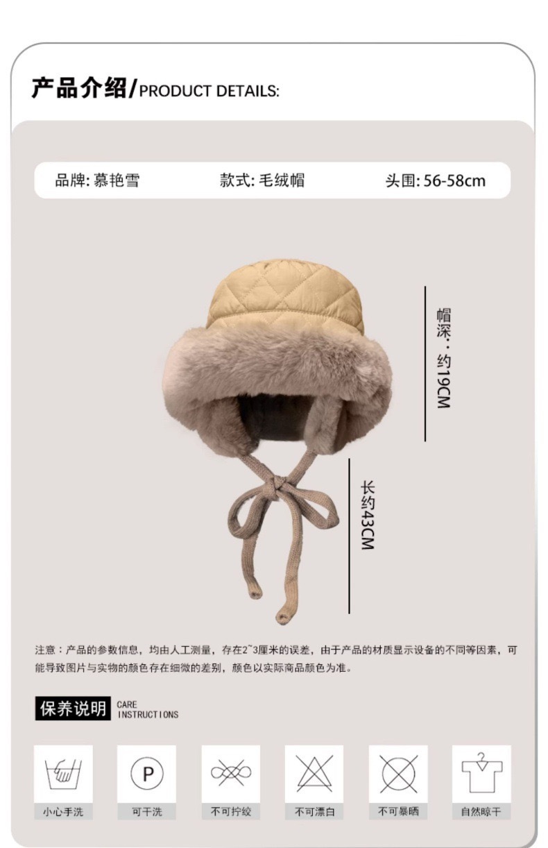 | 颜色 | 羽绒护耳渔夫【卡其】, 羽绒护耳渔夫【米色】, 羽绒护耳渔夫【黑色】, 羽绒护耳渔夫【军绿】, 羽绒护耳渔夫【灰色】, 麂皮绒护耳渔夫【黑色】, 麂皮绒护耳渔夫【米色】, 麂皮绒护耳渔夫【卡其】, 麂皮绒护耳渔夫【灰色】, 麂皮绒护耳渔夫【粉色】 | 功能 | 护颈, 保暖, 防风 |