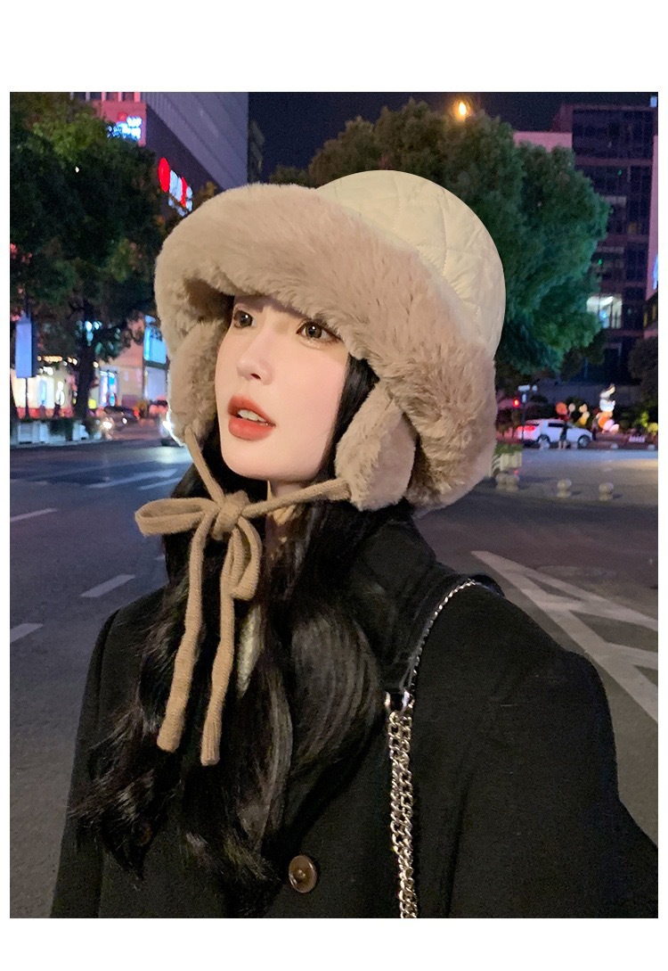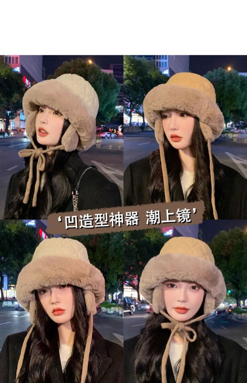 여성용 레이펑 모자, 가을 겨울 따뜻한 귀 보호 모자, 귀여운 북동 방한 모자, 어부 모자, 두꺼운 방풍 면 모자