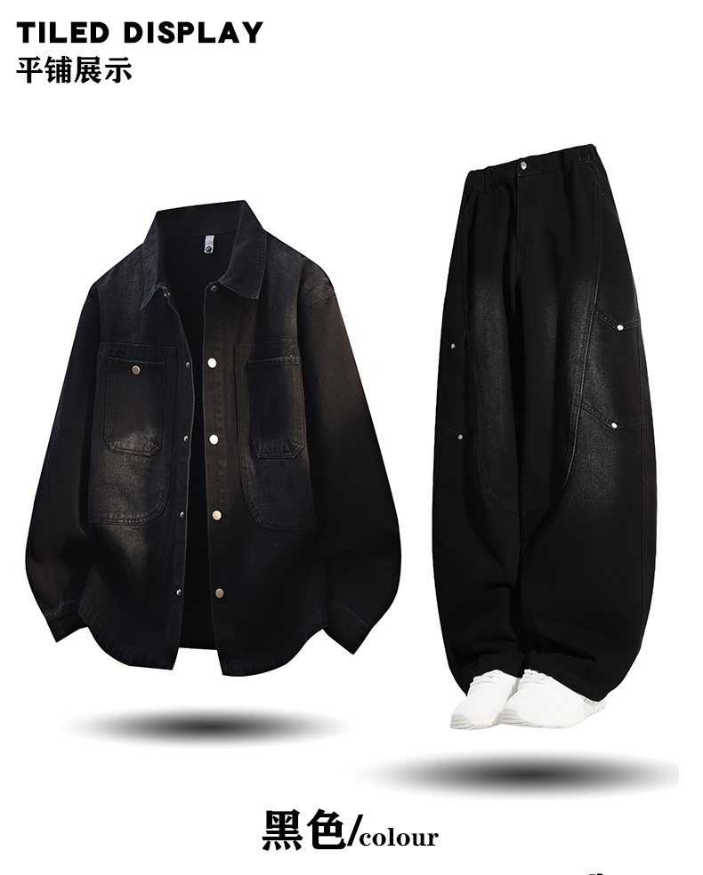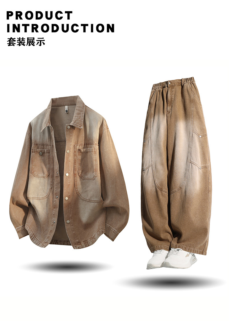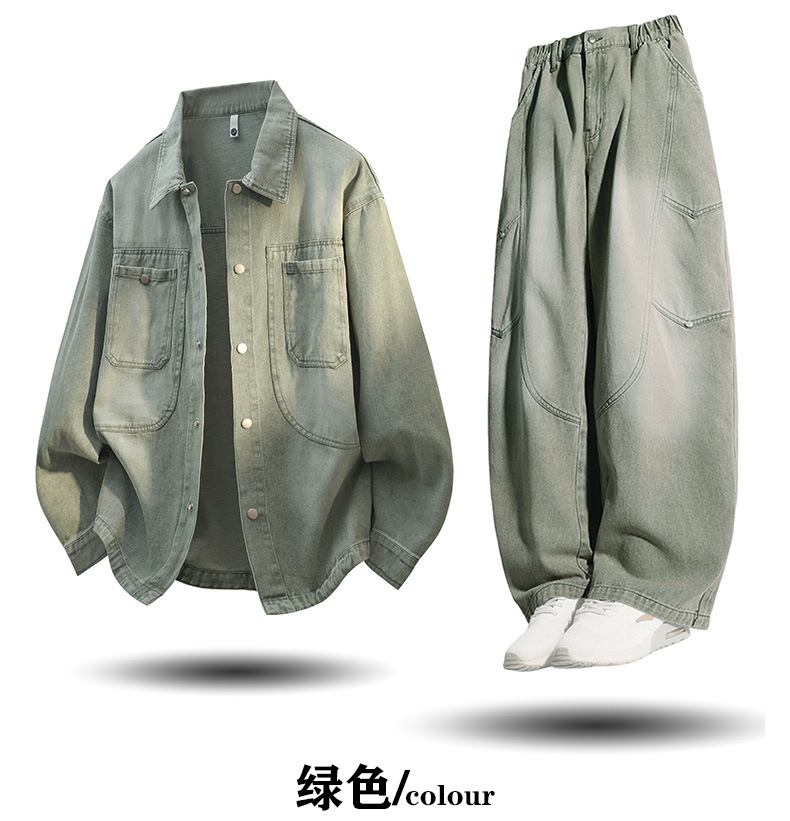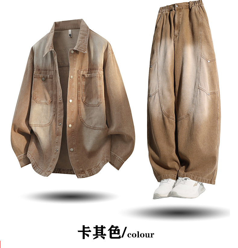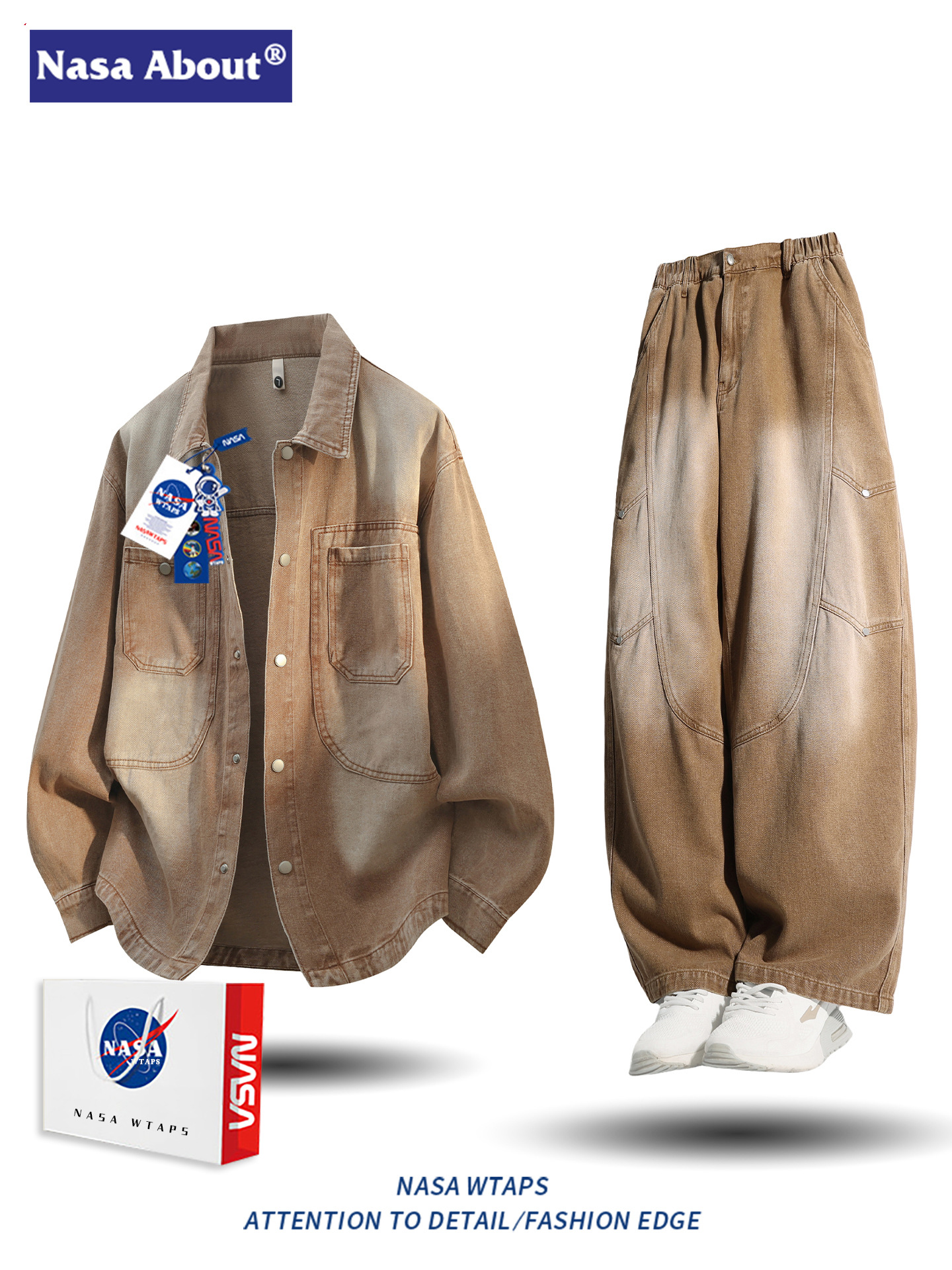 NASA ABOUT 아메리칸 워크웨어 데님 슈트 남성 신작 가을 겨울 재킷 바지 남성용 캐주얼 투피스 세트