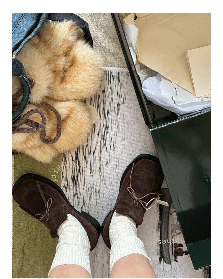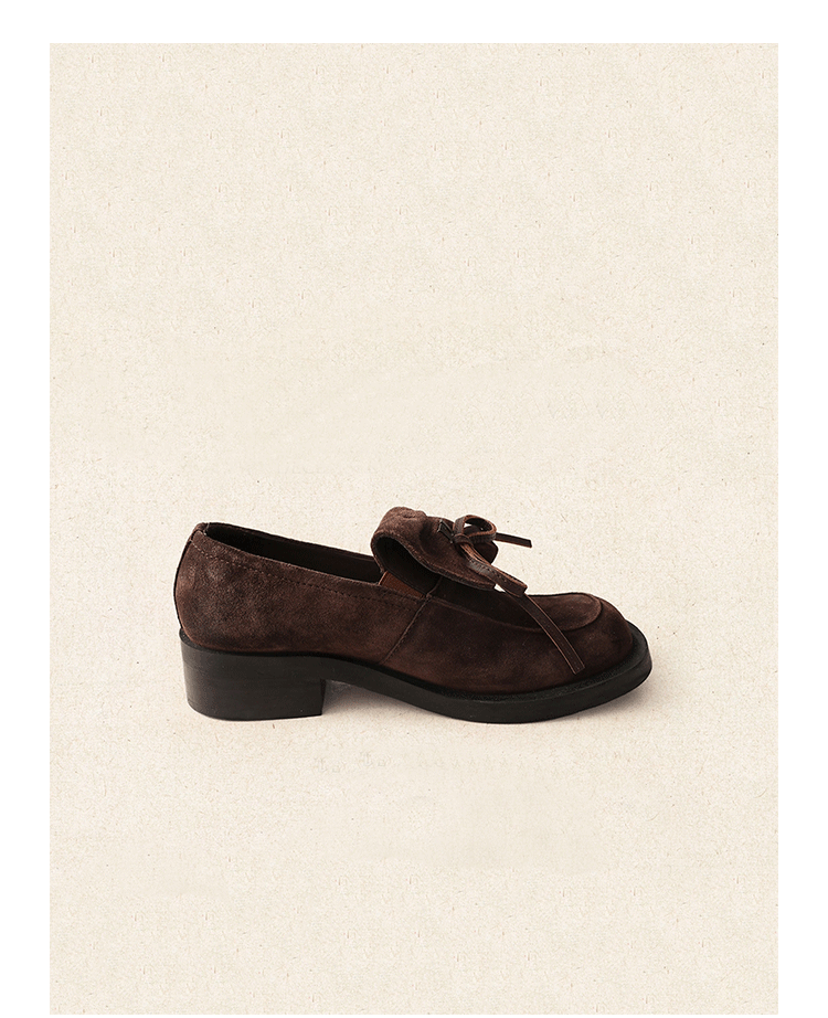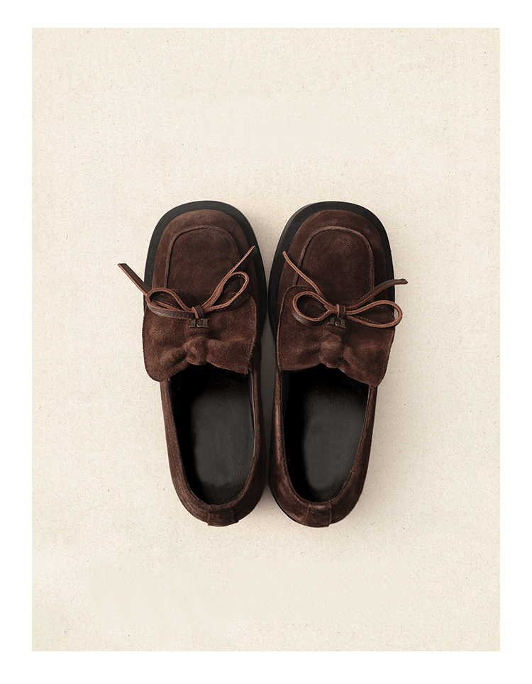 양가죽 버전 ~ 레트로 영국 스타일 두꺼운 굽 로퍼 여성 2025 가을 신작 나비 매듭 스퀘어 토 작은 가죽 신발