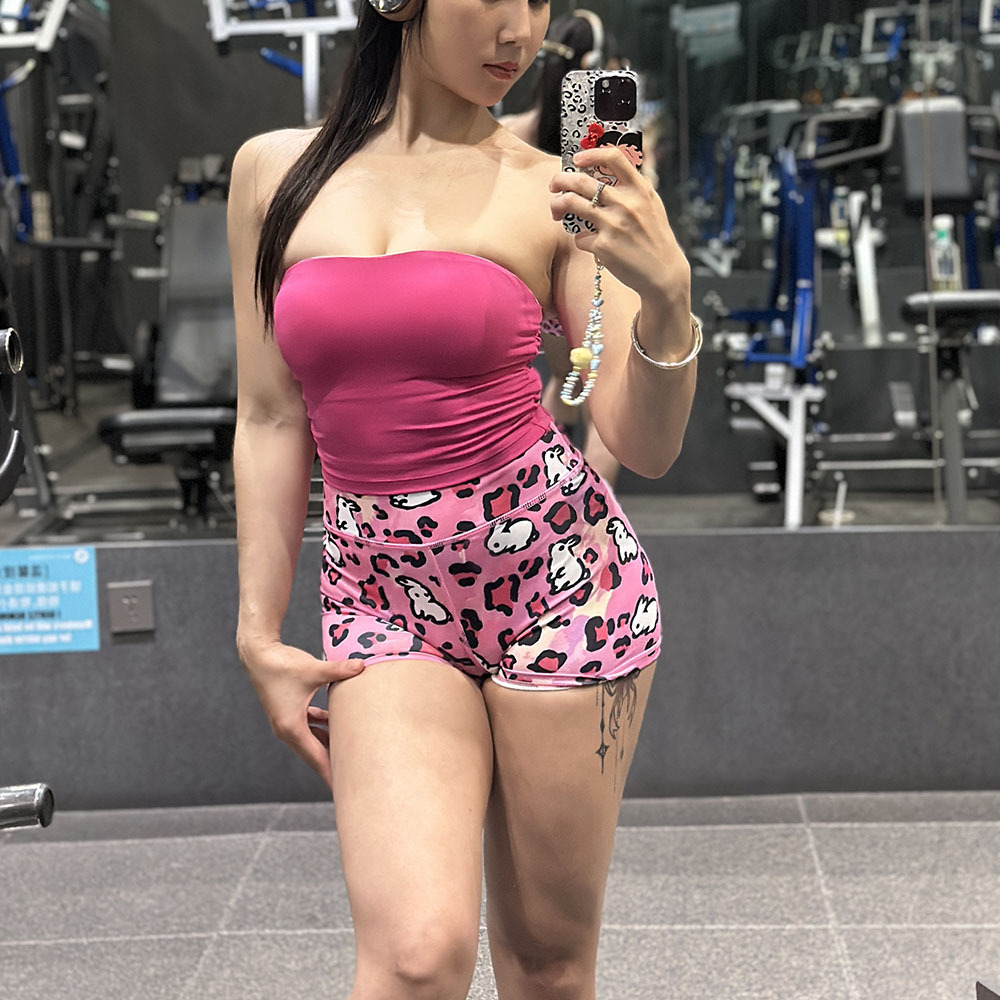 레오파드 프린트 토끼 통기성 엉덩이 노출 피트니스 반바지 여성용 스트레치 타이트 요가 핫팬츠 장비 트레이닝 스포츠 3점 바지