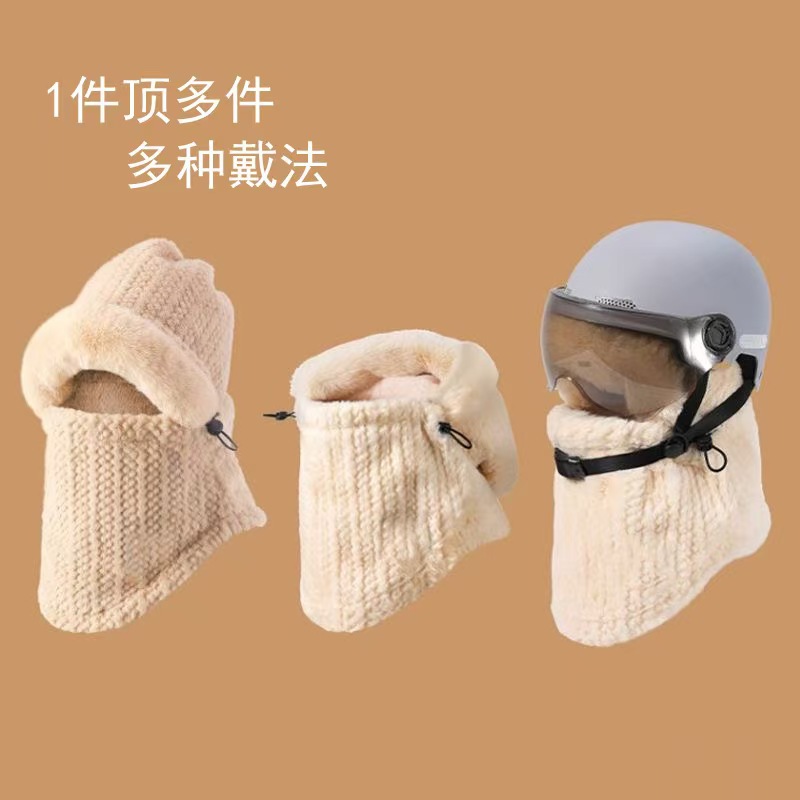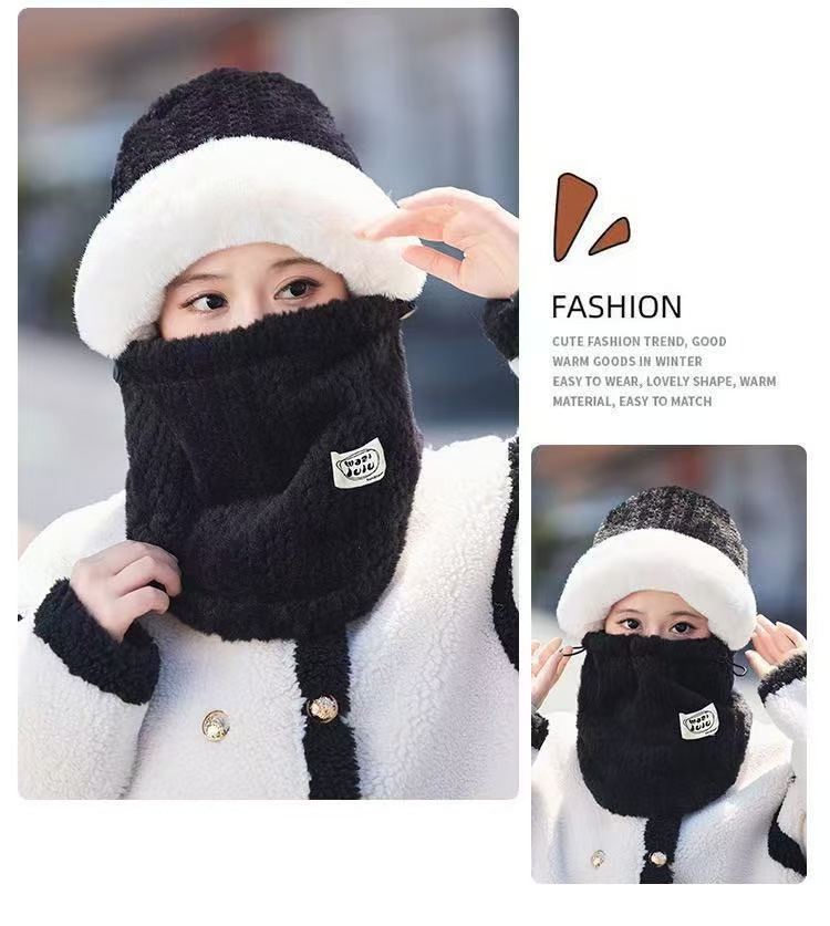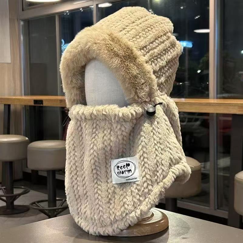 새로운 모자와 스카프가 하나로 통합된 여성용 가을 겨울 따뜻한 귀 보호 모자 사이클링 플러시 모자 방풍 및 방한 두꺼운 풀오버 모자