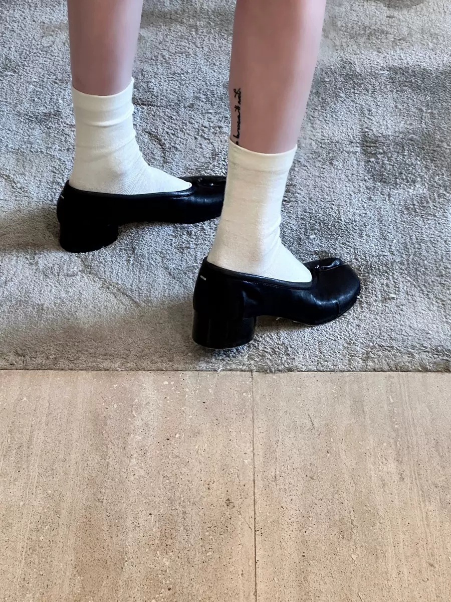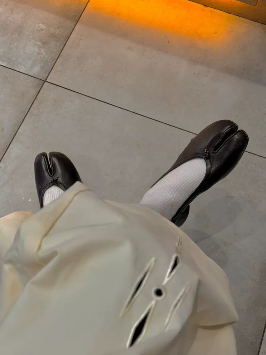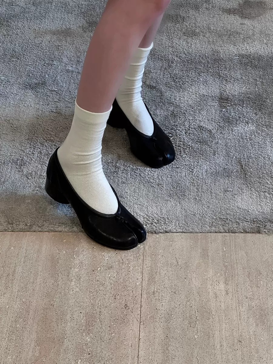 양가죽 버전~ 천연가죽 니치 두꺼운 굽 얕은 입 슬립온 여성용 돼지발톱 슈즈 말발굽 스플릿 토 슈즈 메리제인 슈즈