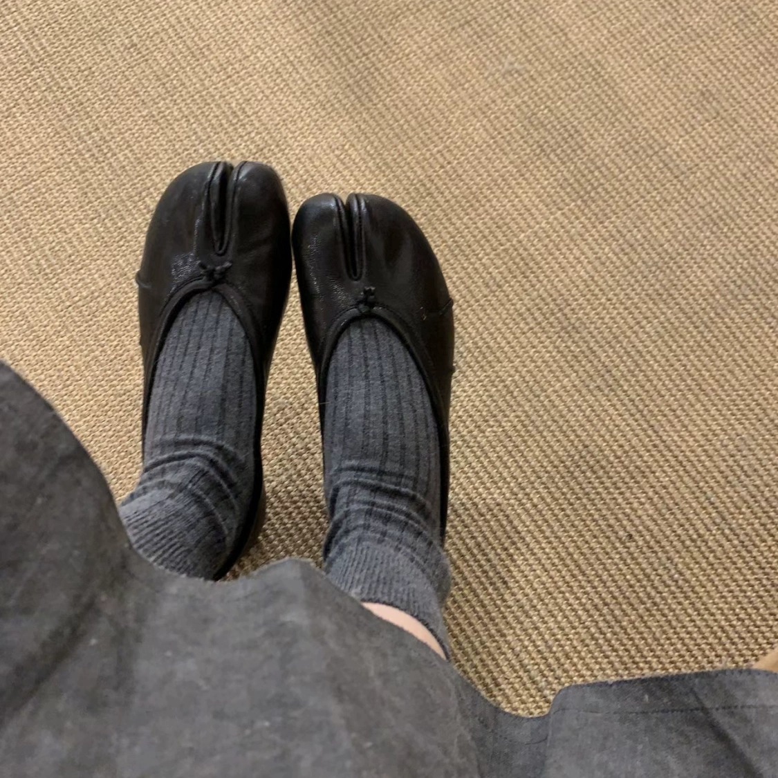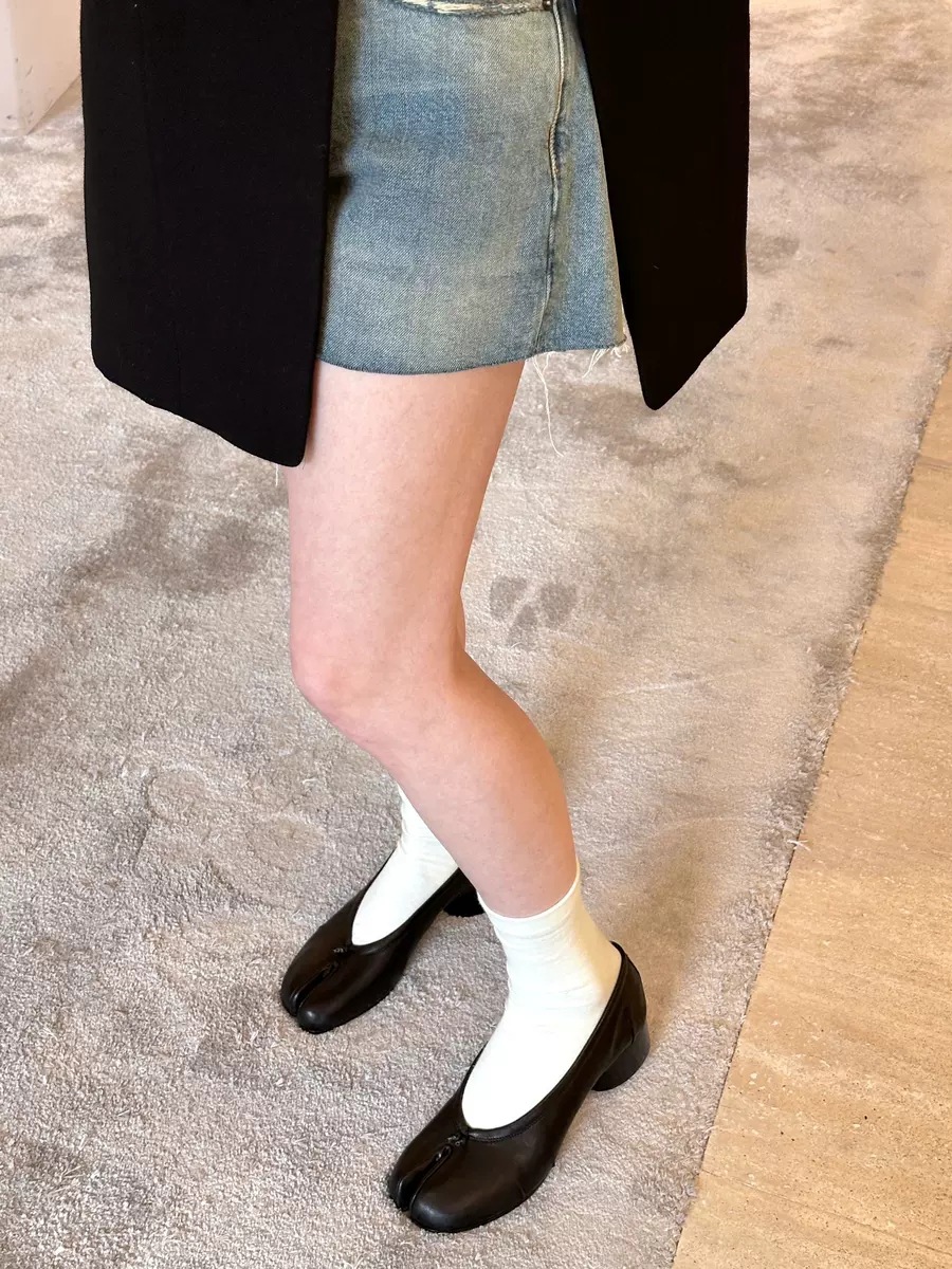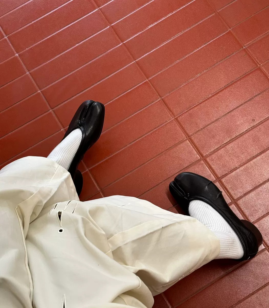 양가죽 버전~ 천연가죽 니치 두꺼운 굽 얕은 입 슬립온 여성용 돼지발톱 슈즈 말발굽 스플릿 토 슈즈 메리제인 슈즈