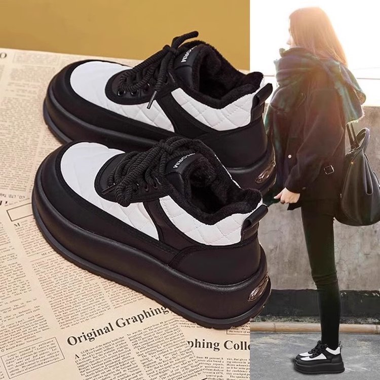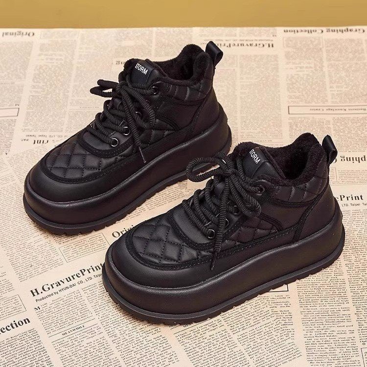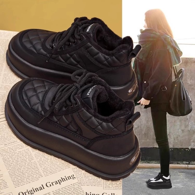 여성을위한 벨벳 따뜻한 두꺼운 밑창 미끄럼 방지 스노우 부츠 2025 가을, 겨울 새로운 스타일 벨벳 따뜻하고 높은 스포츠 및 캐주얼 신발 유행