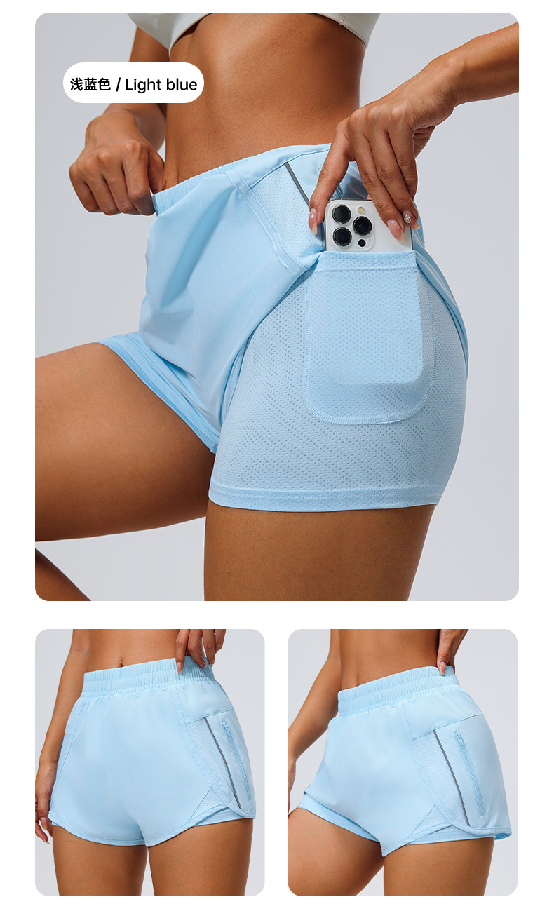 여성용 스포츠 포켓 반바지, 루즈한 3부 팬츠, 속건성 안감, 노출 방지, 여성용 더블 레이어 피트니스 반바지