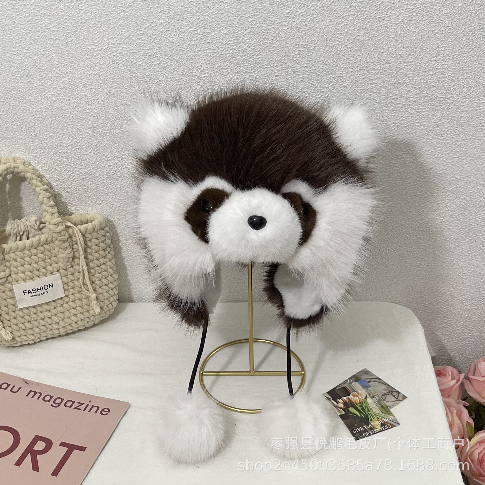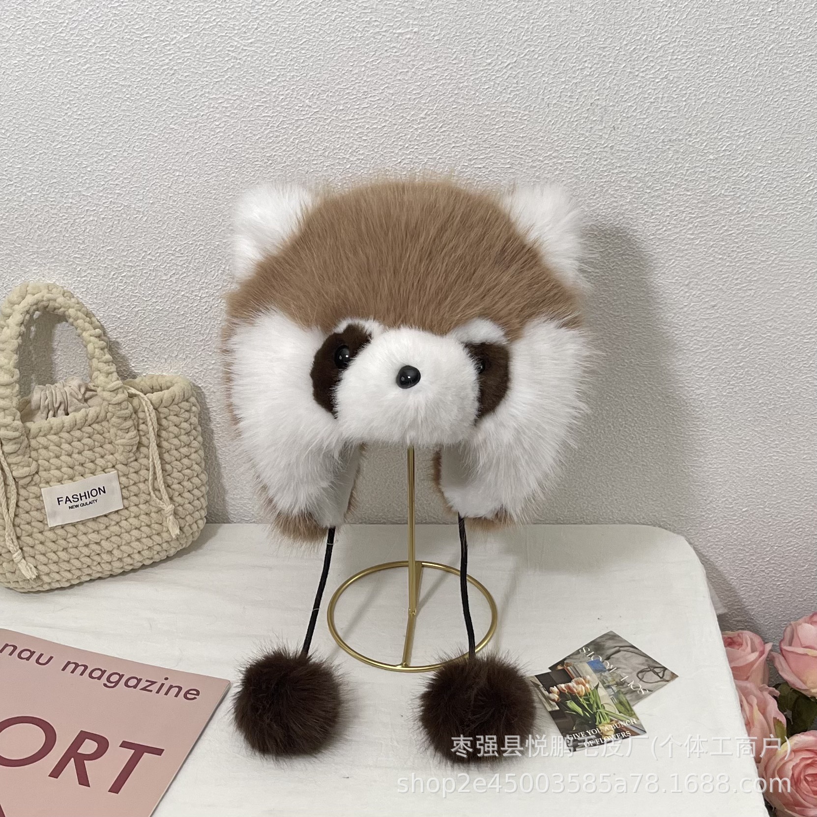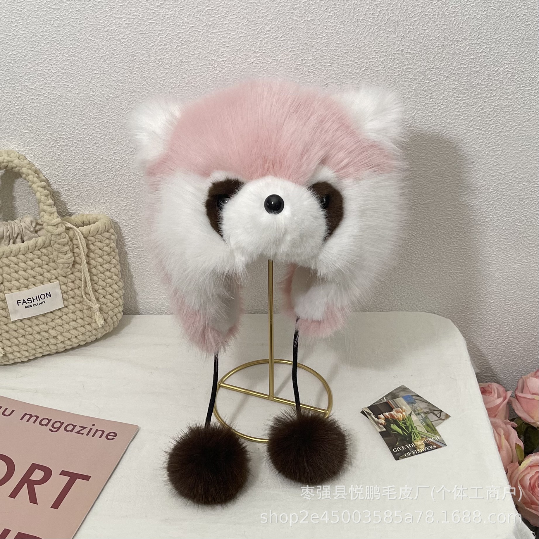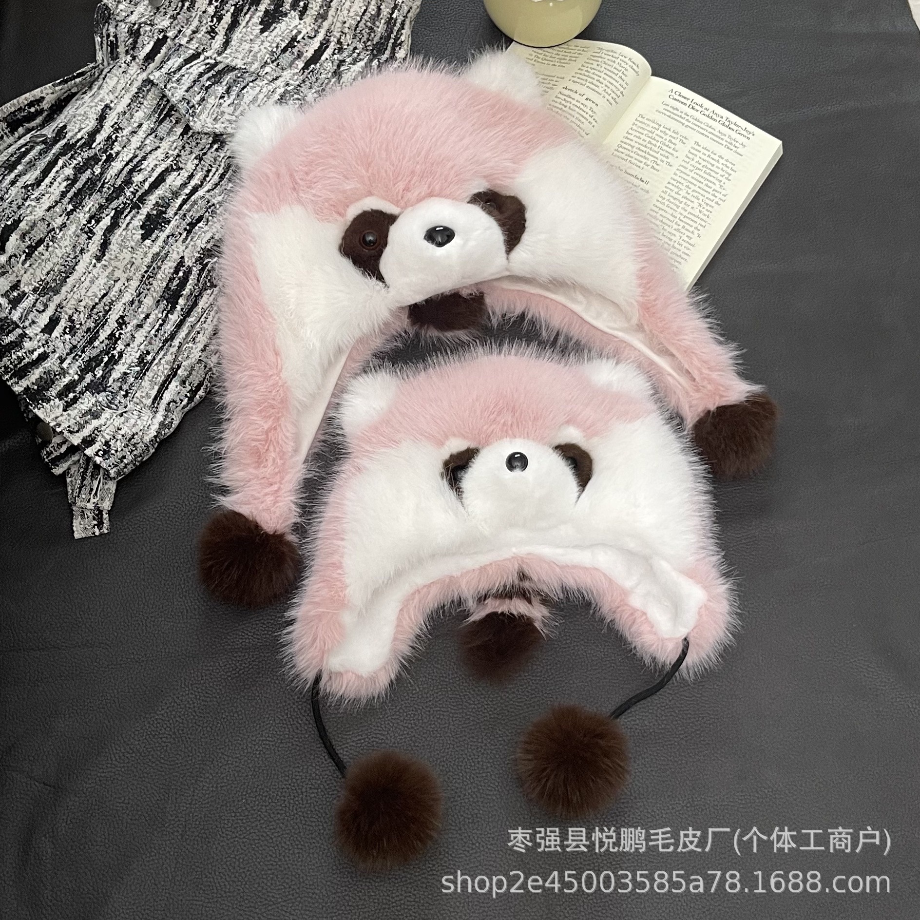 팬더 모자 겨울 모자 두꺼운 부모-자식 스타일 귀여운 만화 귀 보호 모피 방풍 겨울 모자