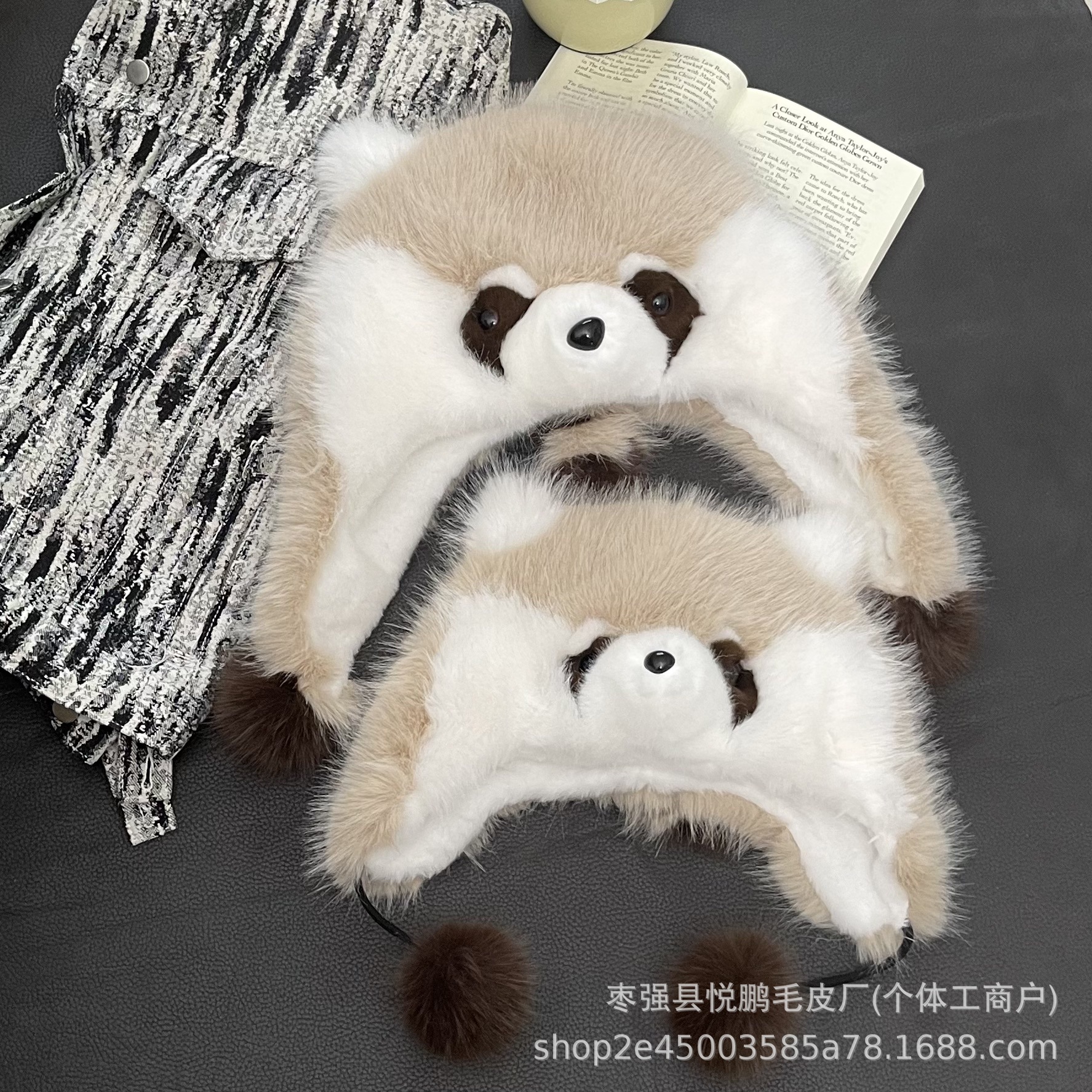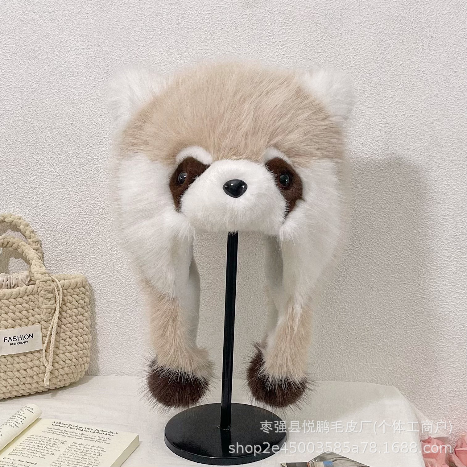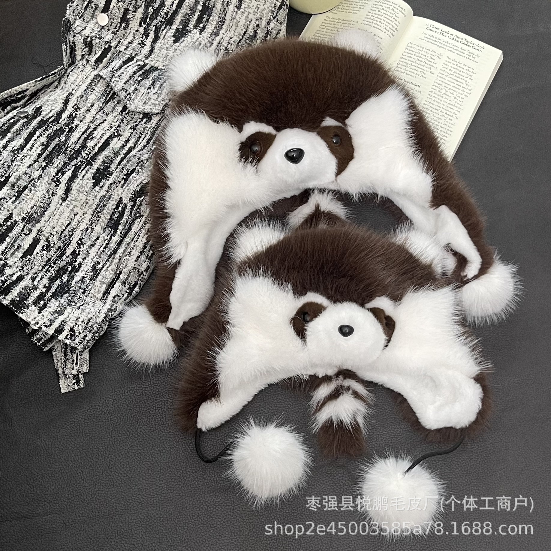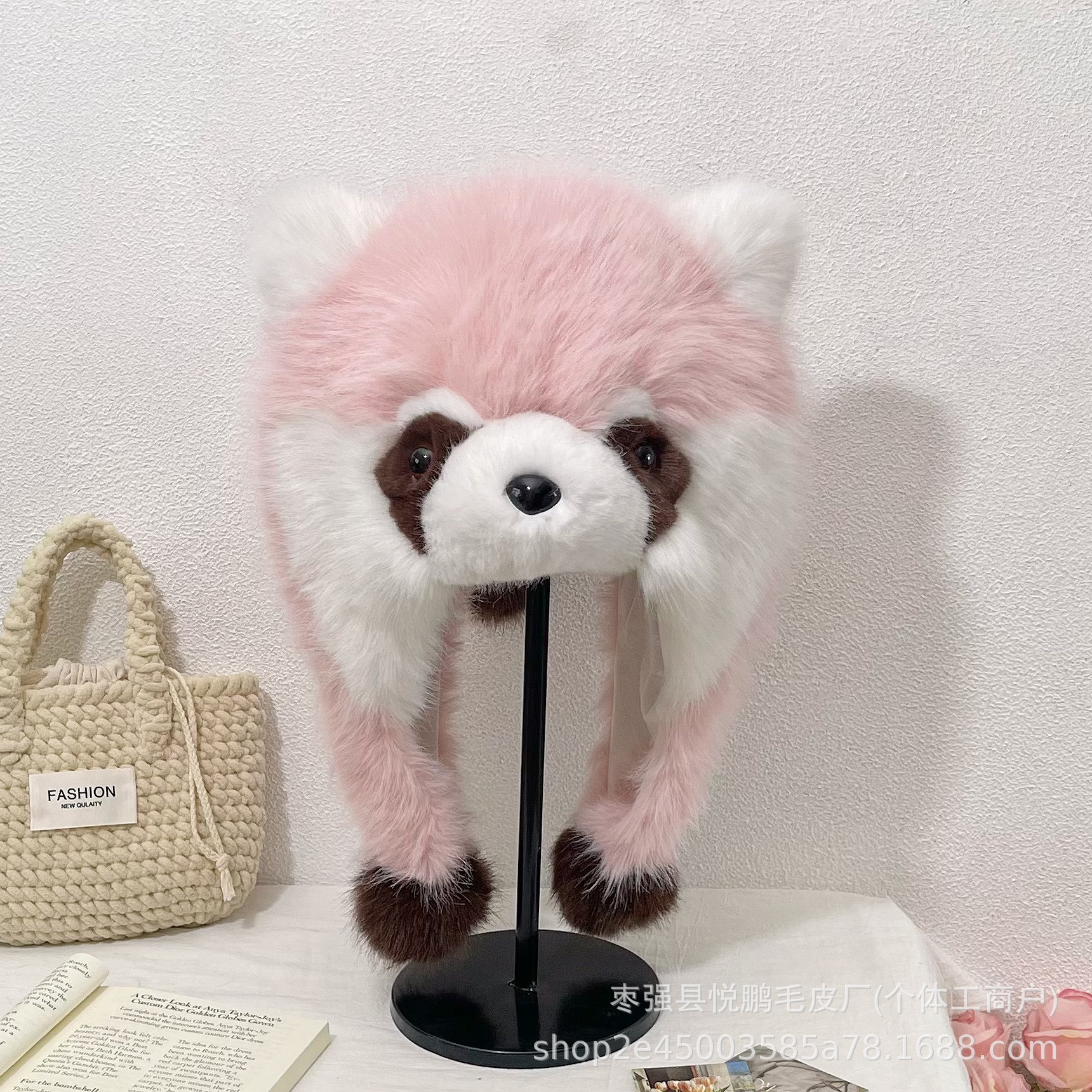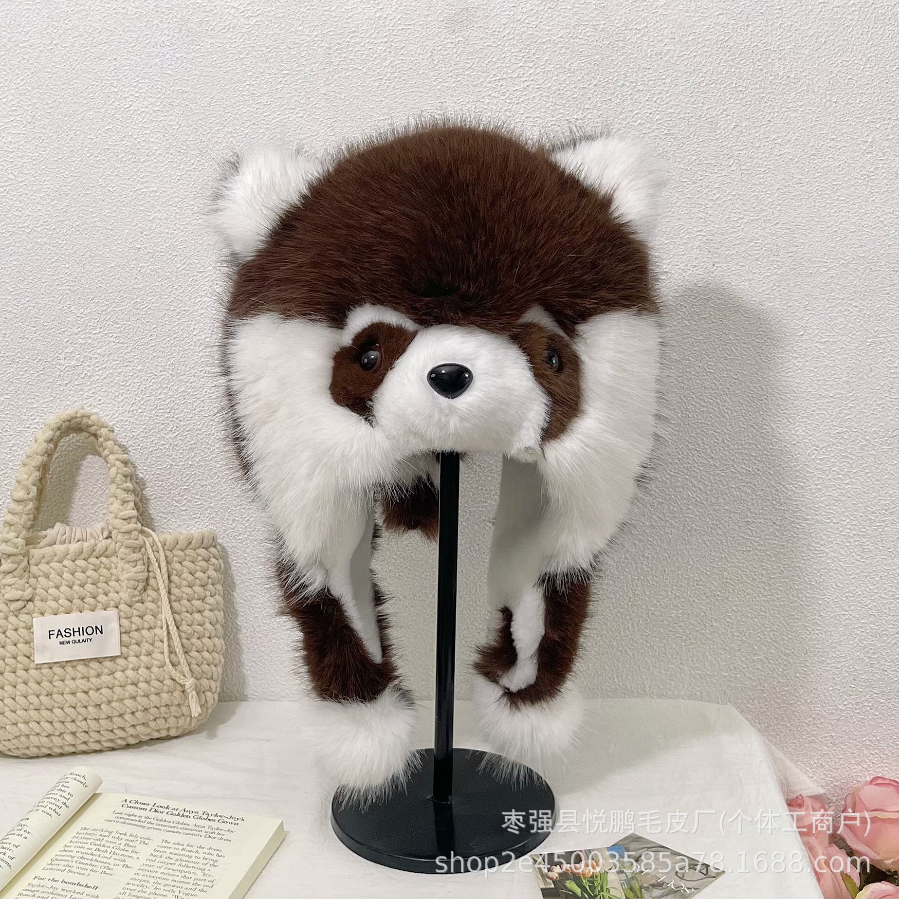 팬더 모자 겨울 모자 두꺼운 부모-자식 스타일 귀여운 만화 귀 보호 모피 방풍 겨울 모자