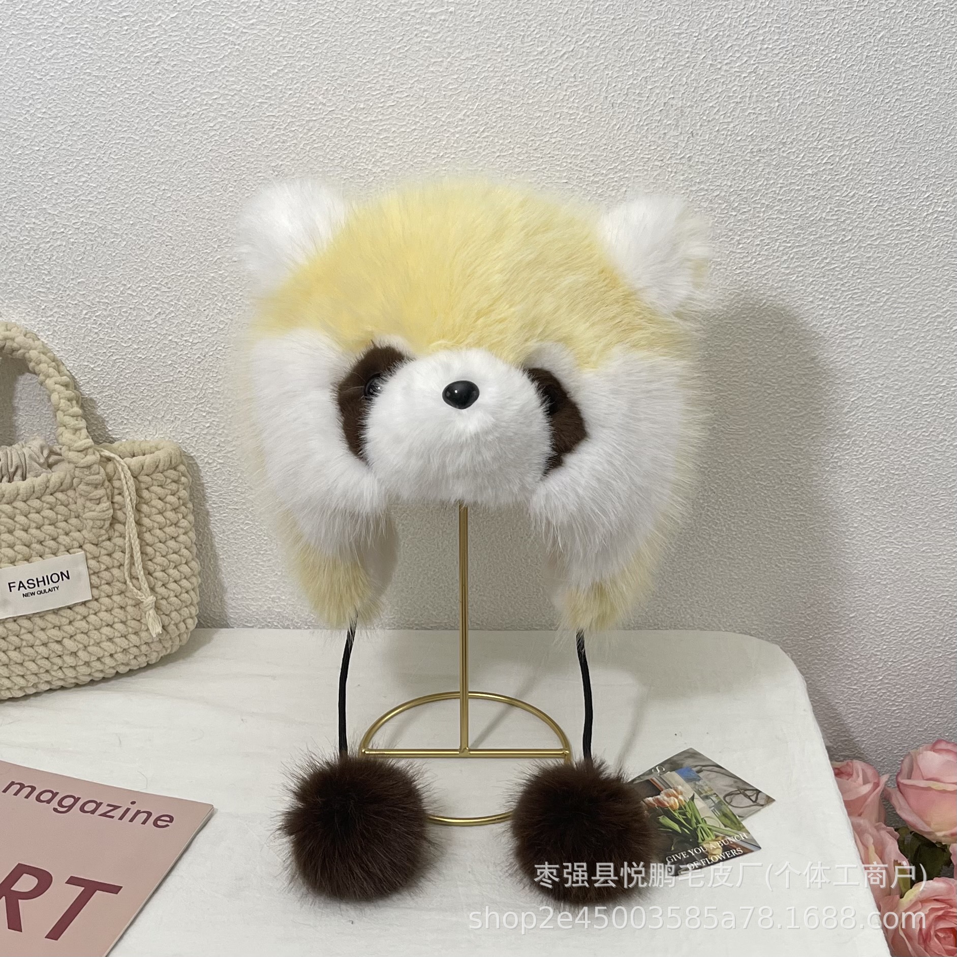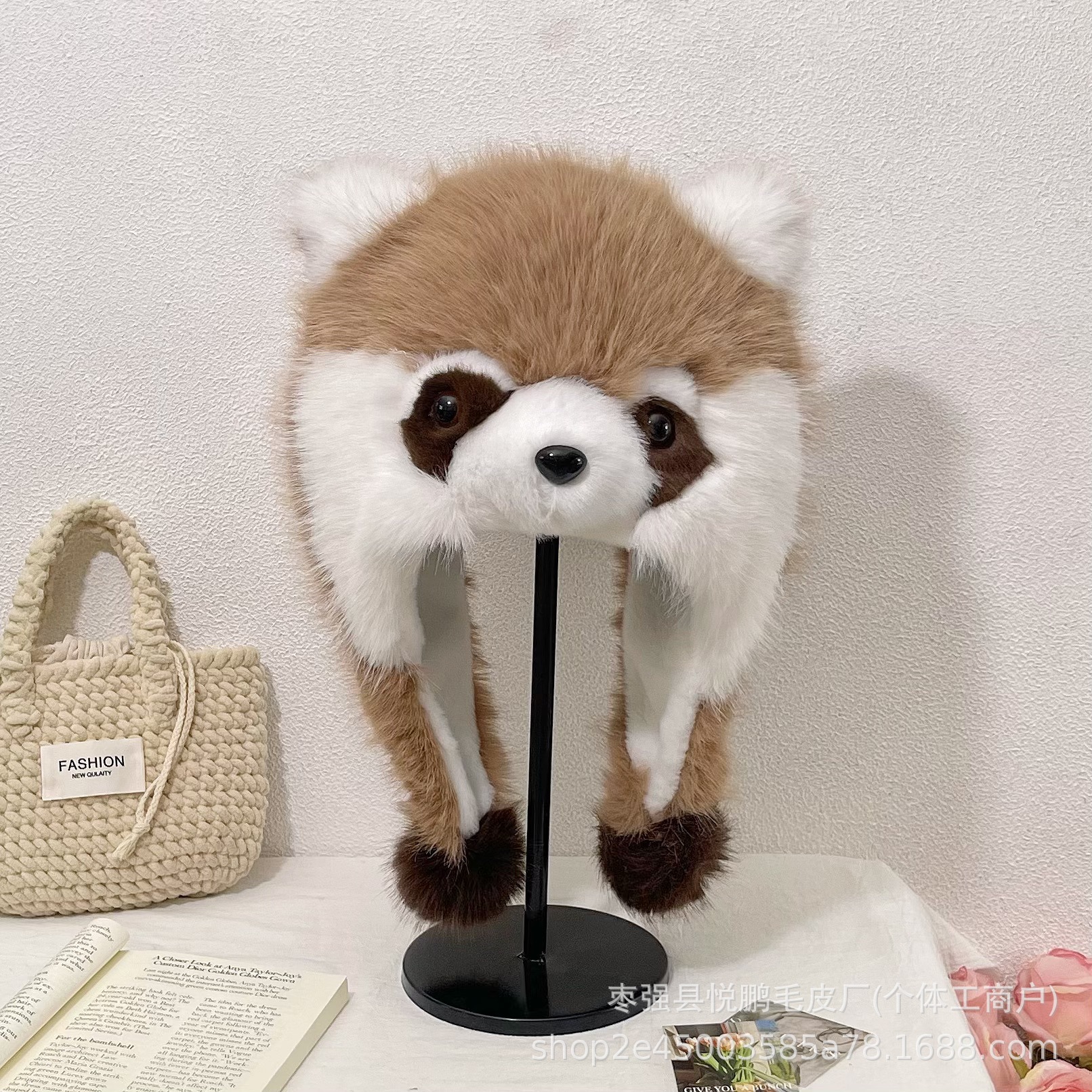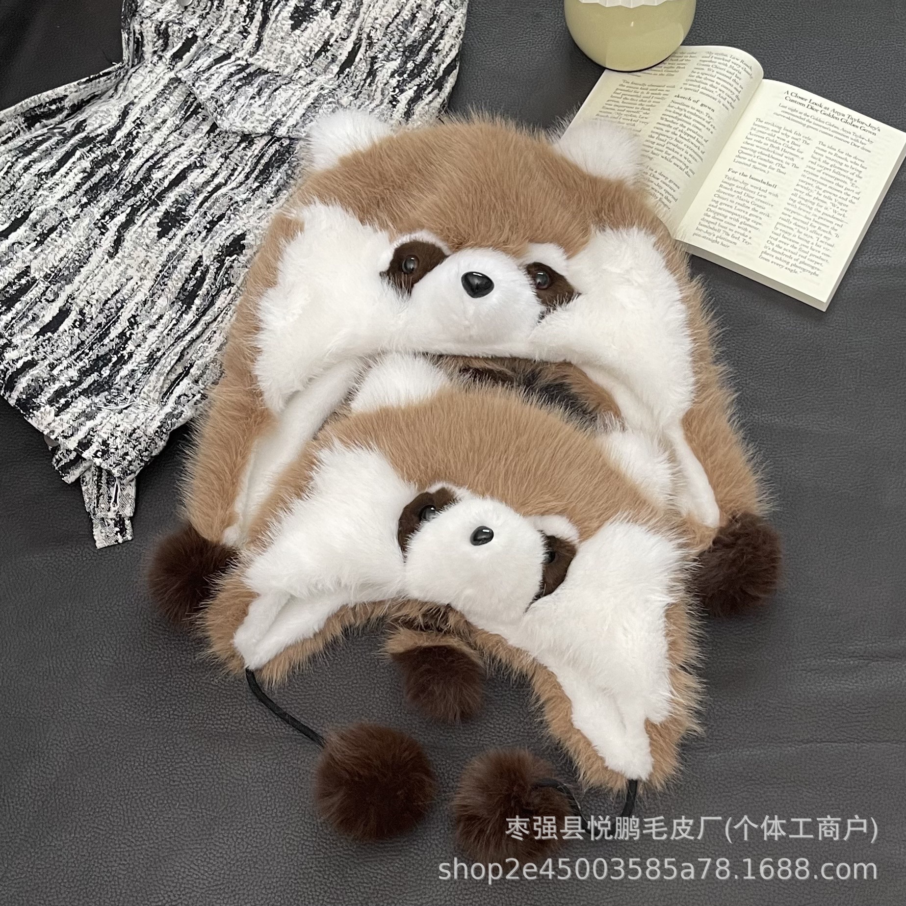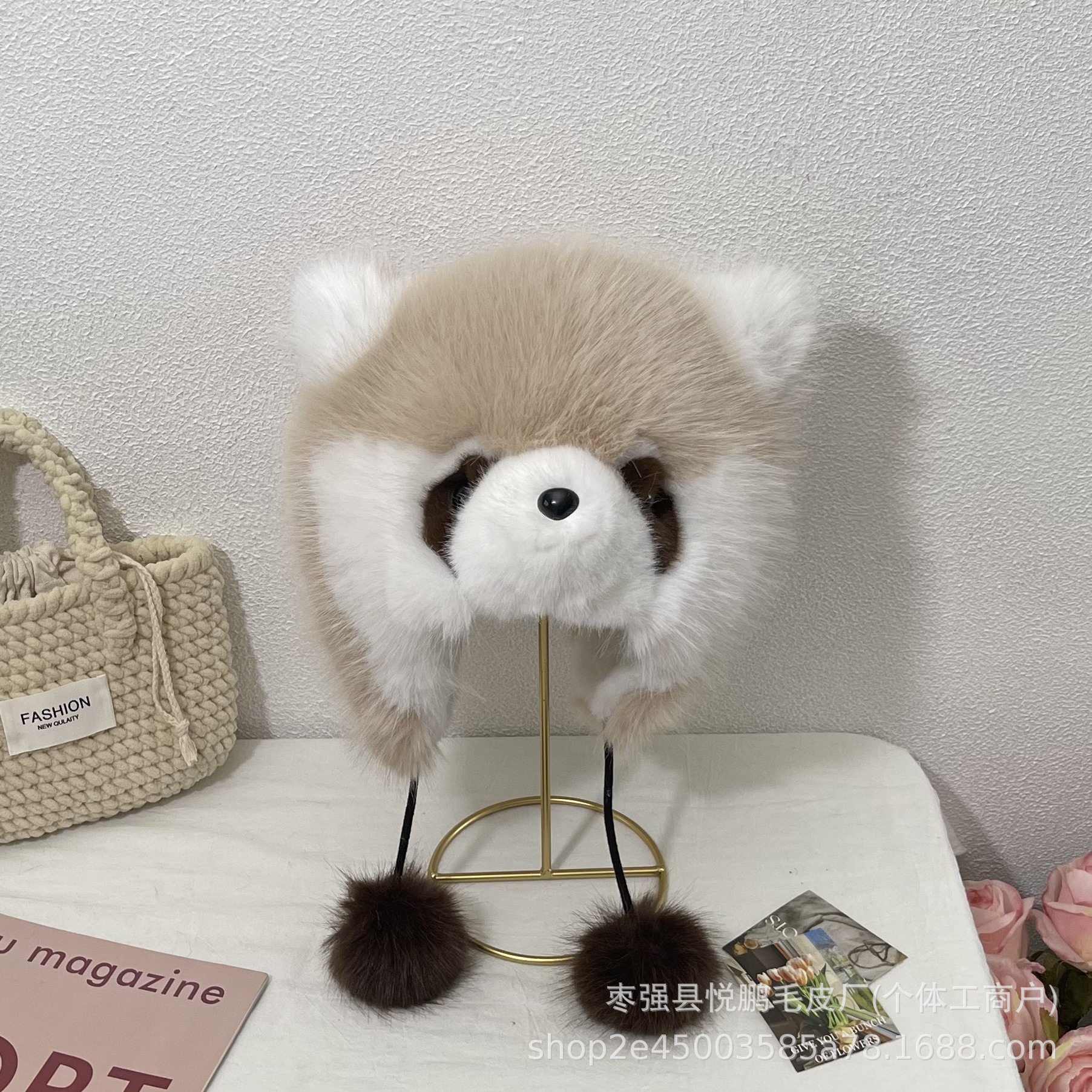 팬더 모자 겨울 모자 두꺼운 부모-자식 스타일 귀여운 만화 귀 보호 모피 방풍 겨울 모자