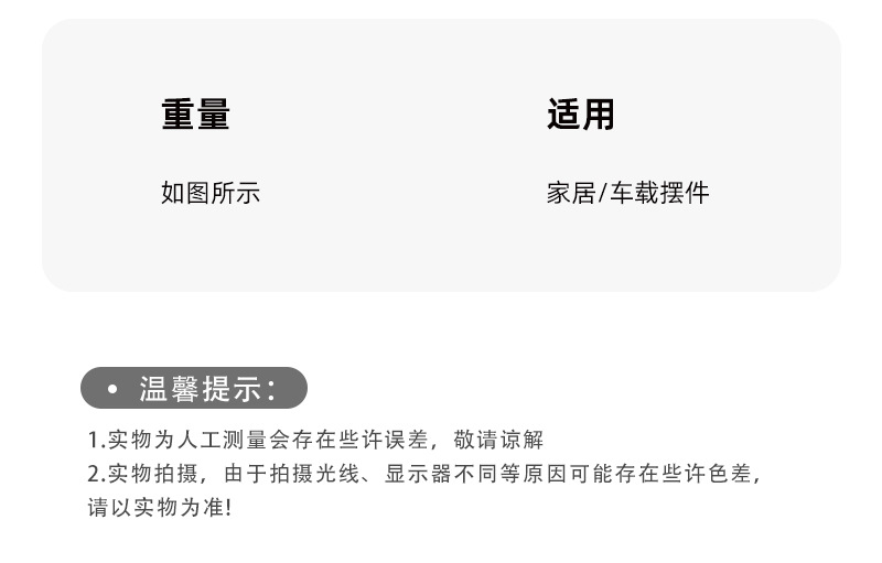 | 适用节日 | 通用, 圣诞节, 情人节, 春节, 父亲节, 母亲节, 教师节, 元旦, 七夕, 万圣节, 复活节, 国庆节, 儿童节, 妇女节, 其他 | 材质种类 | 塑料、树脂 |