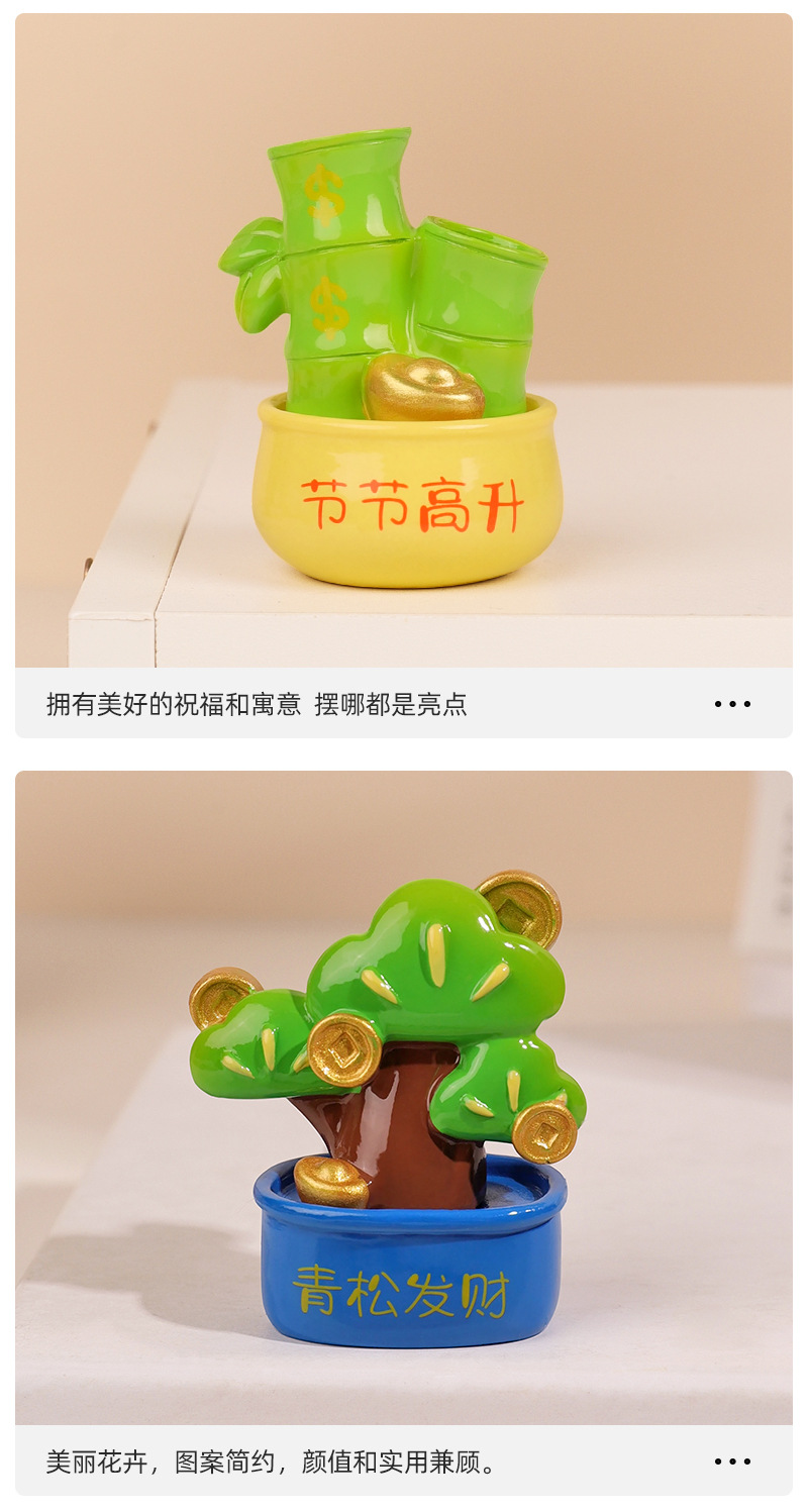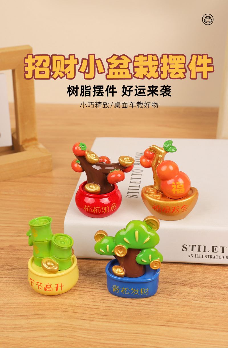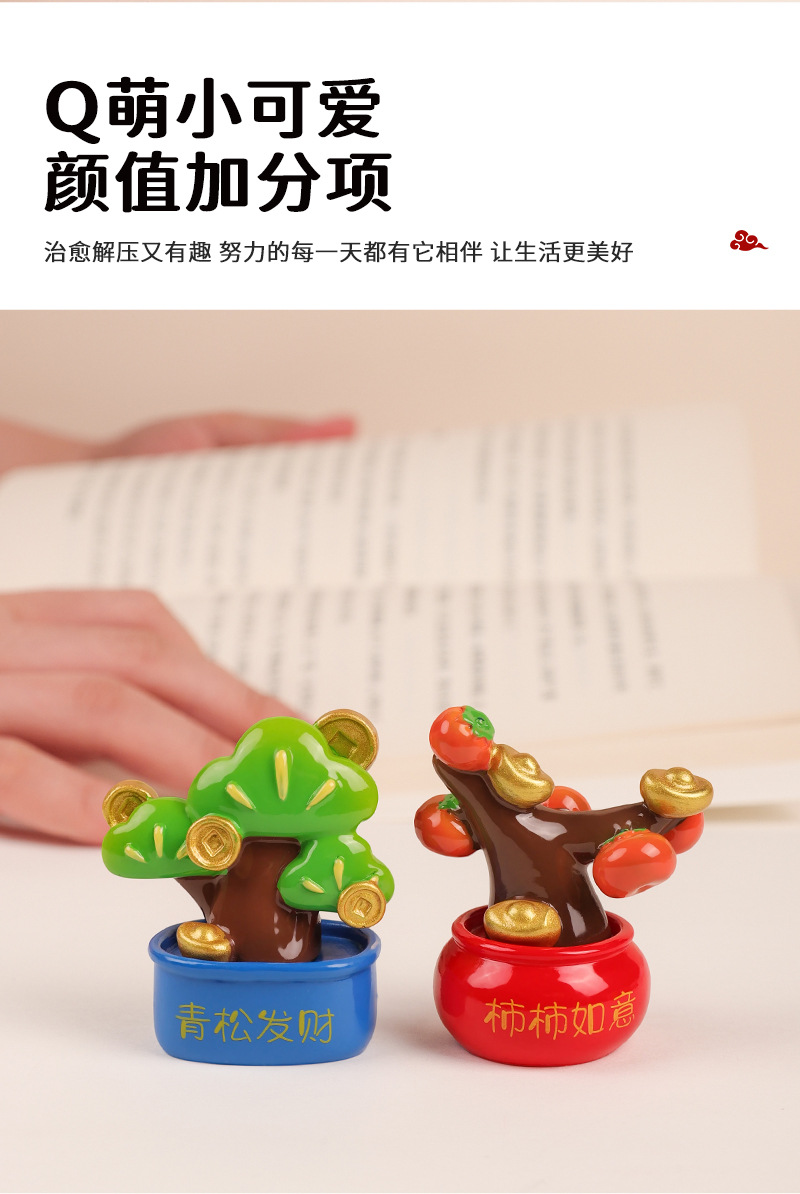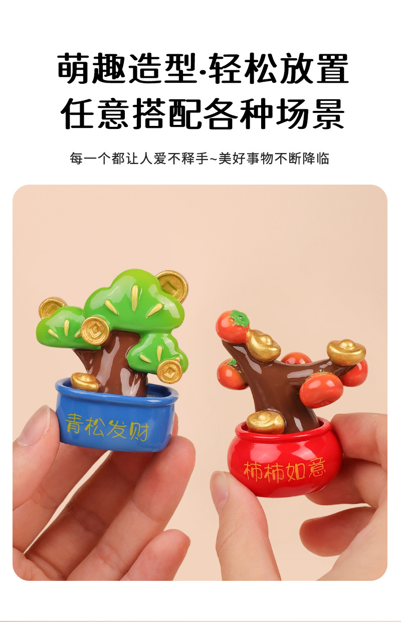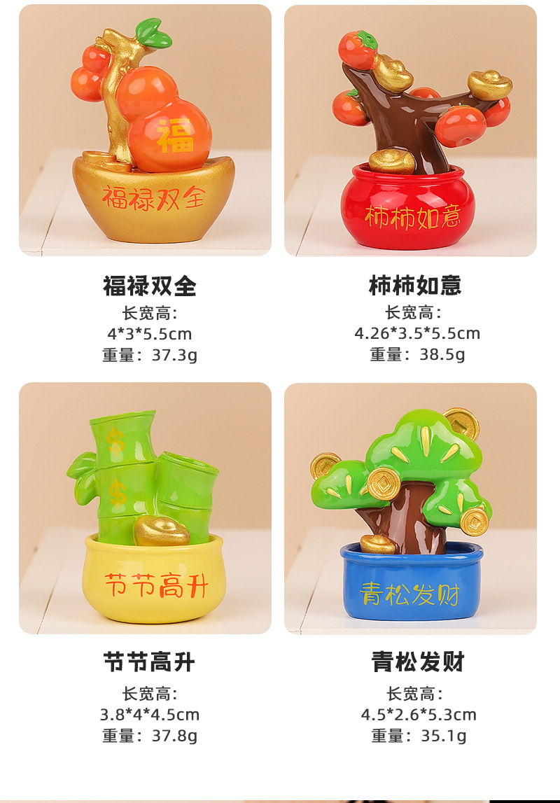 | 颜色 | 福禄双全, 柿柿如意, 节节高升, 青松发财 | 尺寸 | 招财小盆栽摆件 |