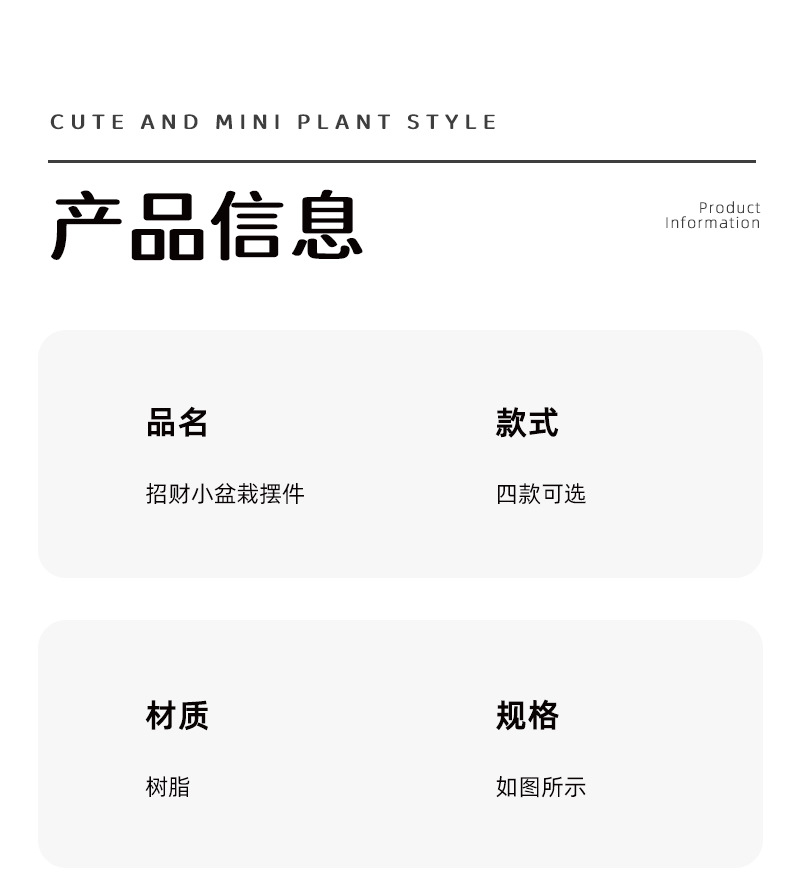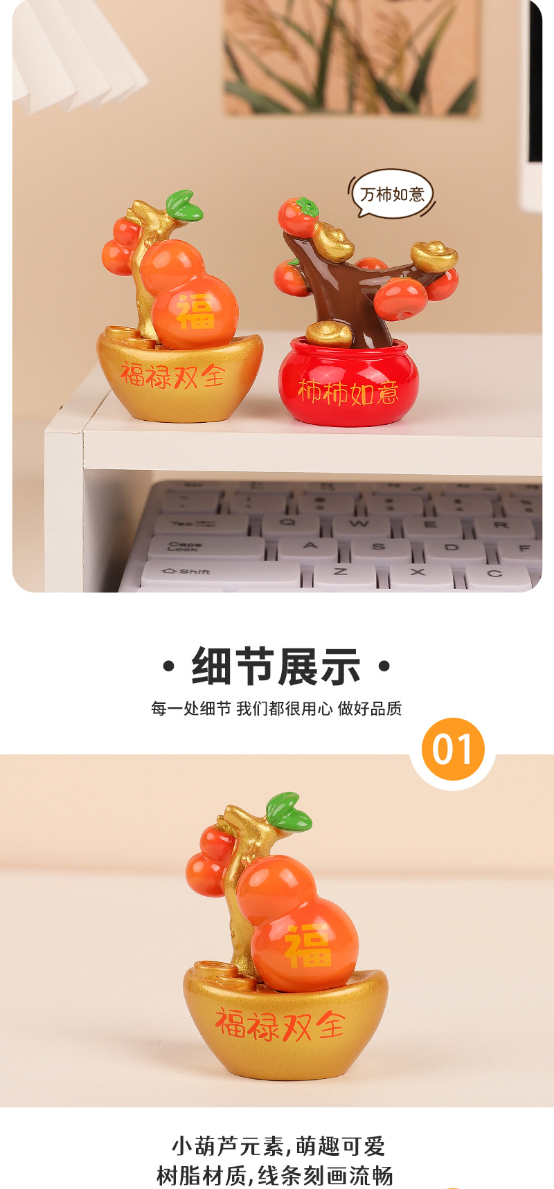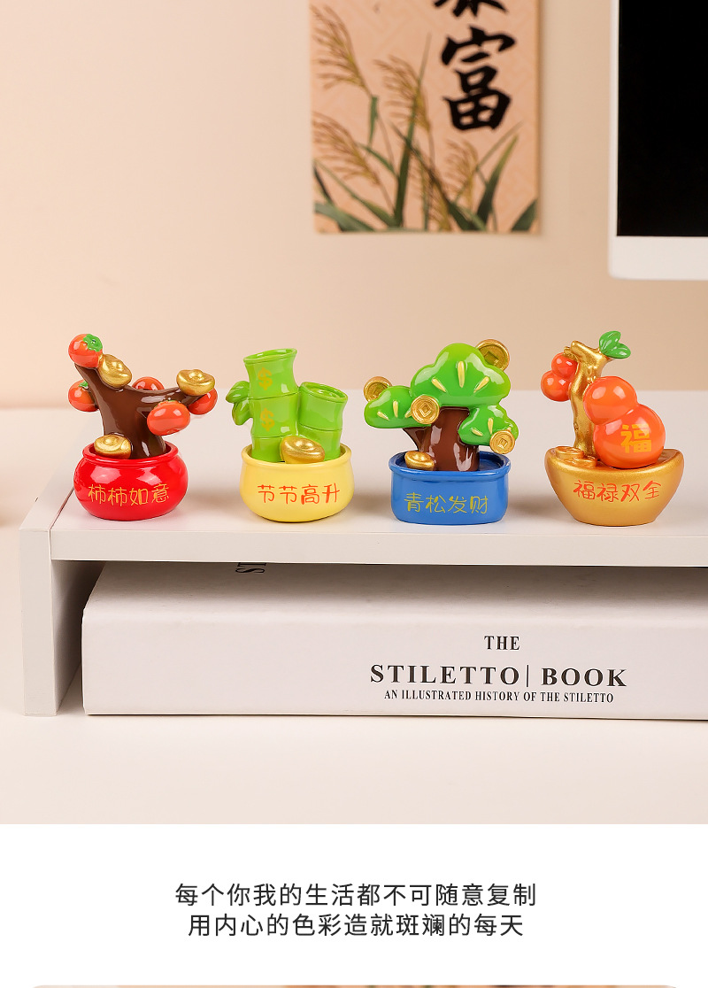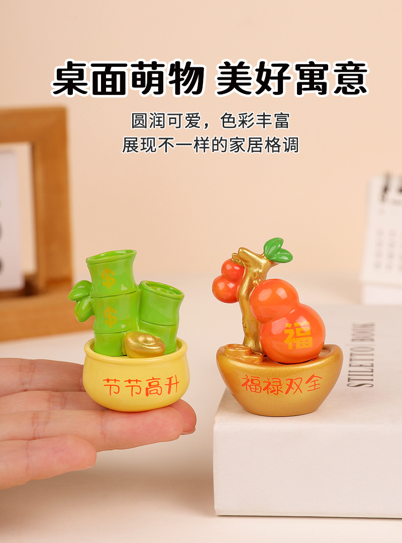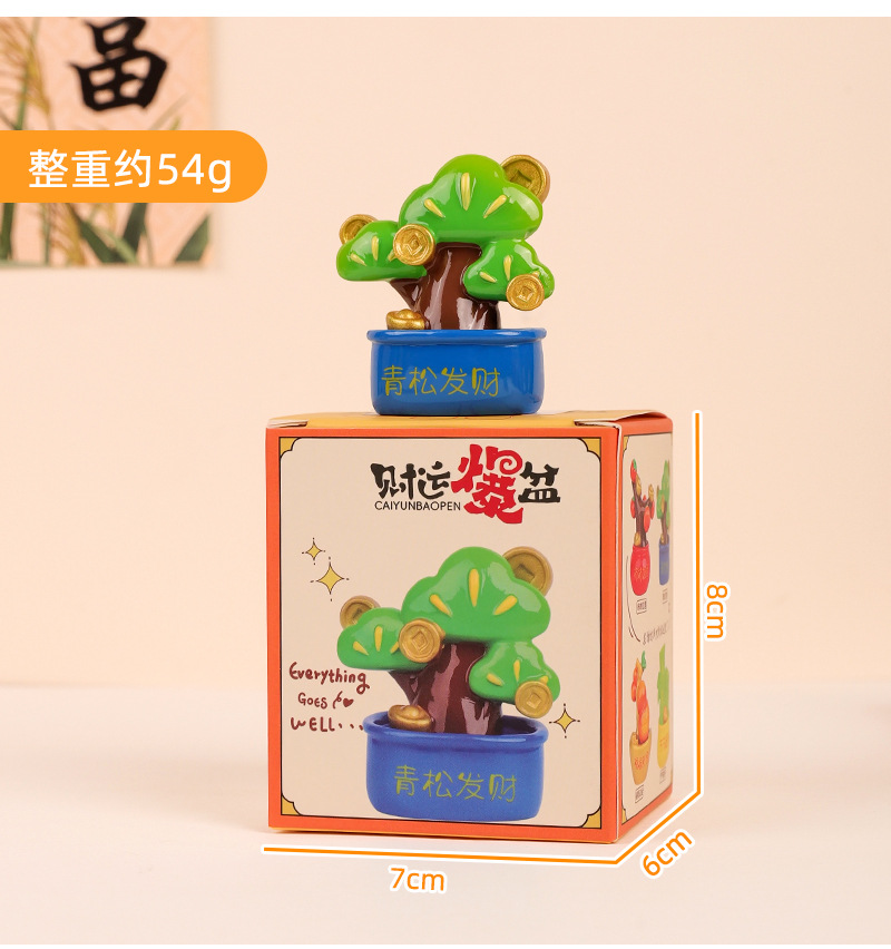 | 颜色 | 福禄双全, 柿柿如意, 节节高升, 青松发财 | 尺寸 | 招财小盆栽摆件 |
