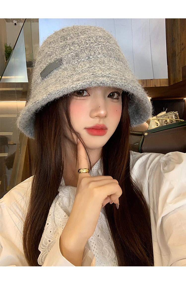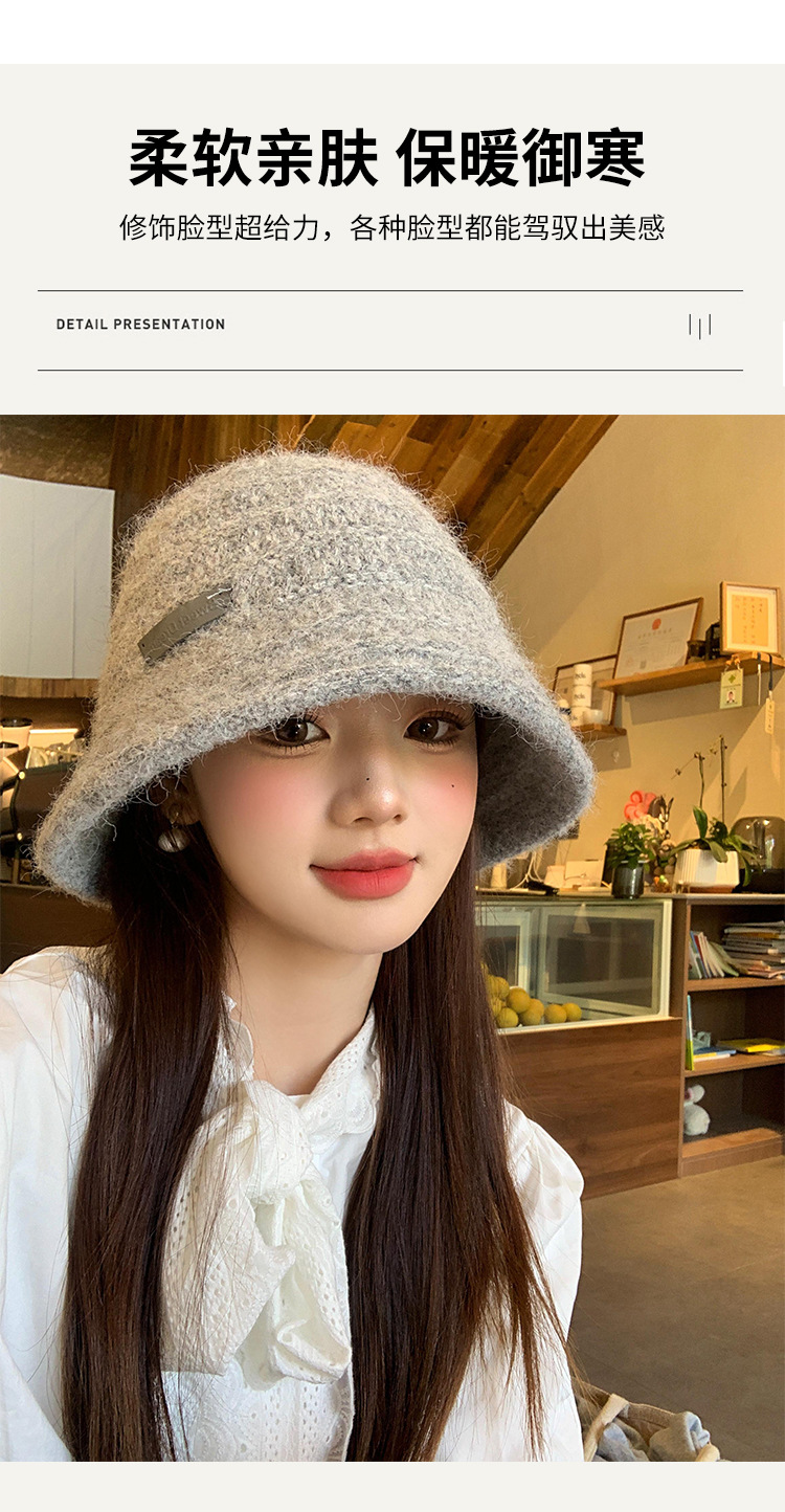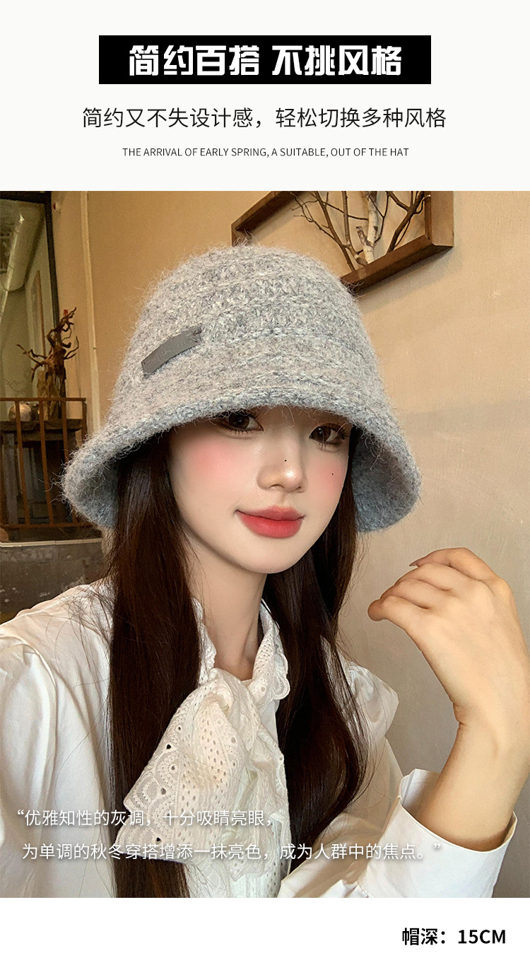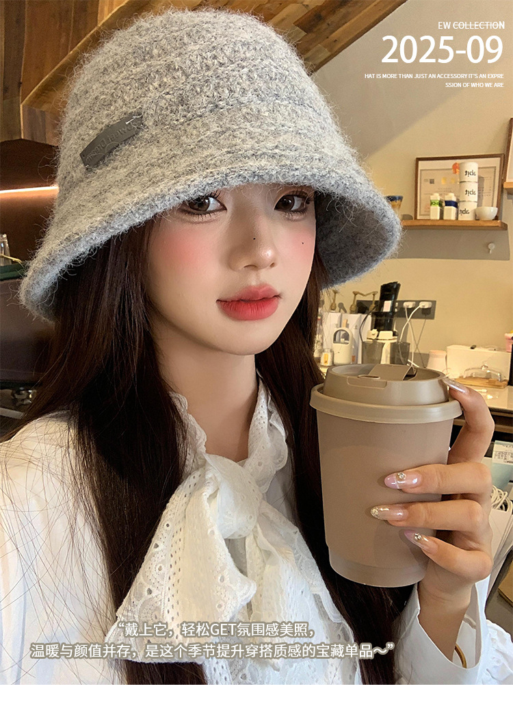 여성을위한 하이 엔드 회색 플러시 니트 어부 모자 2025 새로운 가을, 겨울 따뜻한 분지 모자 얼굴이 보이는 작은 양동이 모자