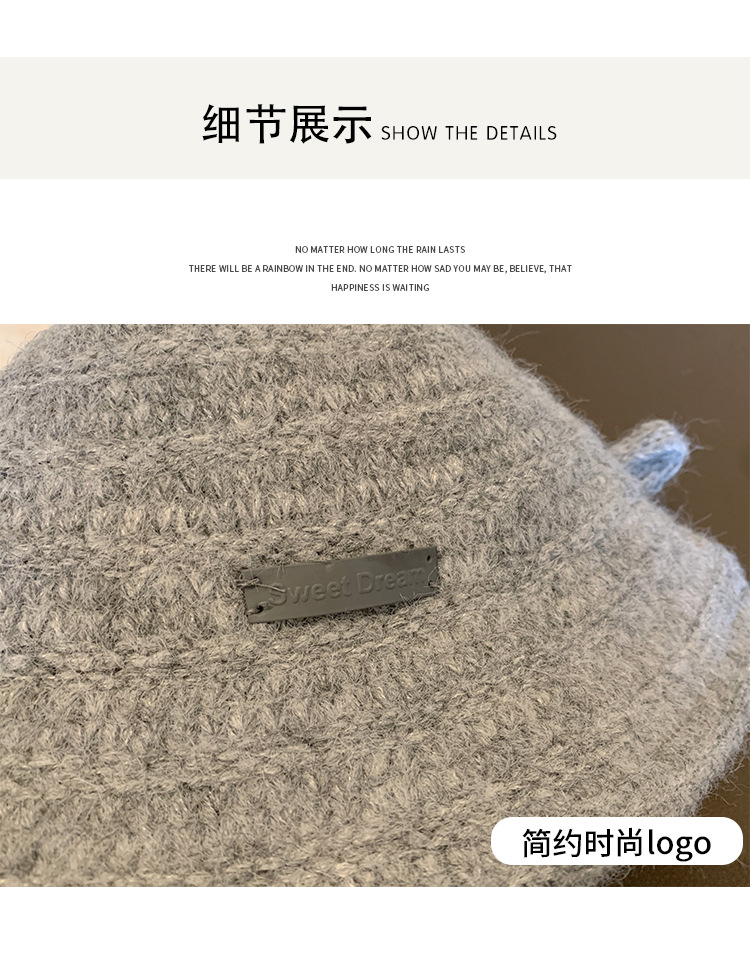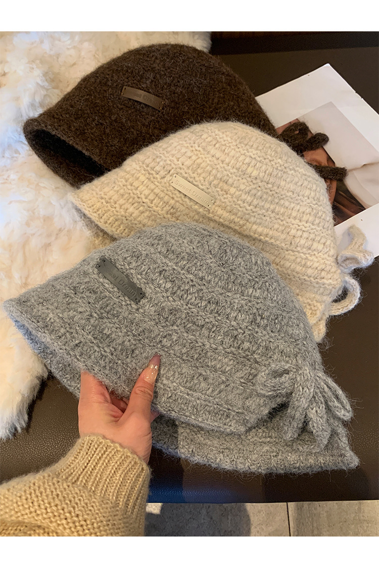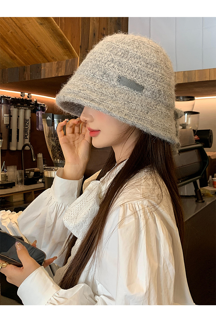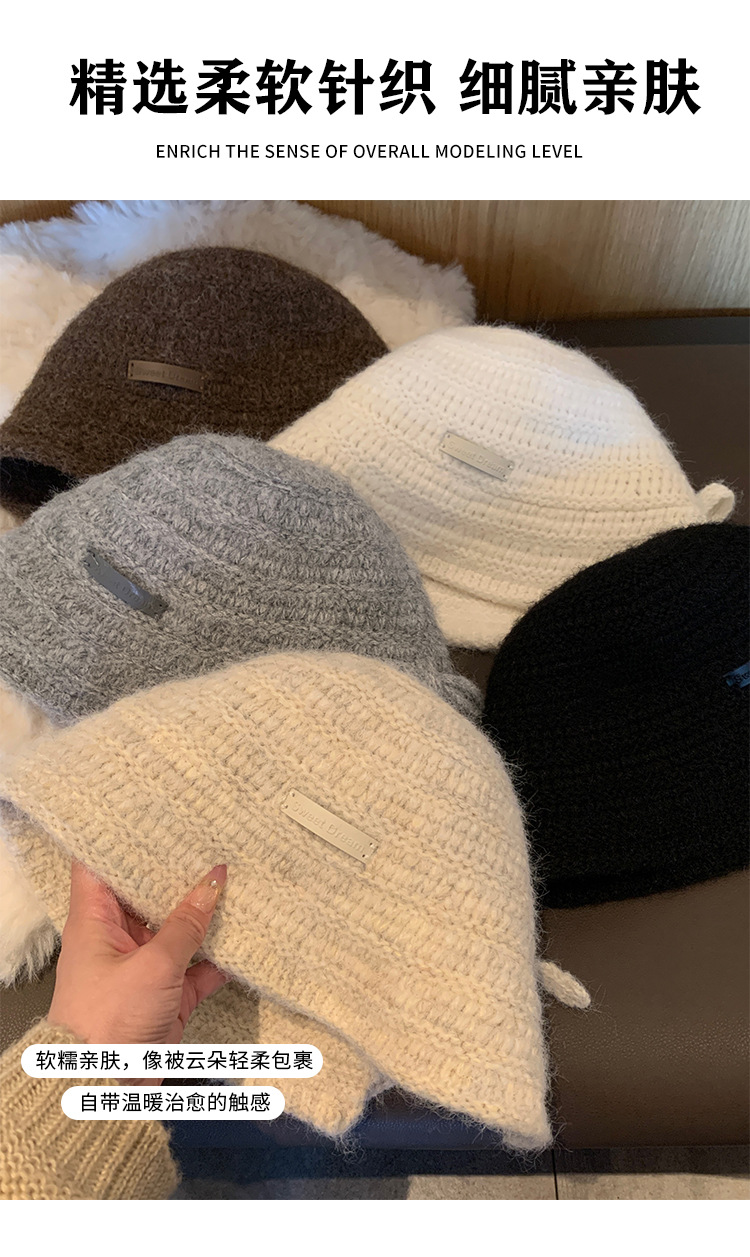 여성을위한 하이 엔드 회색 플러시 니트 어부 모자 2025 새로운 가을, 겨울 따뜻한 분지 모자 얼굴이 보이는 작은 양동이 모자