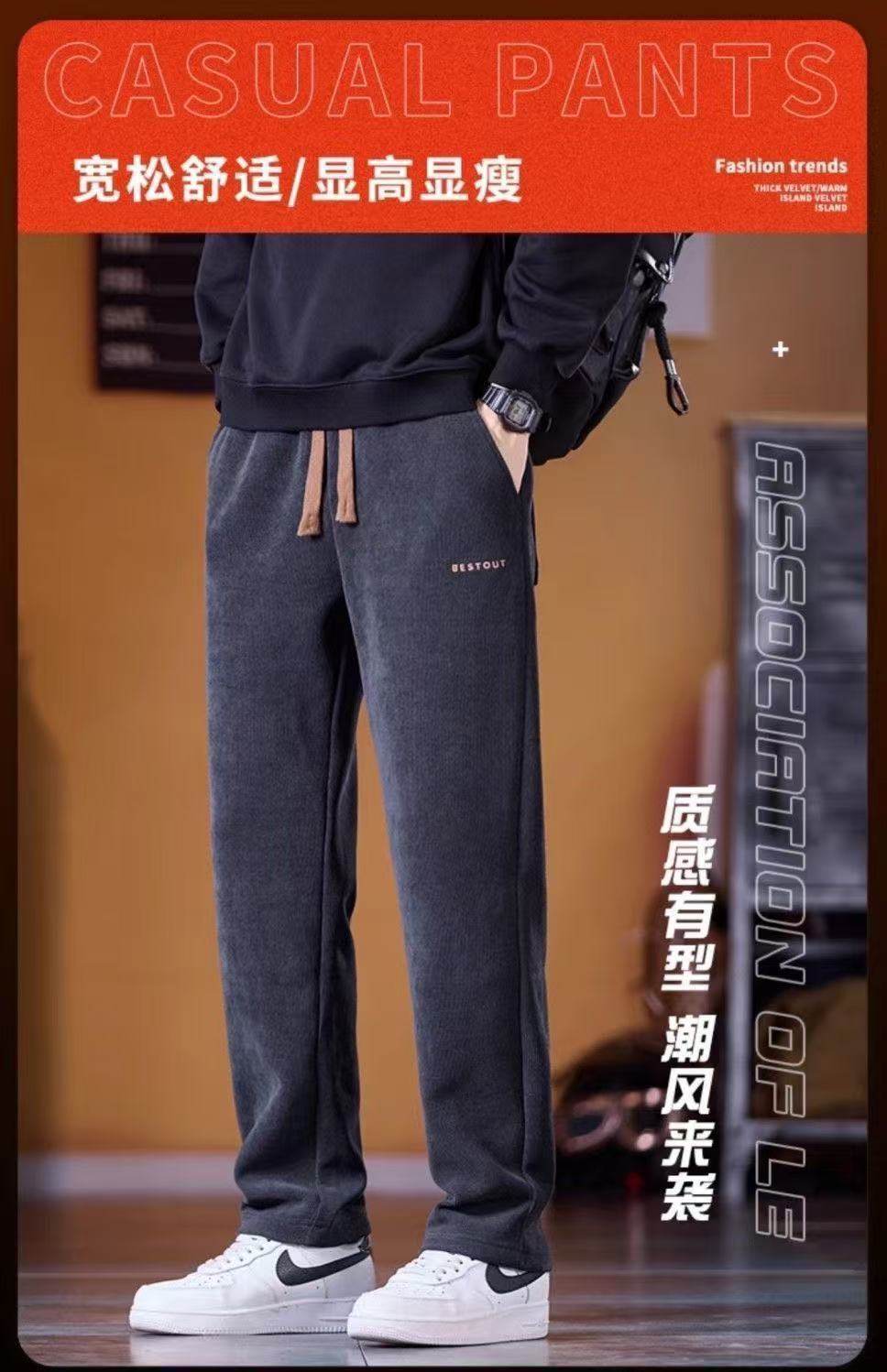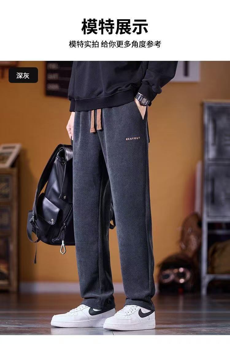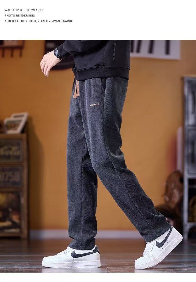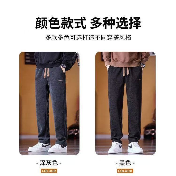 남성용 벨벳 캐주얼 바지 2025 가을, 겨울 새로운 스타일 스트레이트 루즈 바지 작업복 스포츠 코듀로이 스웨트 팬츠