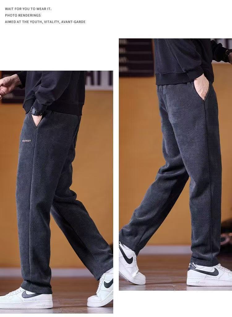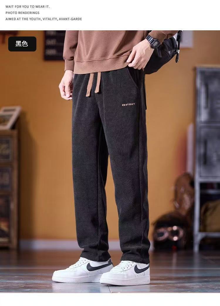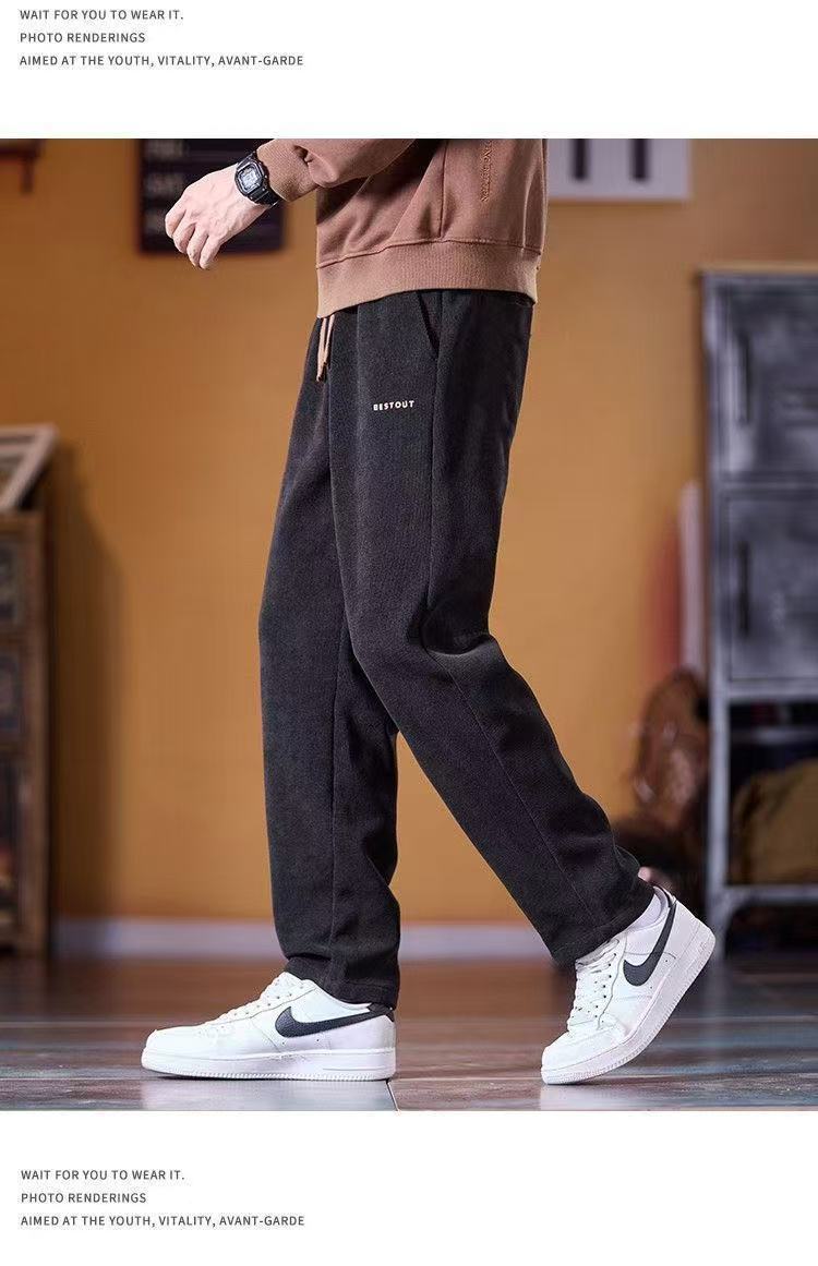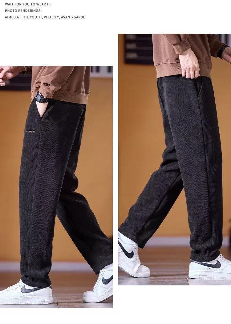 남성용 벨벳 캐주얼 바지 2025 가을, 겨울 새로운 스타일 스트레이트 루즈 바지 작업복 스포츠 코듀로이 스웨트 팬츠