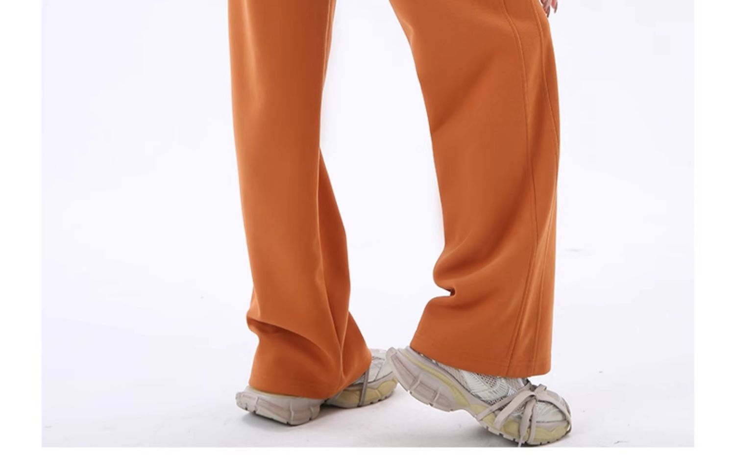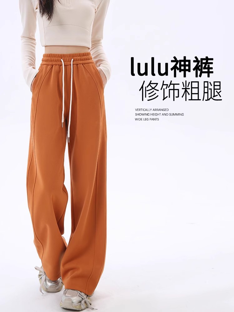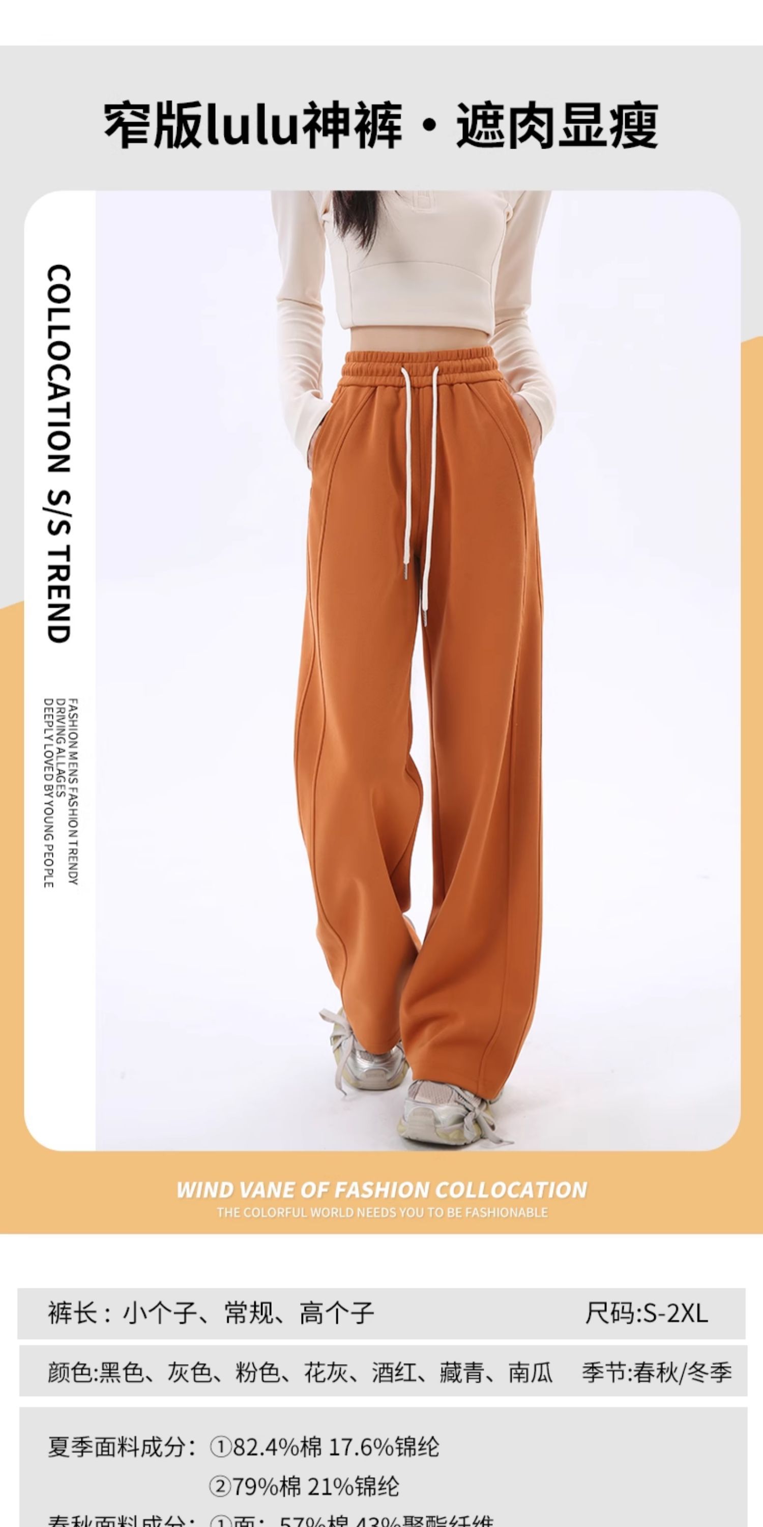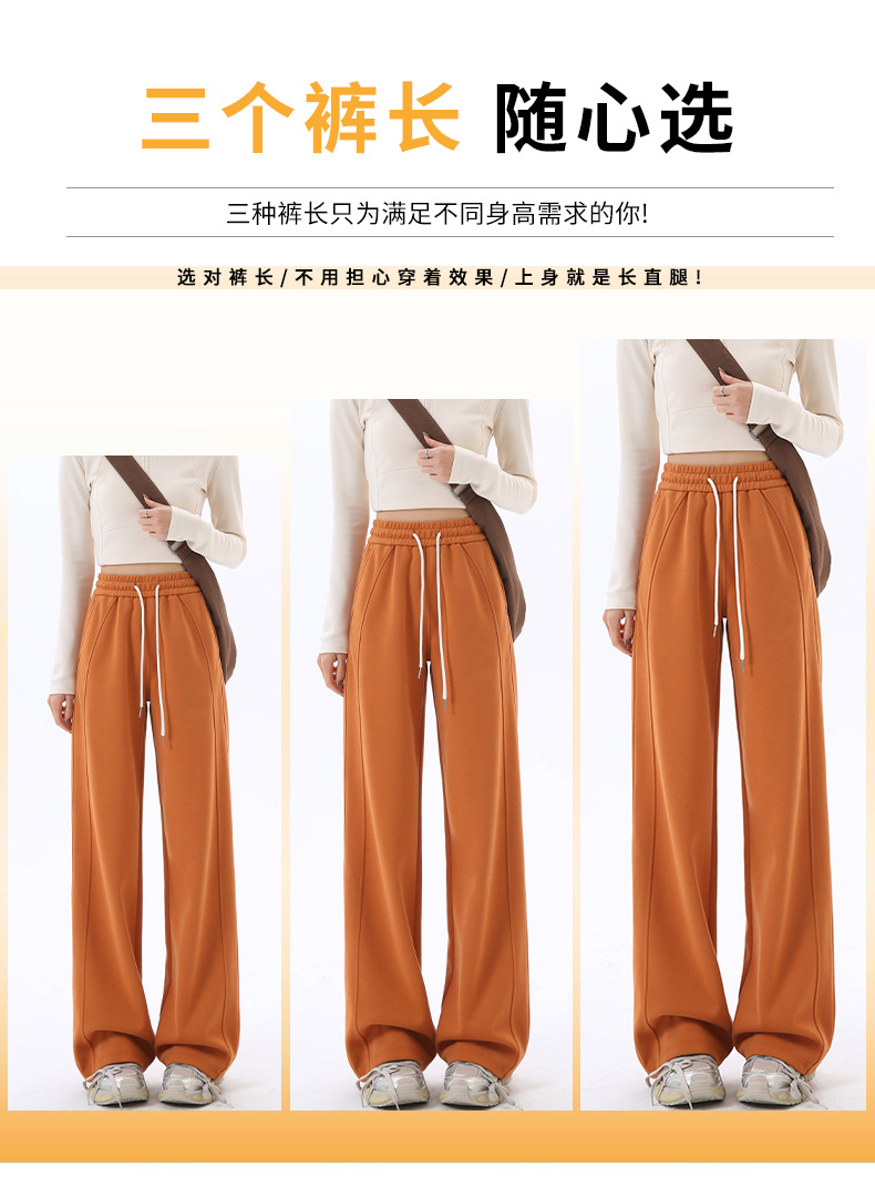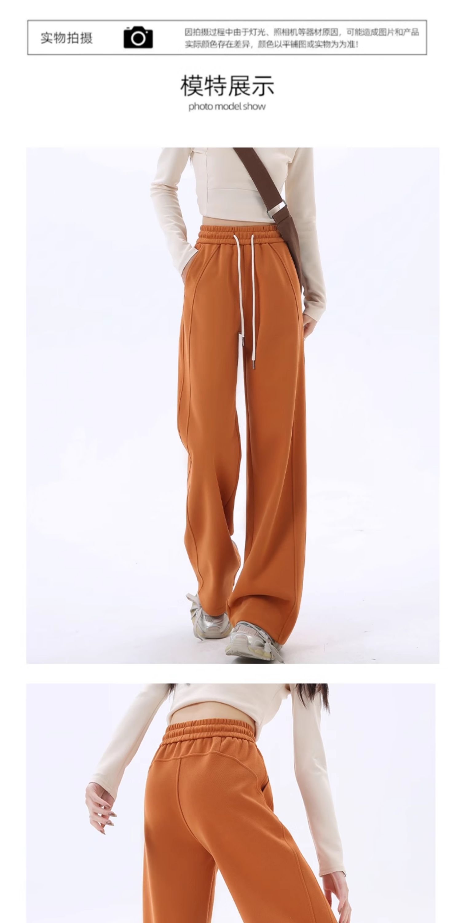 여성용 스포츠 와이드 팬츠 가을 겨울 2025 신상 호박색 기모 캐주얼 스몰 사이즈 스트레이트 레그 웨어 팬츠
