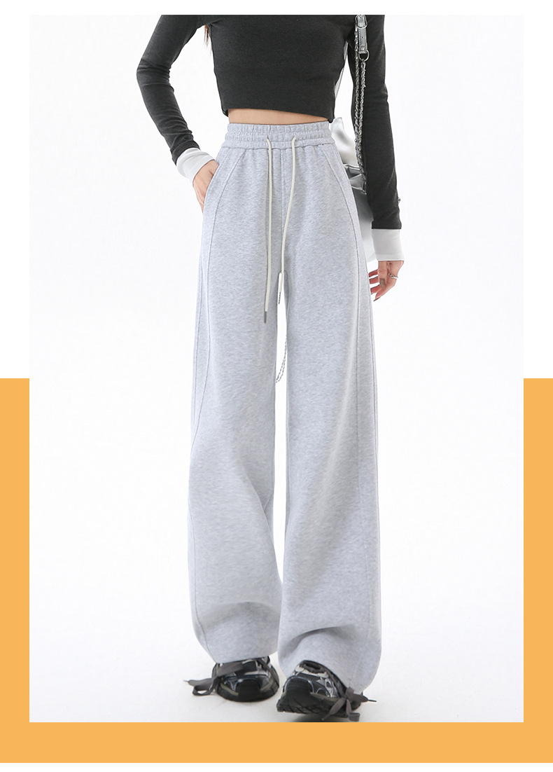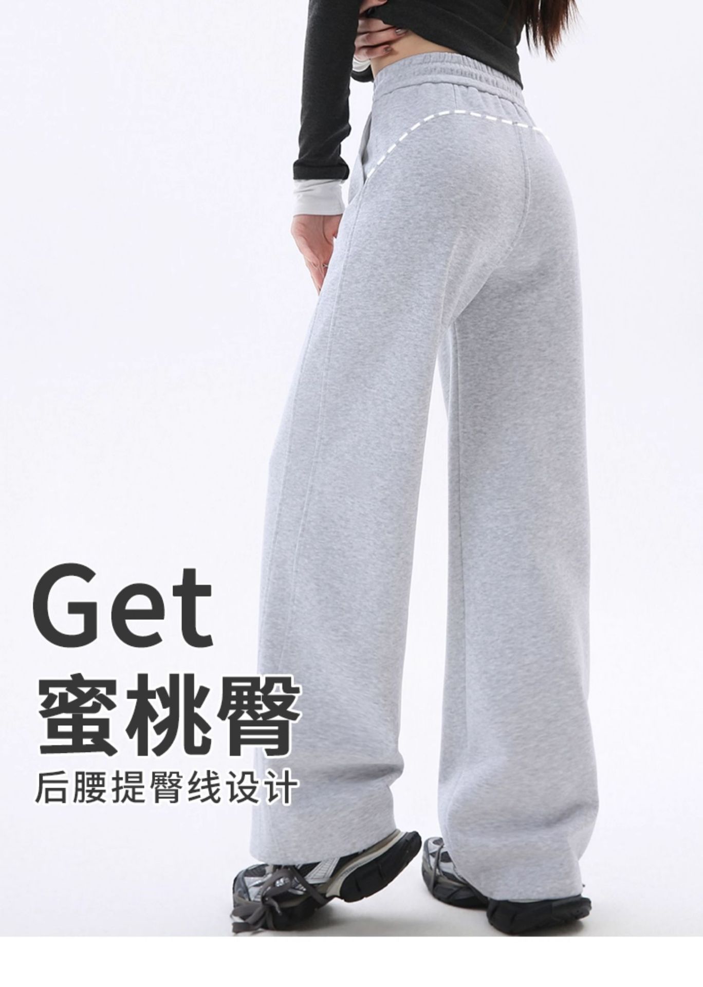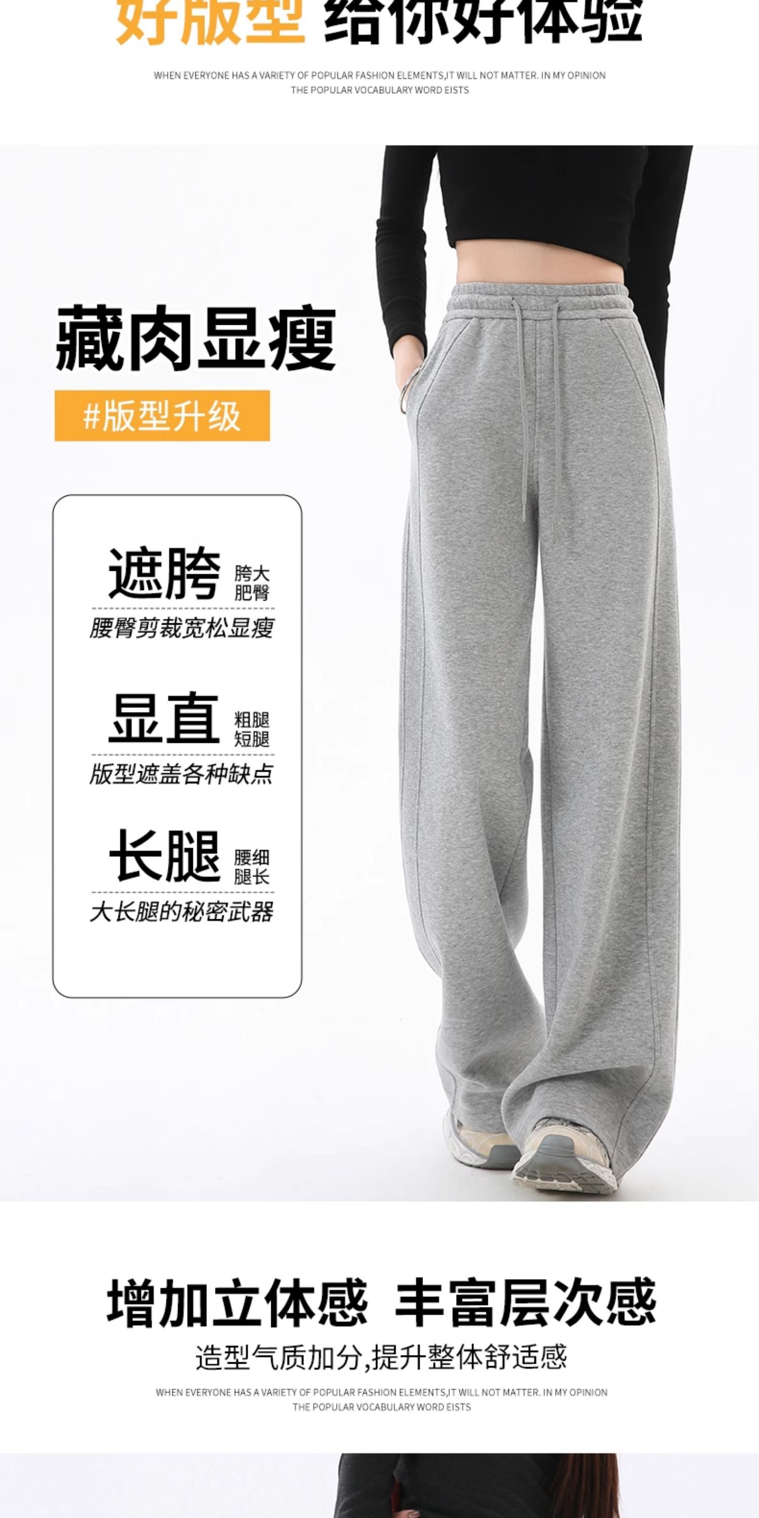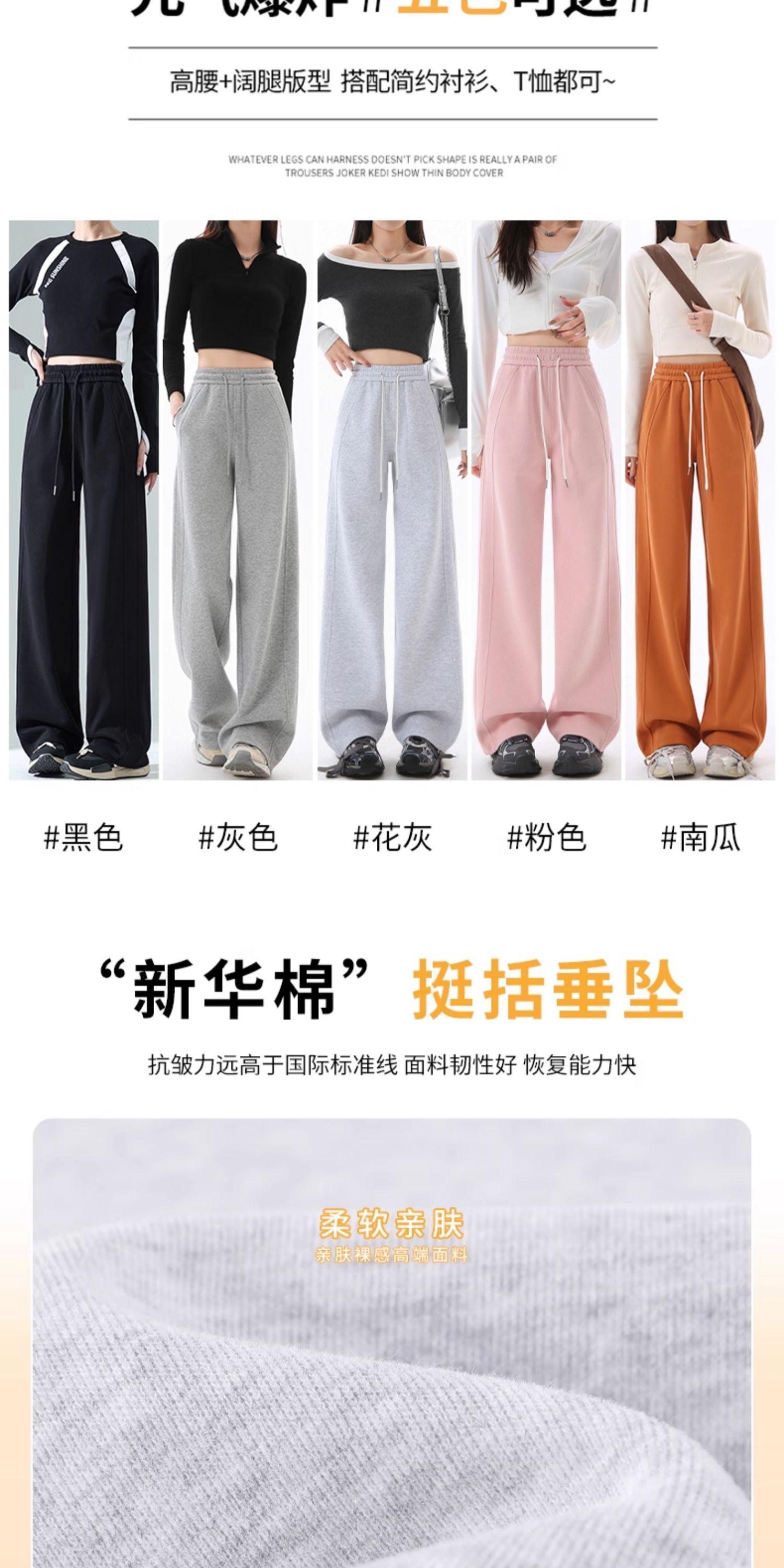 여성용 스포츠 와이드 팬츠 가을 겨울 2025 신상 호박색 기모 캐주얼 스몰 사이즈 스트레이트 레그 웨어 팬츠