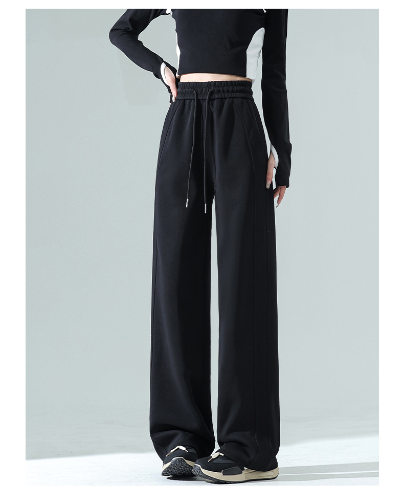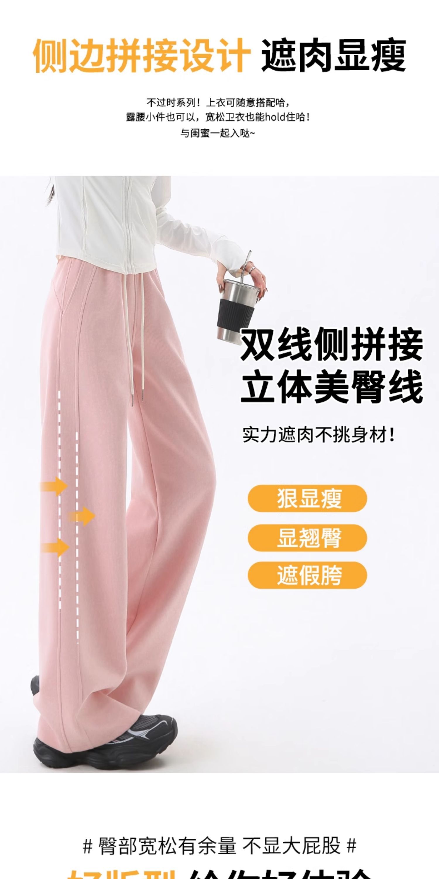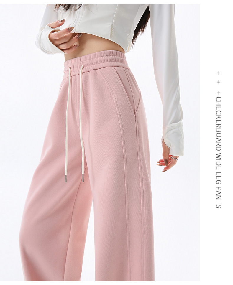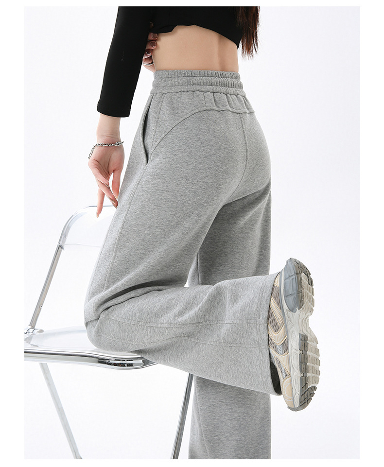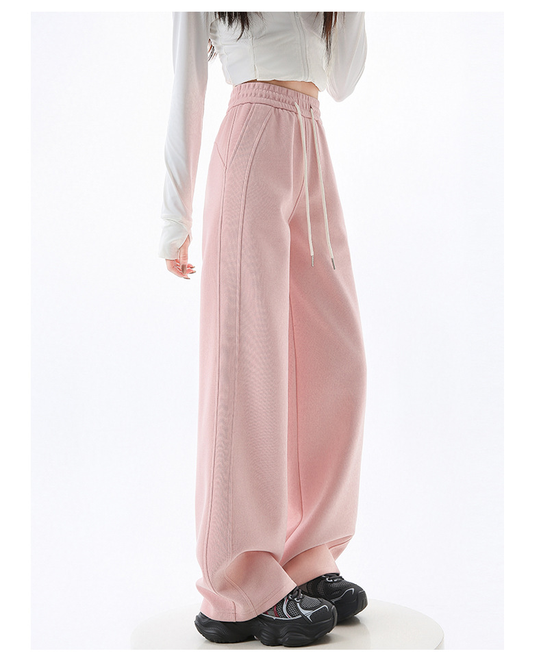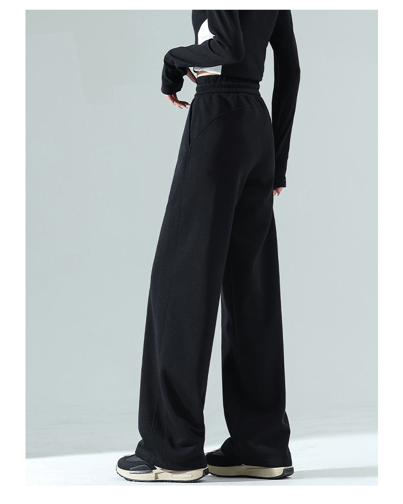 여성용 스포츠 와이드 팬츠 가을 겨울 2025 신상 호박색 기모 캐주얼 스몰 사이즈 스트레이트 레그 웨어 팬츠