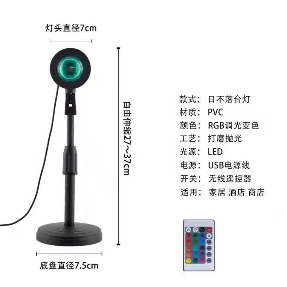 | 灯光颜色 | 伸缩款夕阳红, 伸缩款遥控16色, 落地支架款带遥控16色, 落地支架款夕阳红, 夕阳投影灯RGB16色, 夕阳投影灯七色, 夕阳红投影灯, 三脚架款 | 光源功率 | 3W |