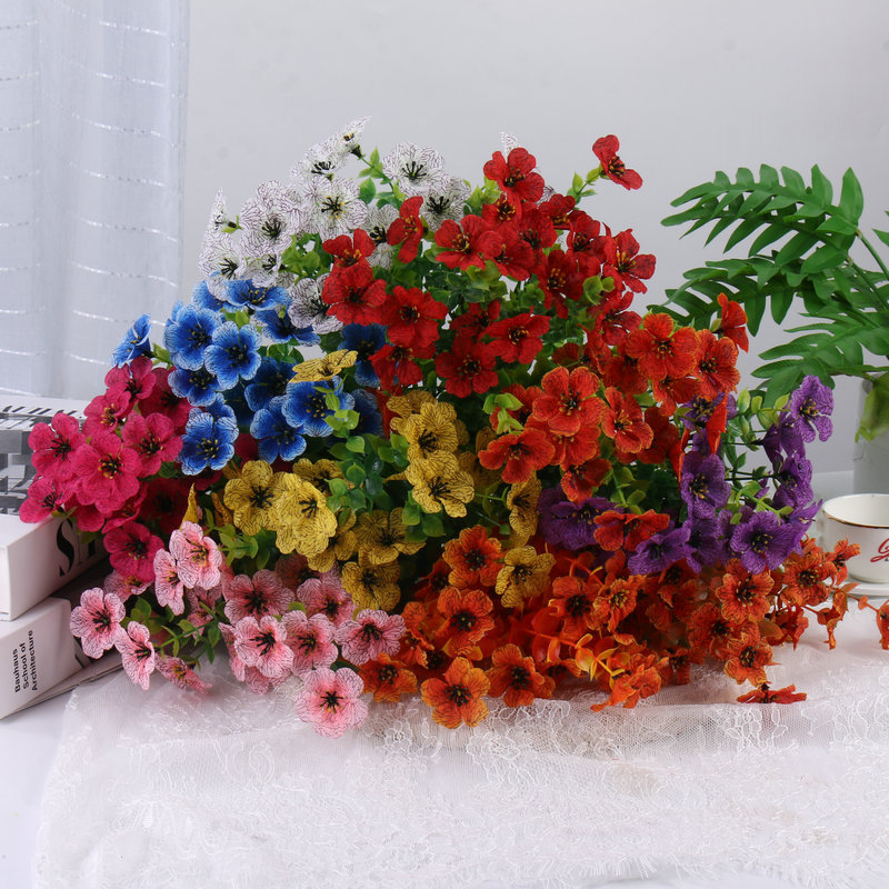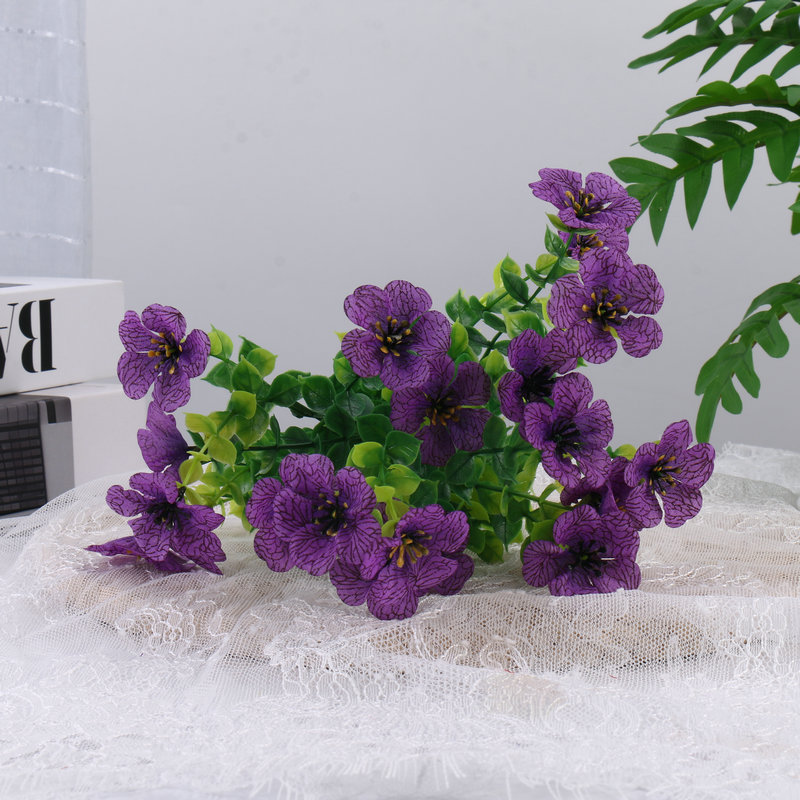 인공 꽃 7 머리 유칼립투스 보라색 꽃다발 실크 꽃 결혼식 홈 야외 사진 꽃꽂이 장식